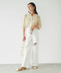 今季らしいクロップド丈でスッキリとしたシルエットに、ポロ風の襟付きデザインがこなれ感を演出。
