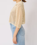 表情豊かでトレンドライクなメッシュ素材を使用したポロデザインのカーディガン。