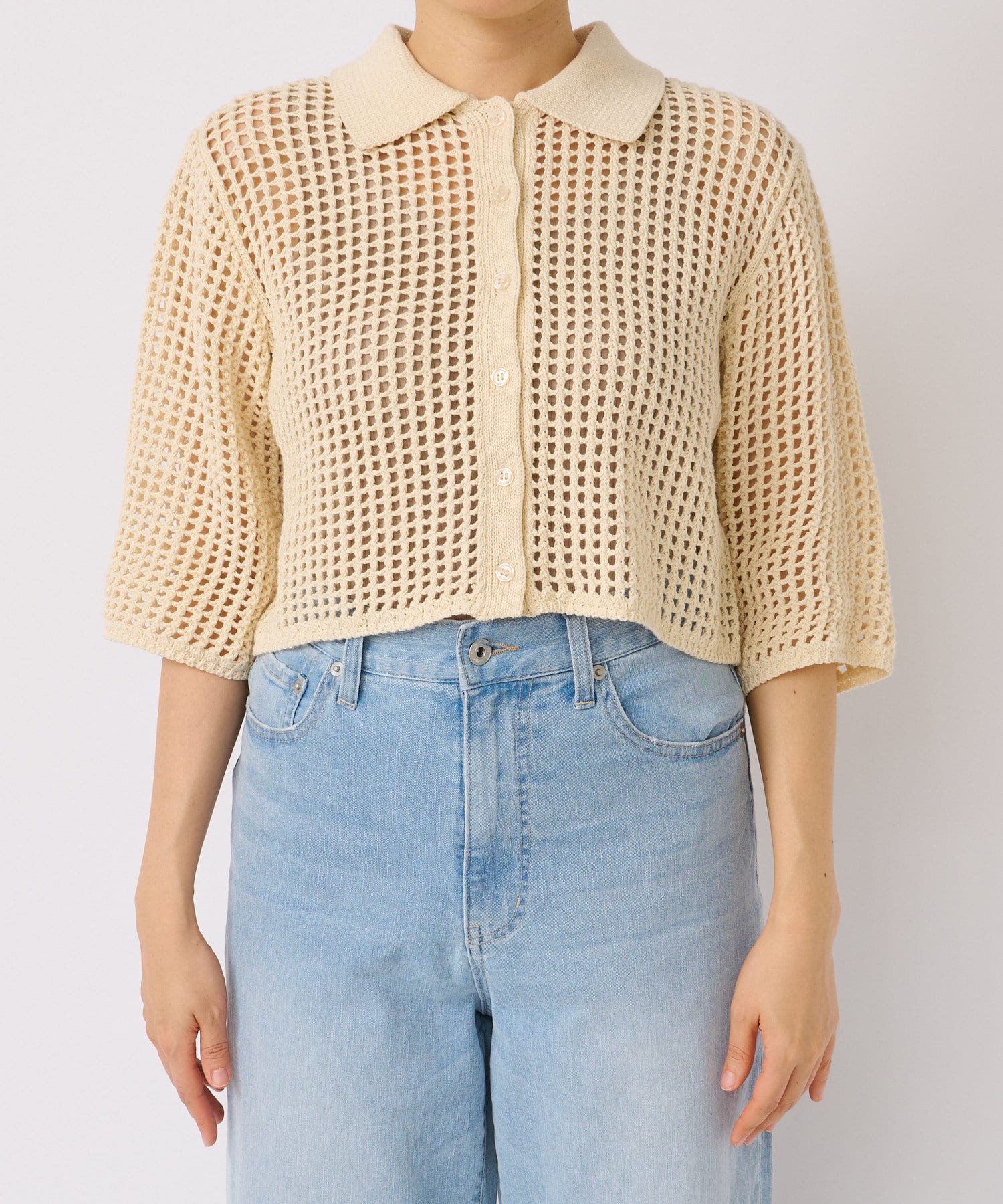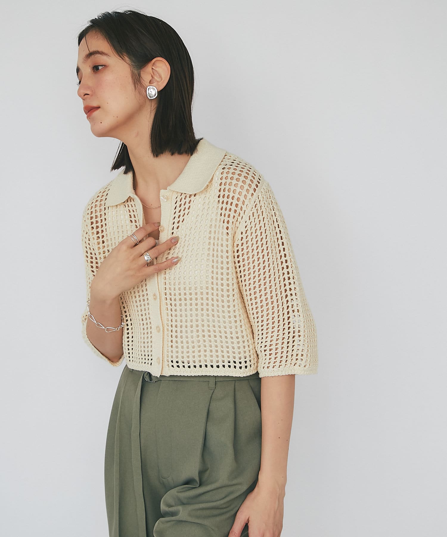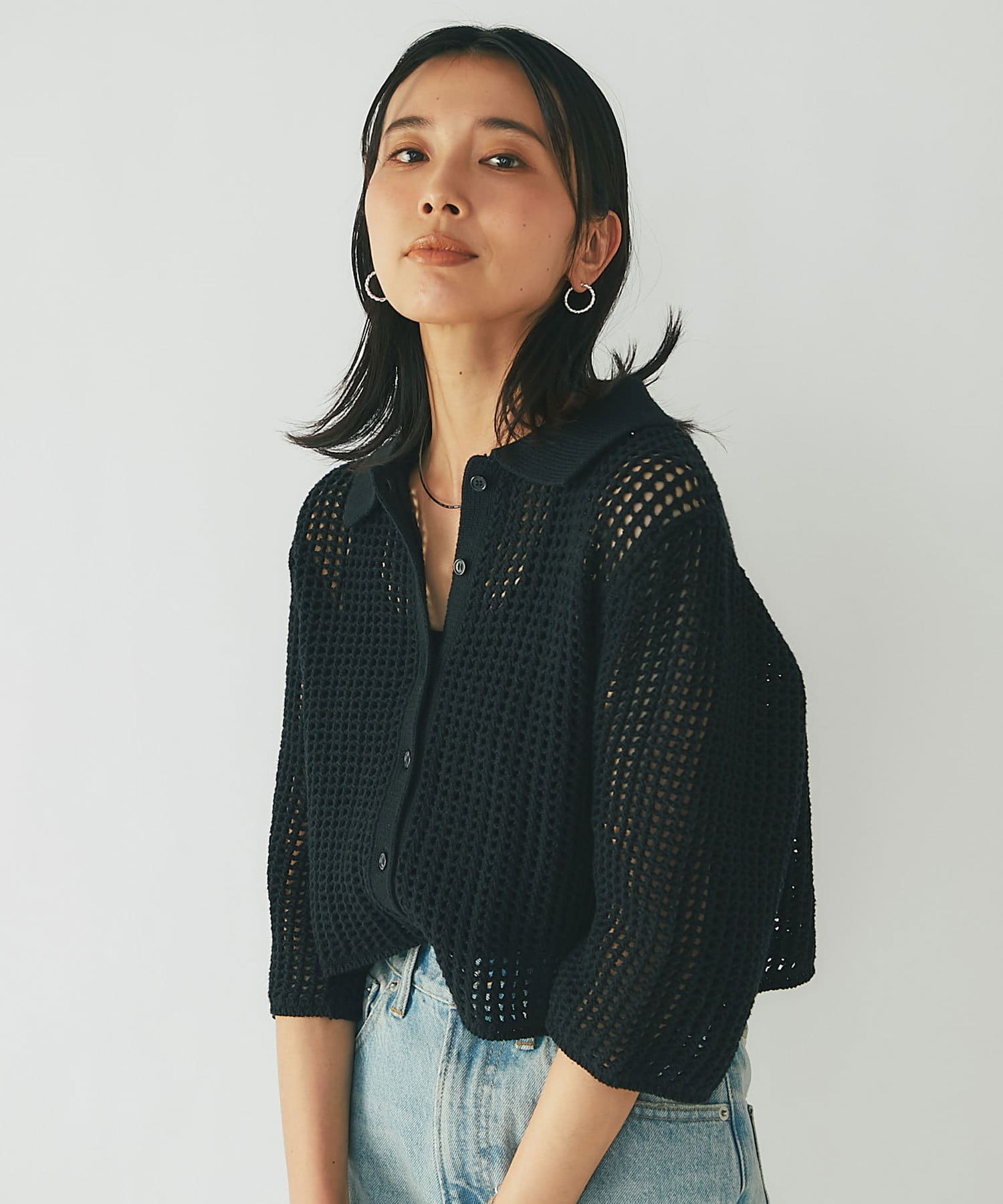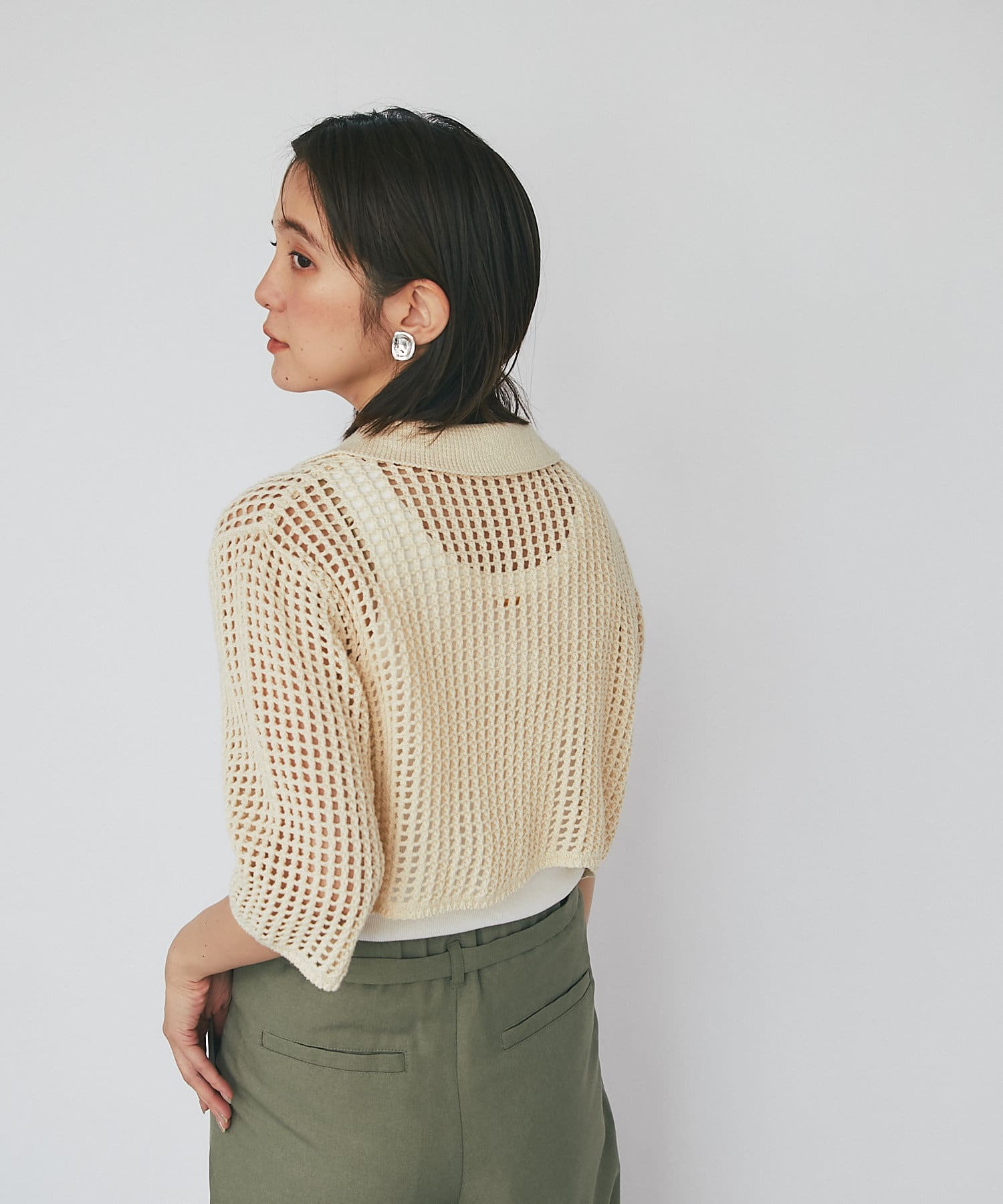 【WEB限定/今季もトレンドのメッシュ素材】メッシュポロカーディガン