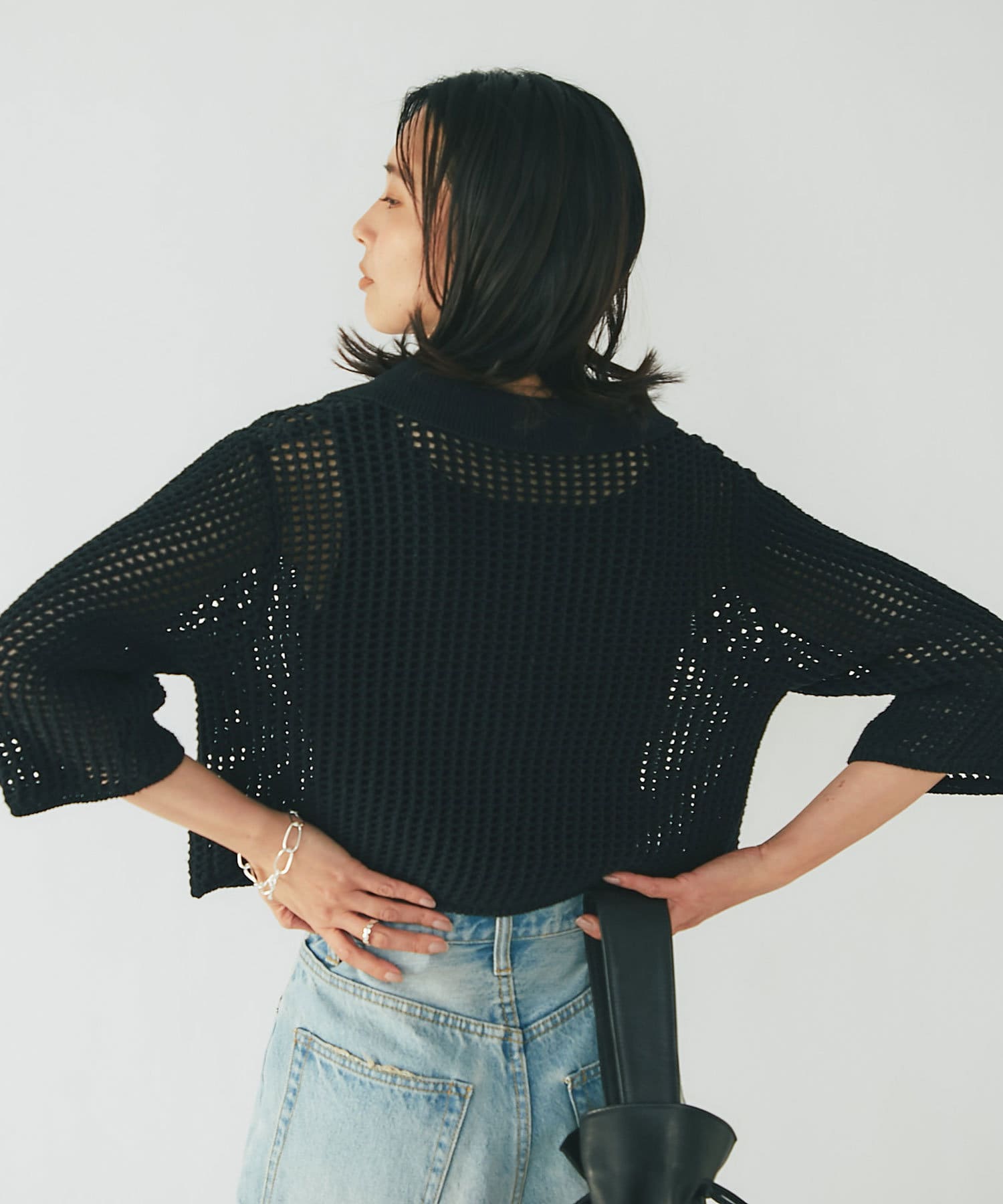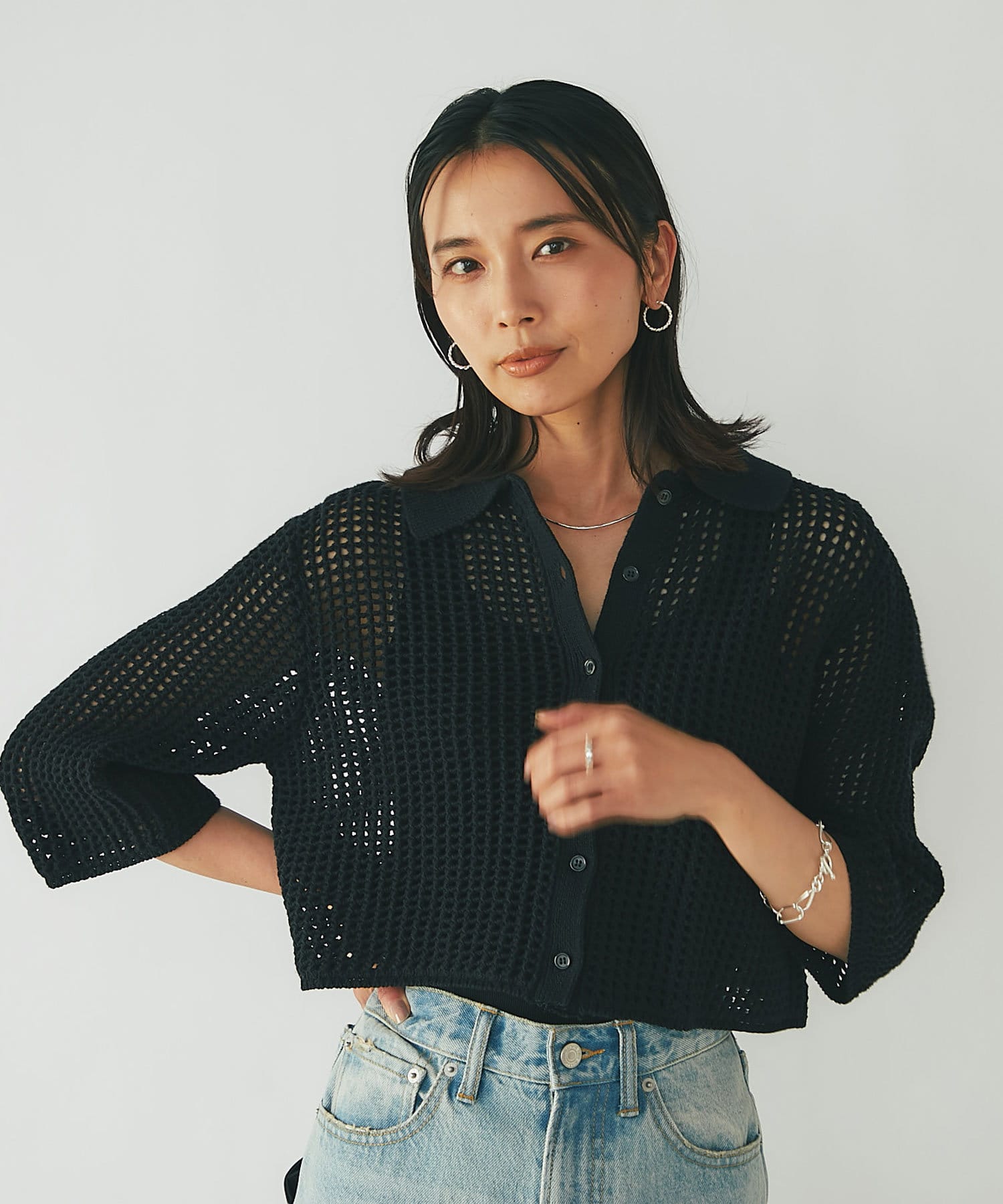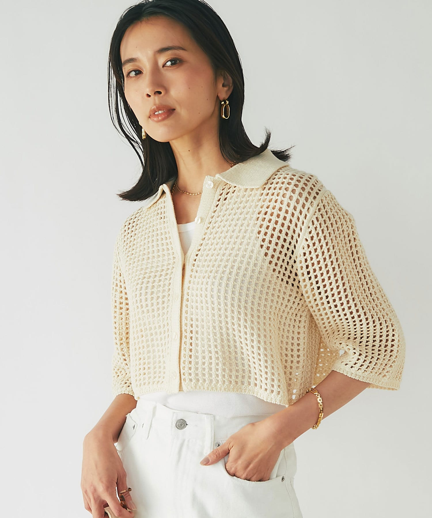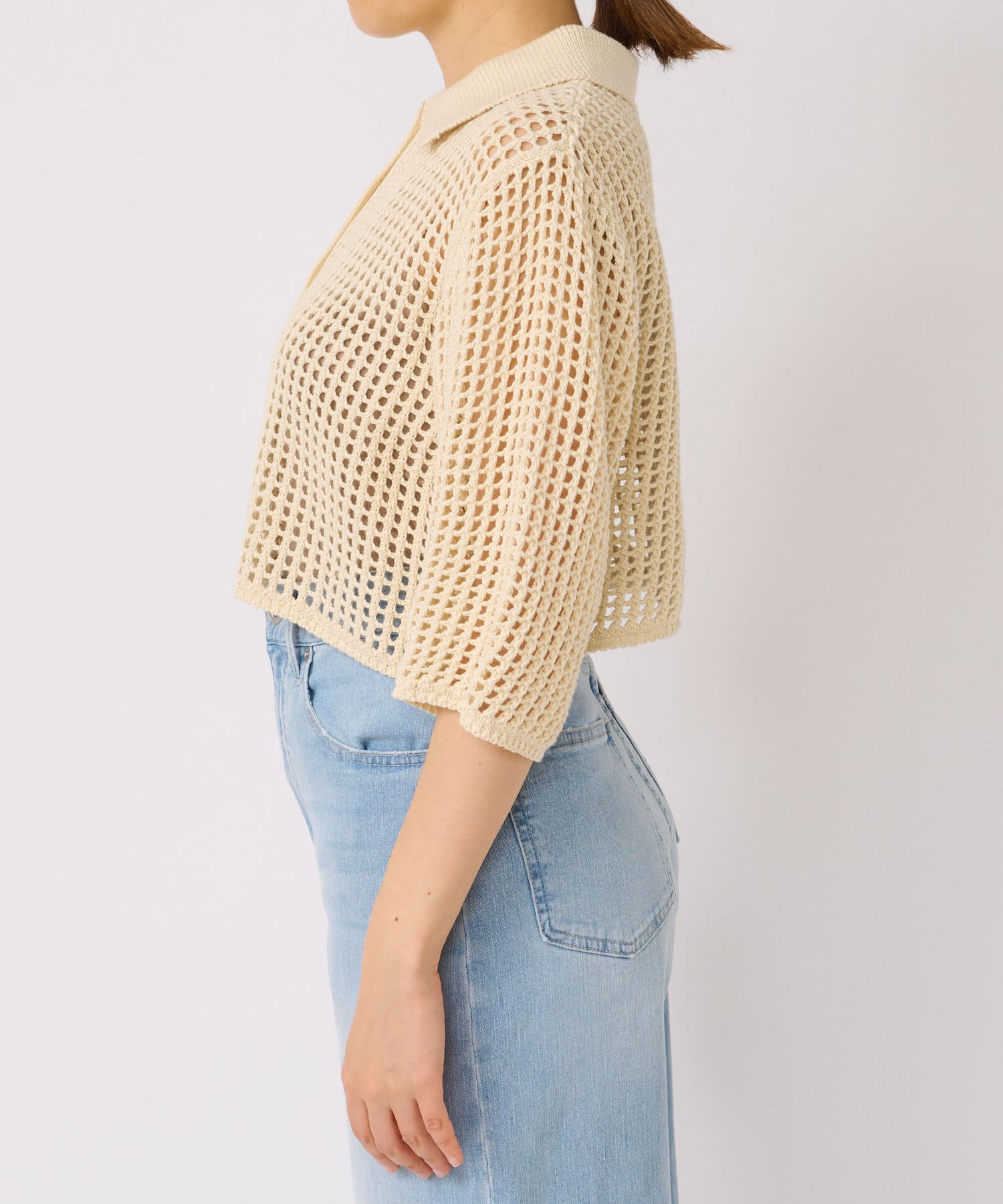 【WEB限定/今季もトレンドのメッシュ素材】メッシュポロカーディガン