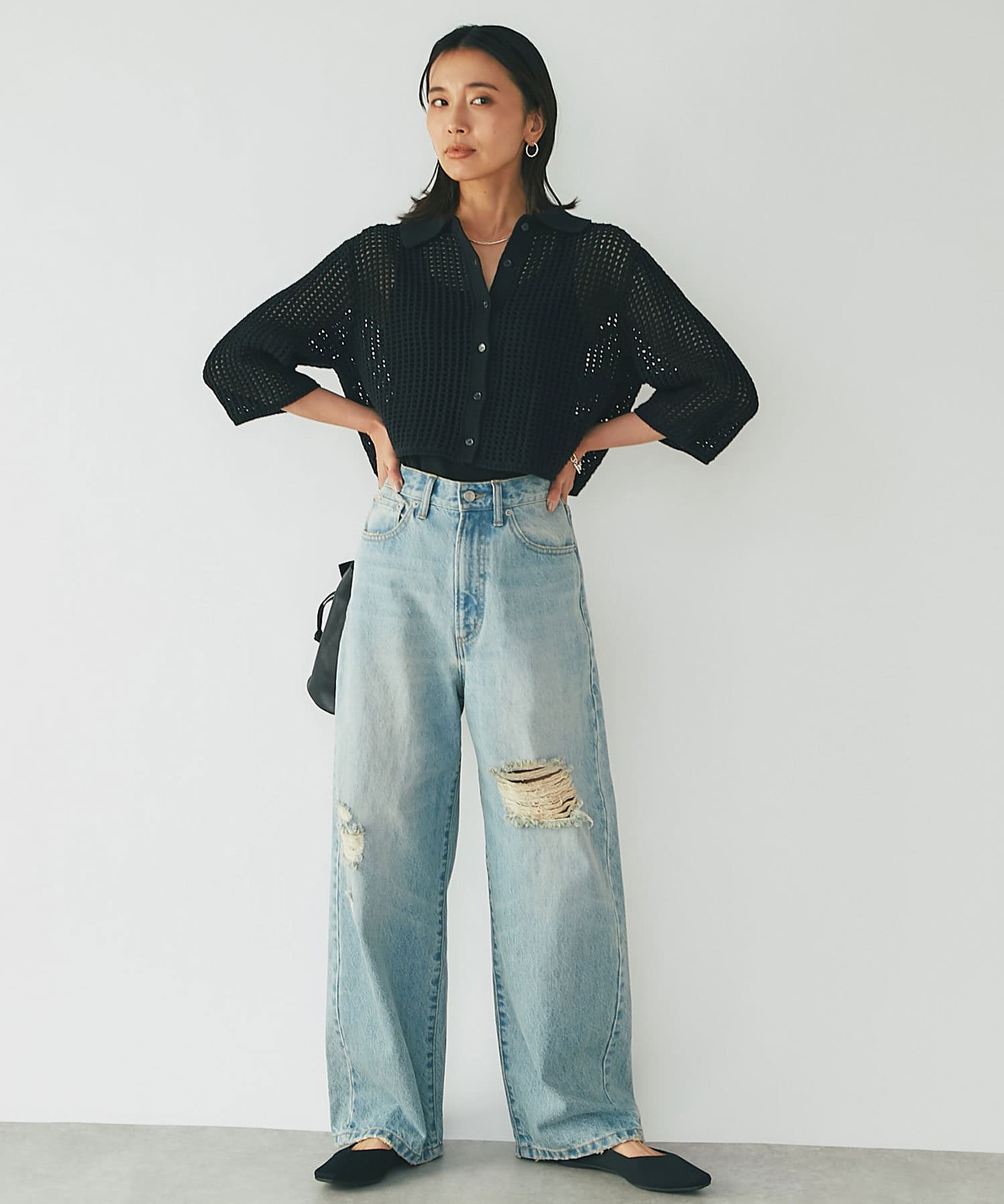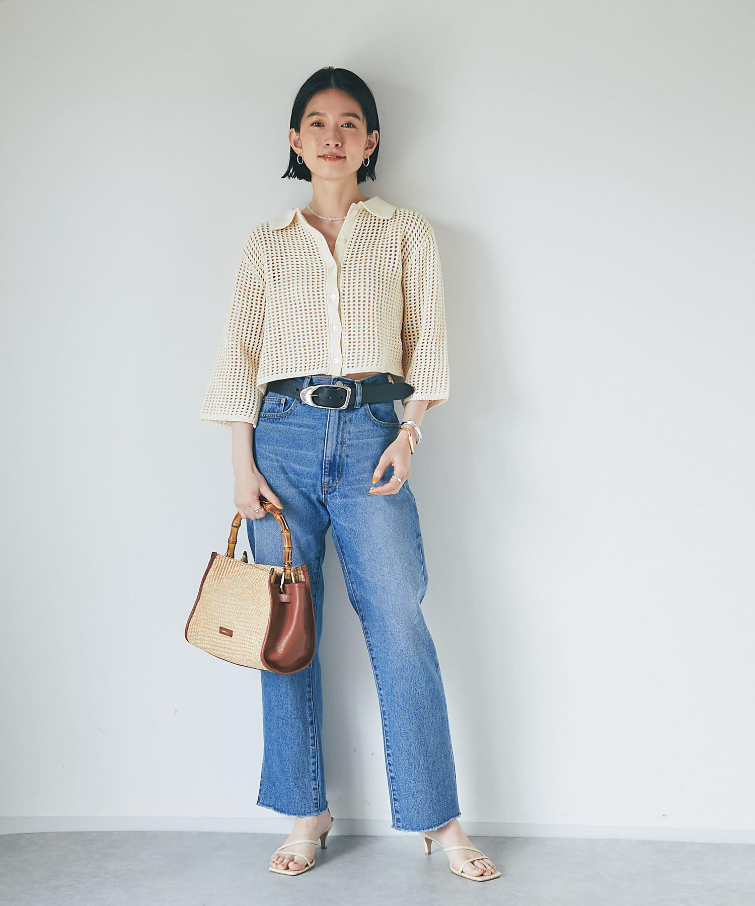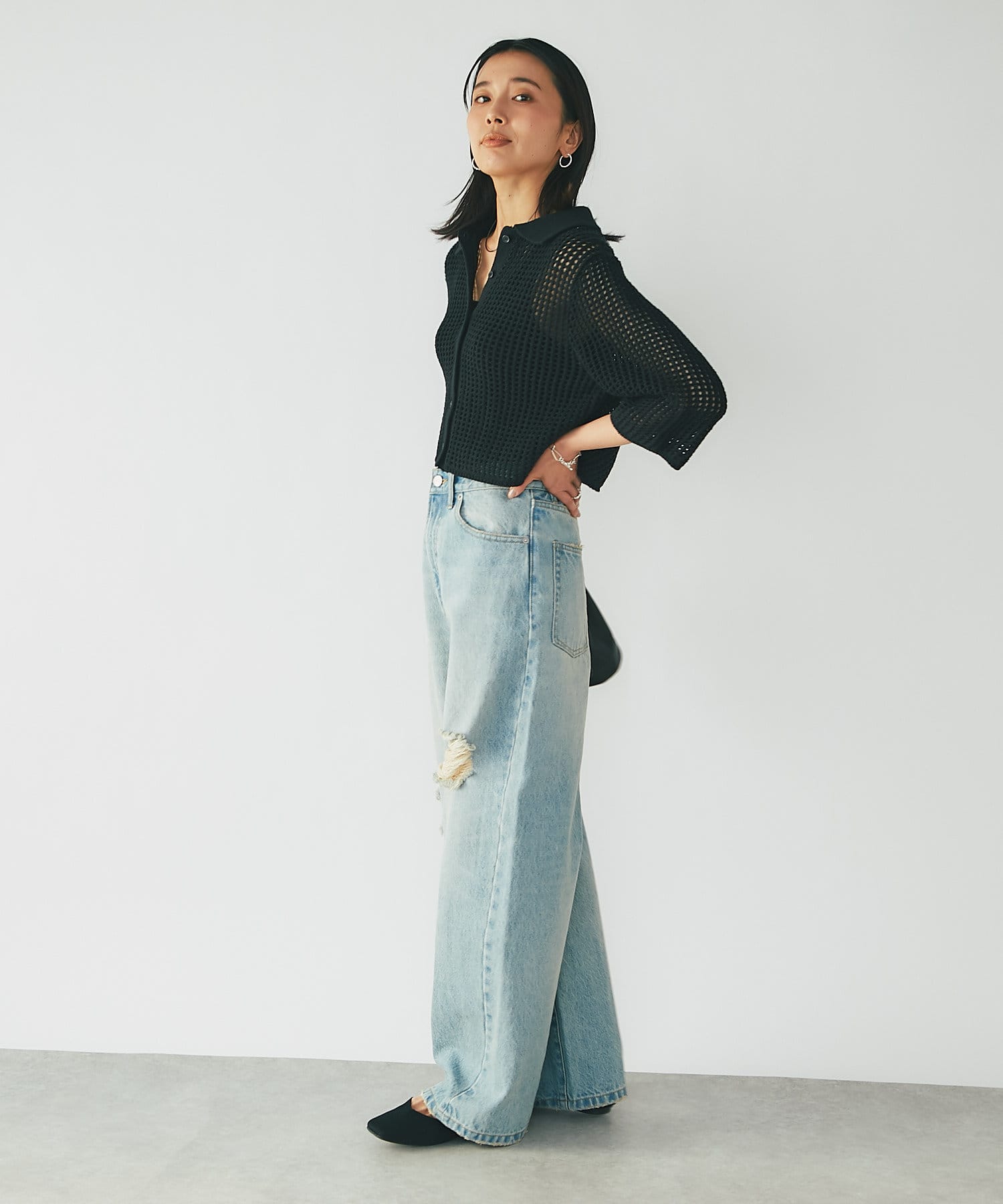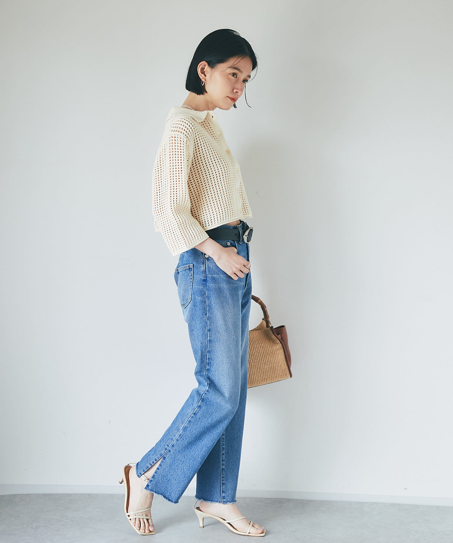 クロップド丈でインせずに決まる丈感は、ボトムを選ばずにスッキリと着用して頂けます。