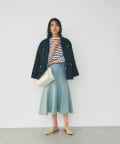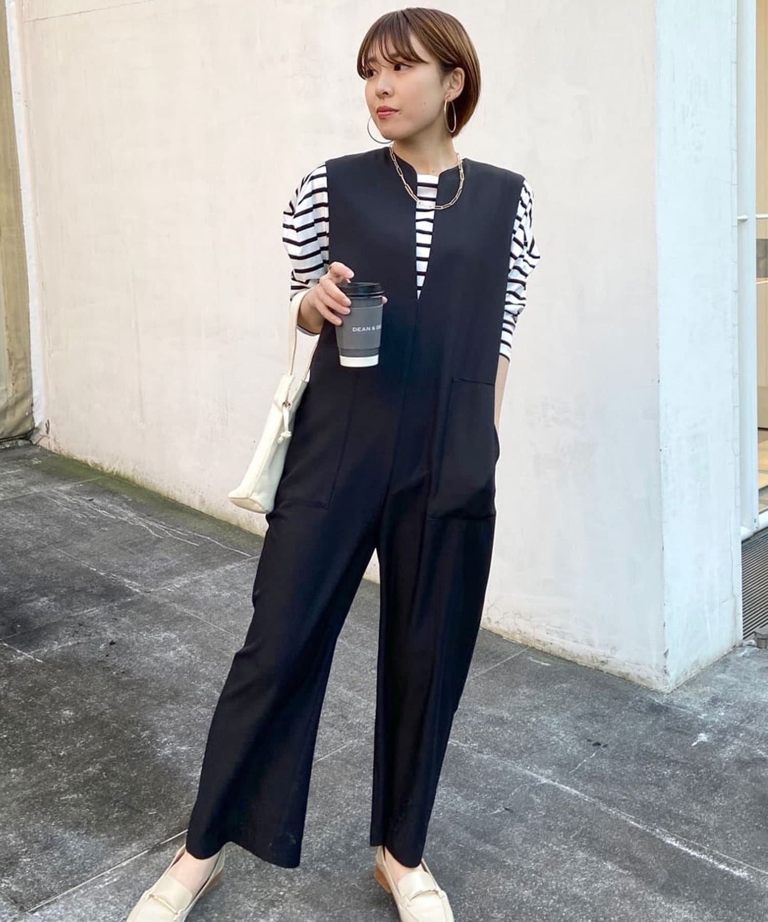 肩の下にボリューム感があるデザインのため、ボトムはタイト~少しボリュームを抑えたセミワイドやセミフレアのシルエットがバランスよく着れます。