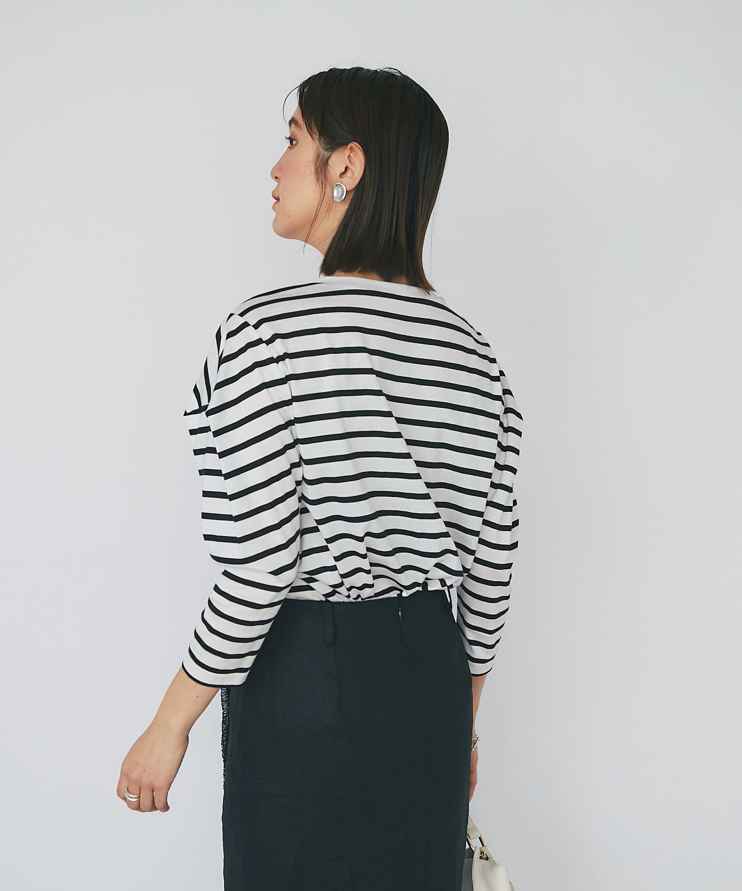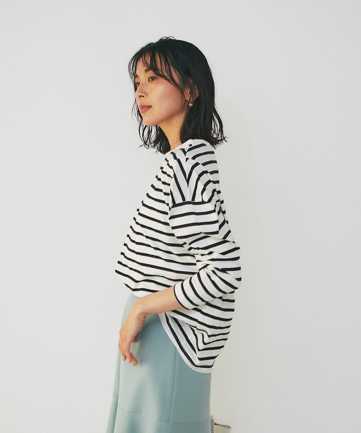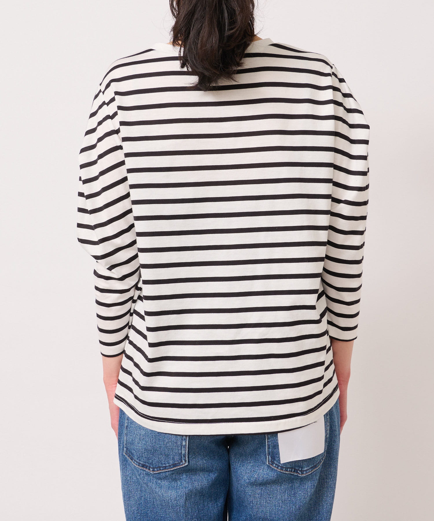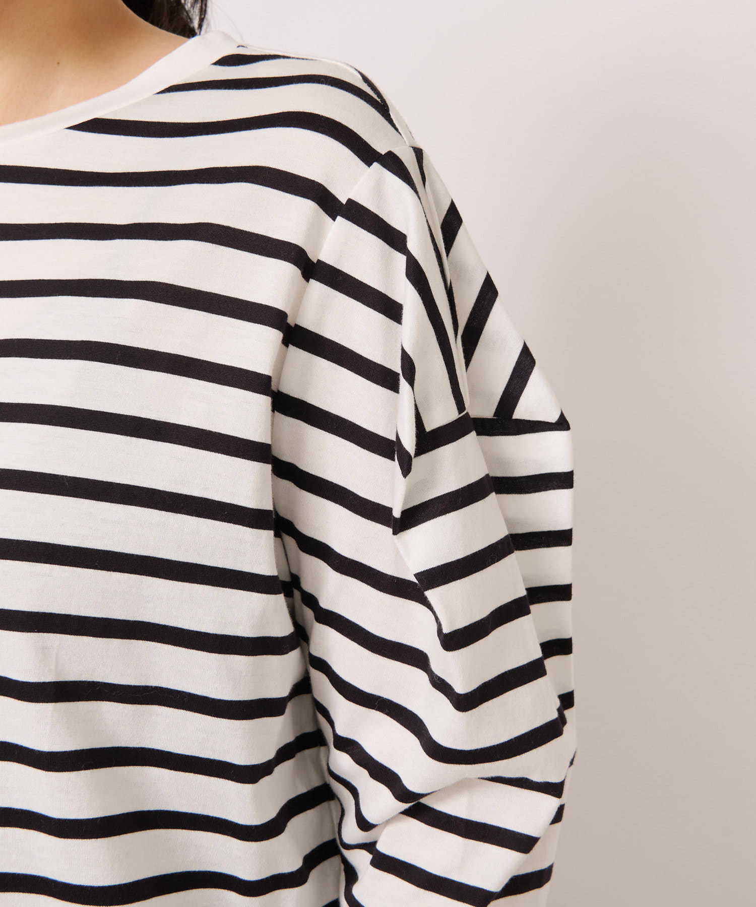 【コーディネートのアクセントにおすすめ】ショルダーポイントボーダーカットソー