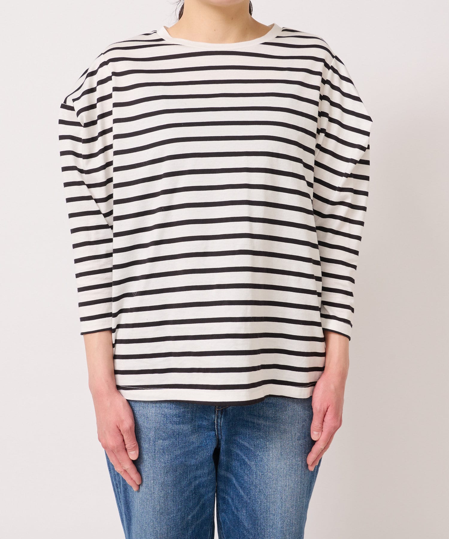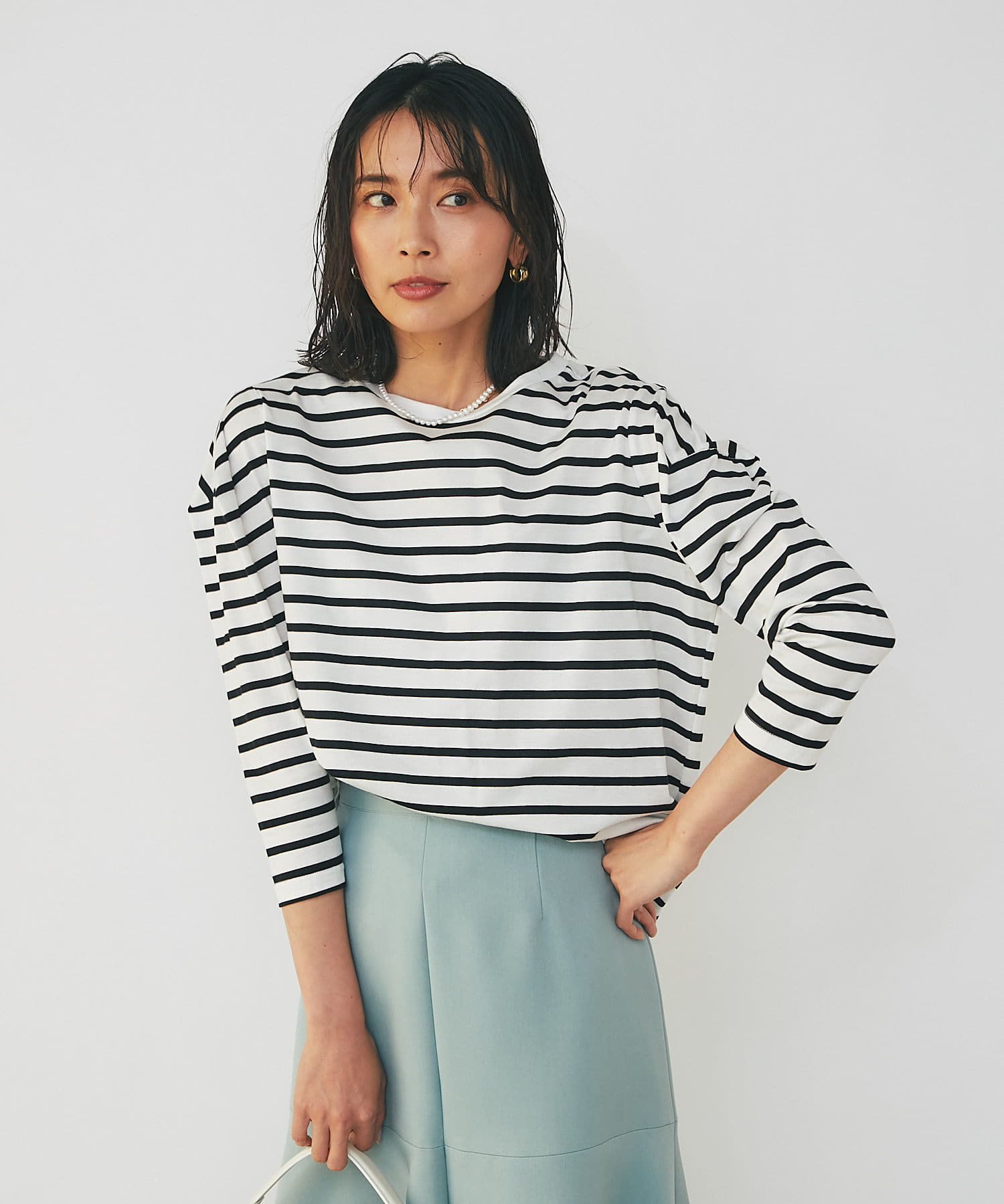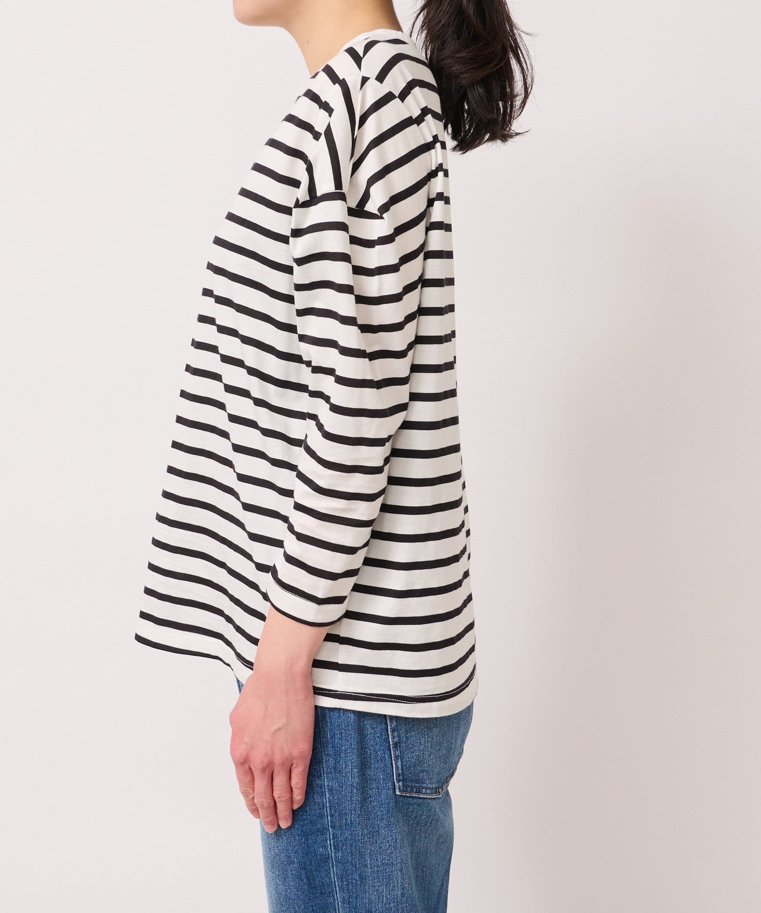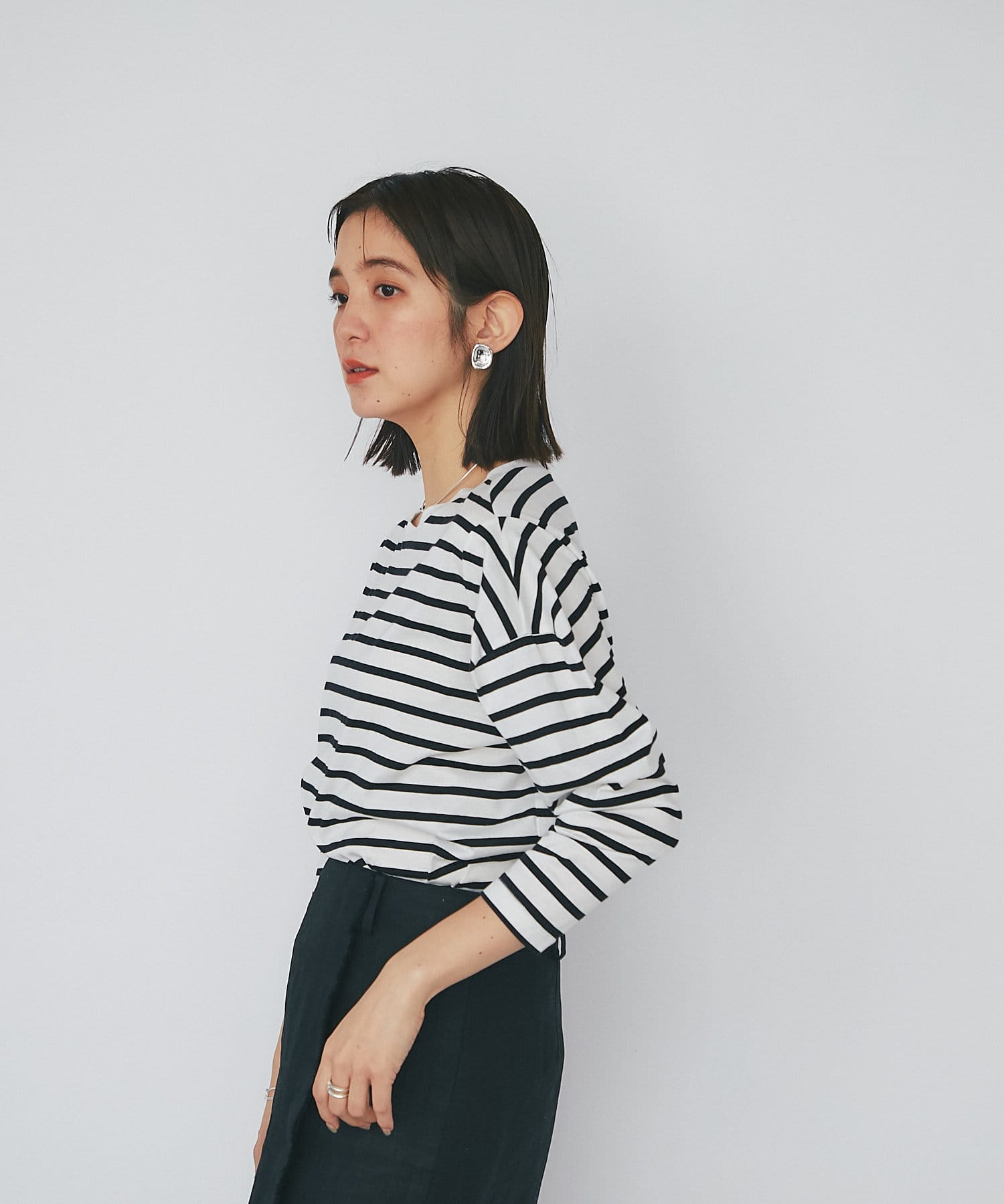 【コーディネートのアクセントにおすすめ】ショルダーポイントボーダーカットソー