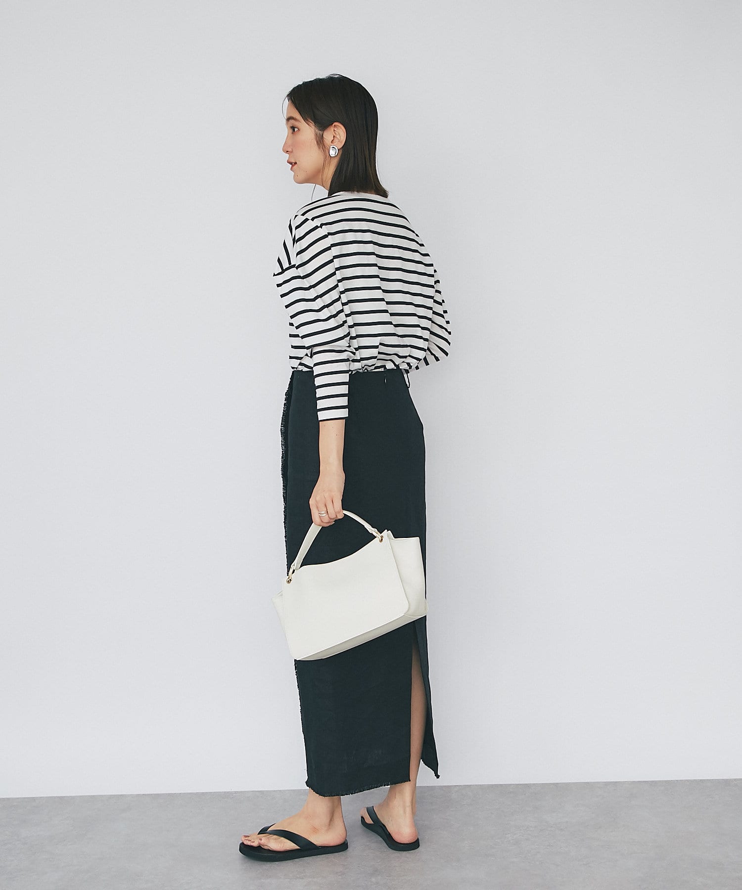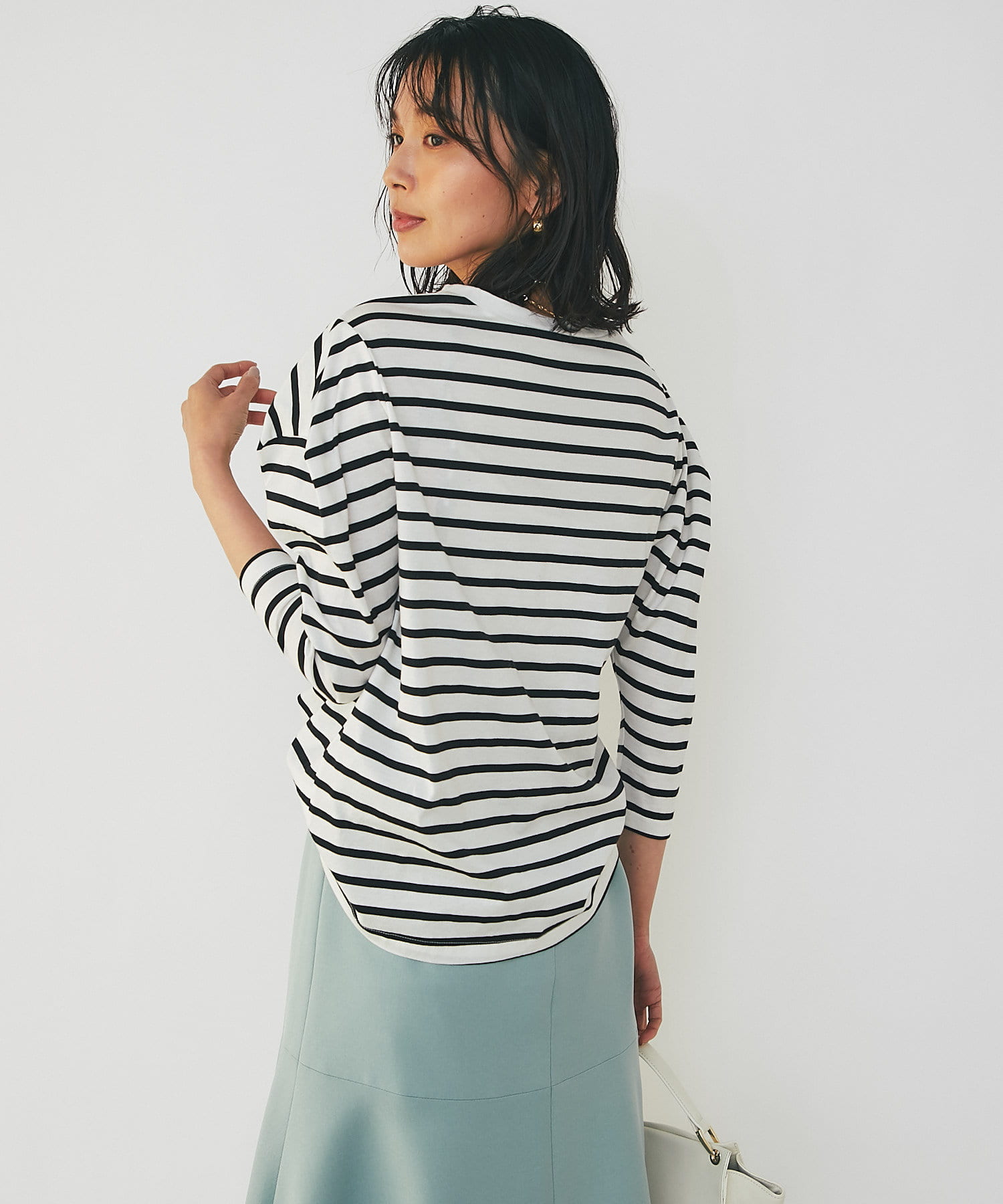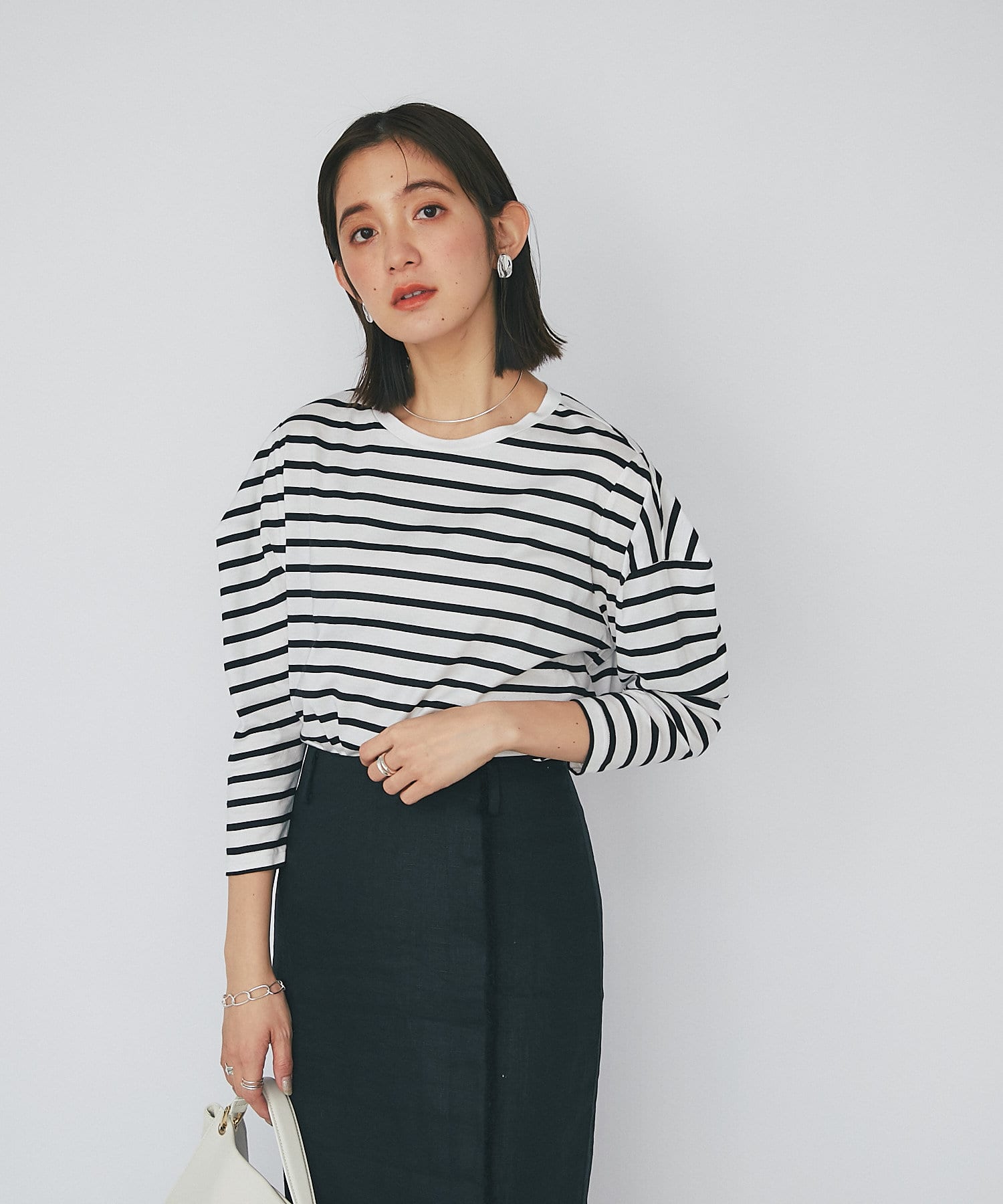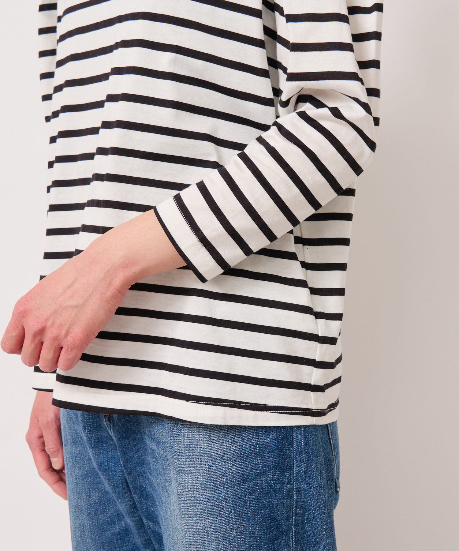 【コーディネートのアクセントにおすすめ】ショルダーポイントボーダーカットソー