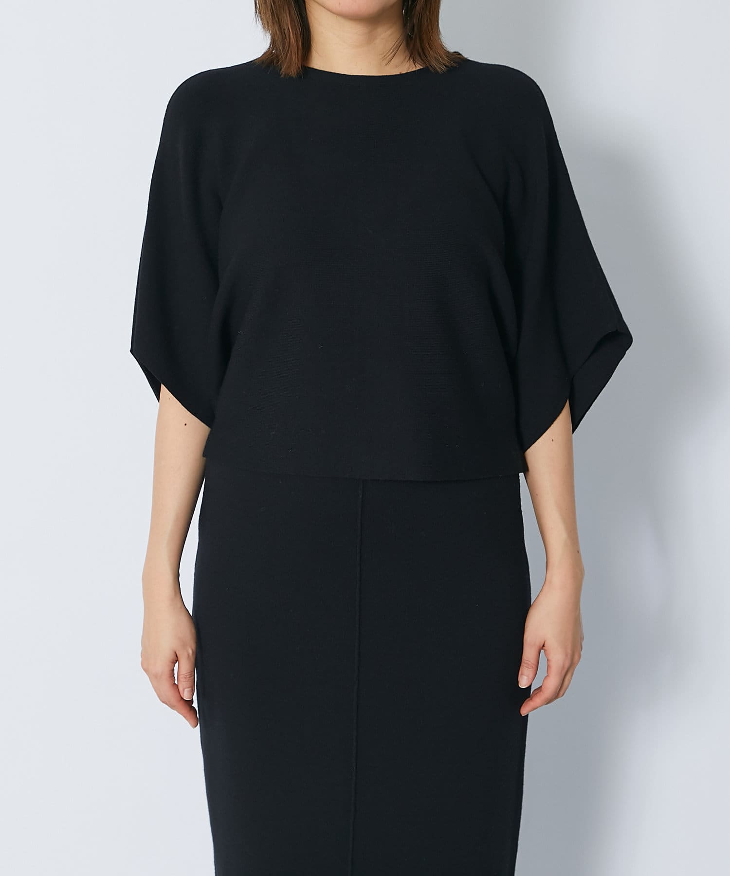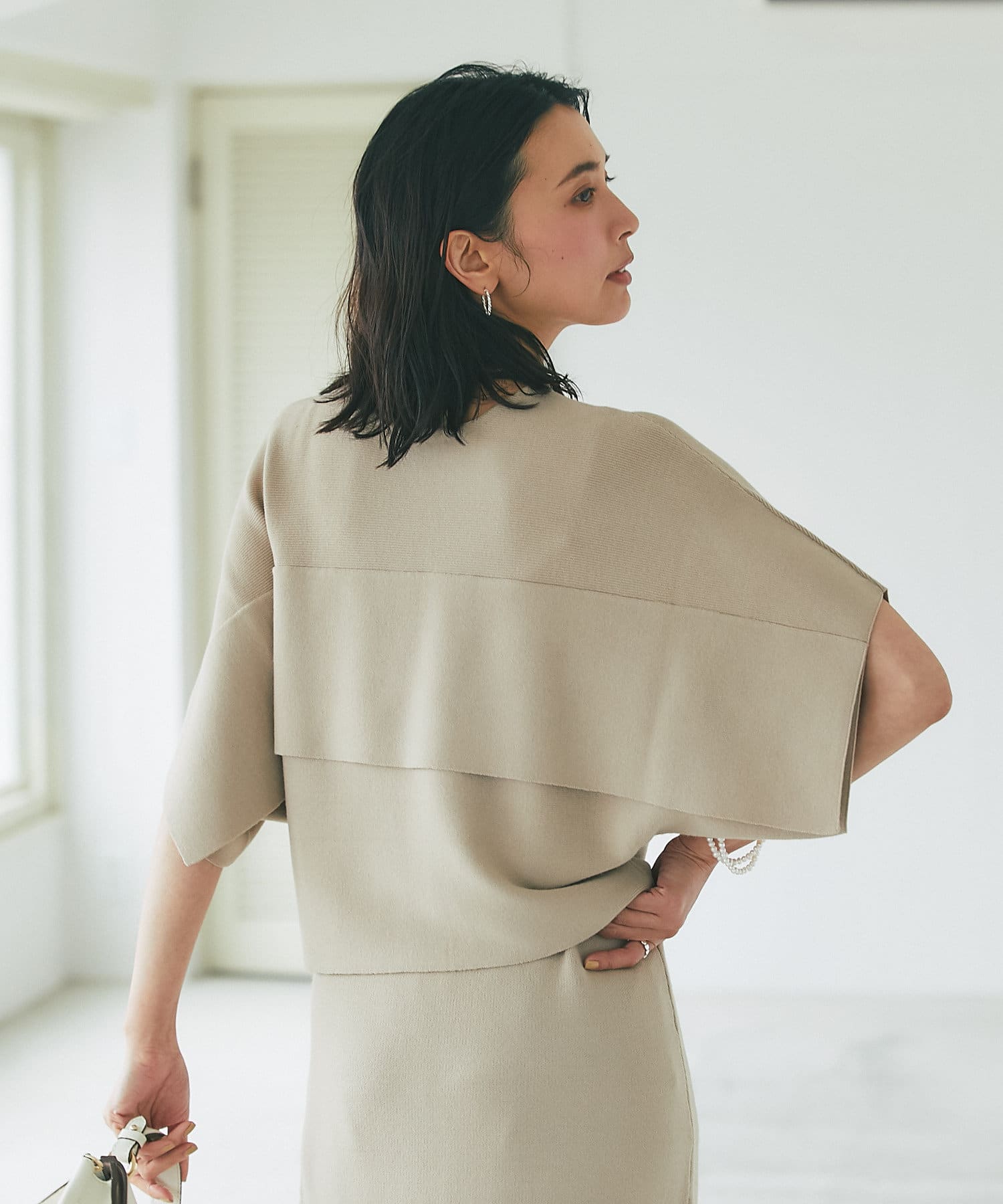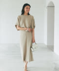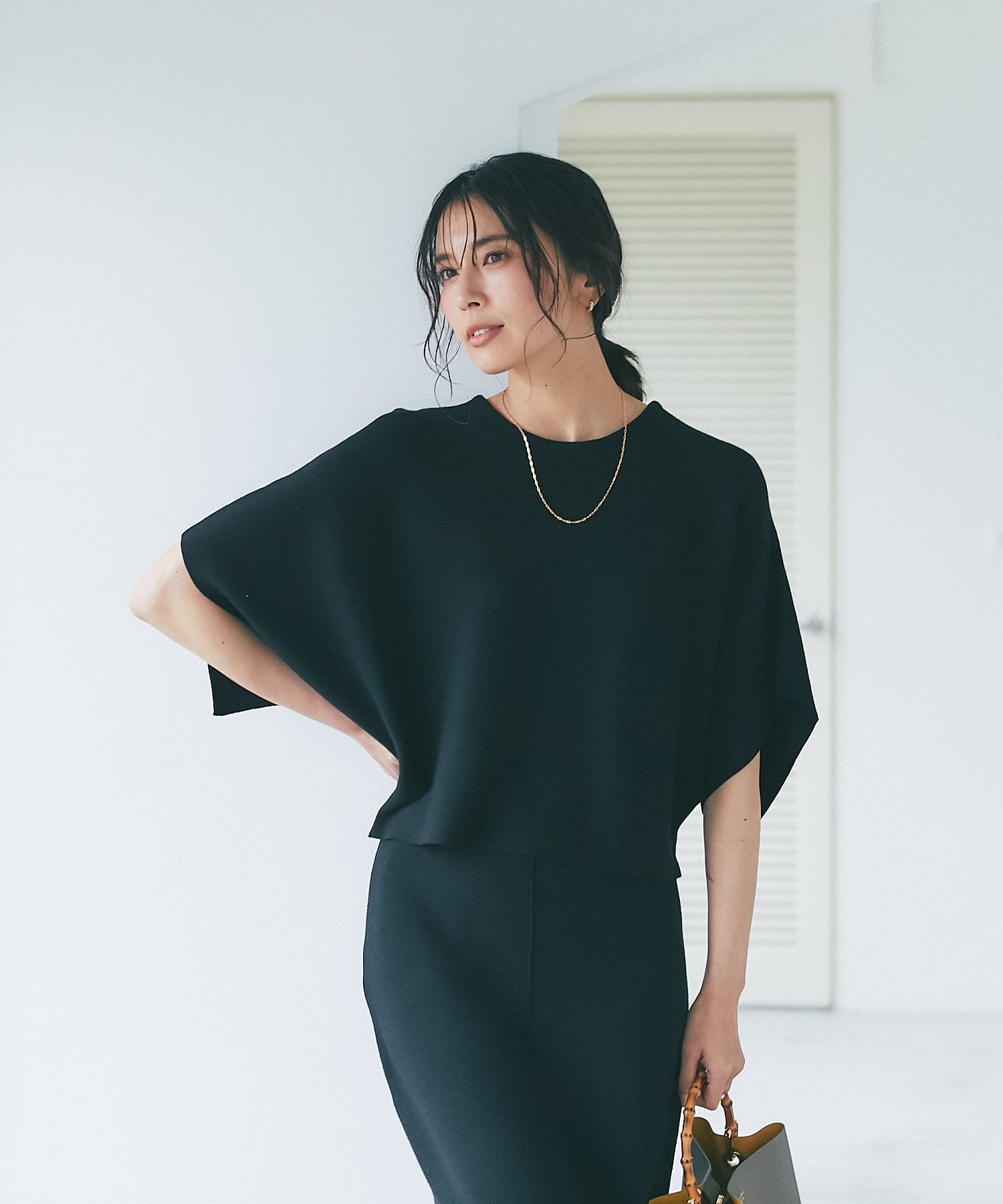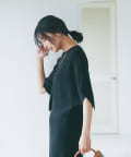 トップスは体のラインを拾わないデザインで、シンプルながらも女性らしいシルエットに。