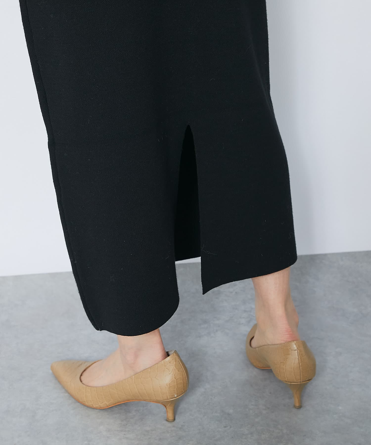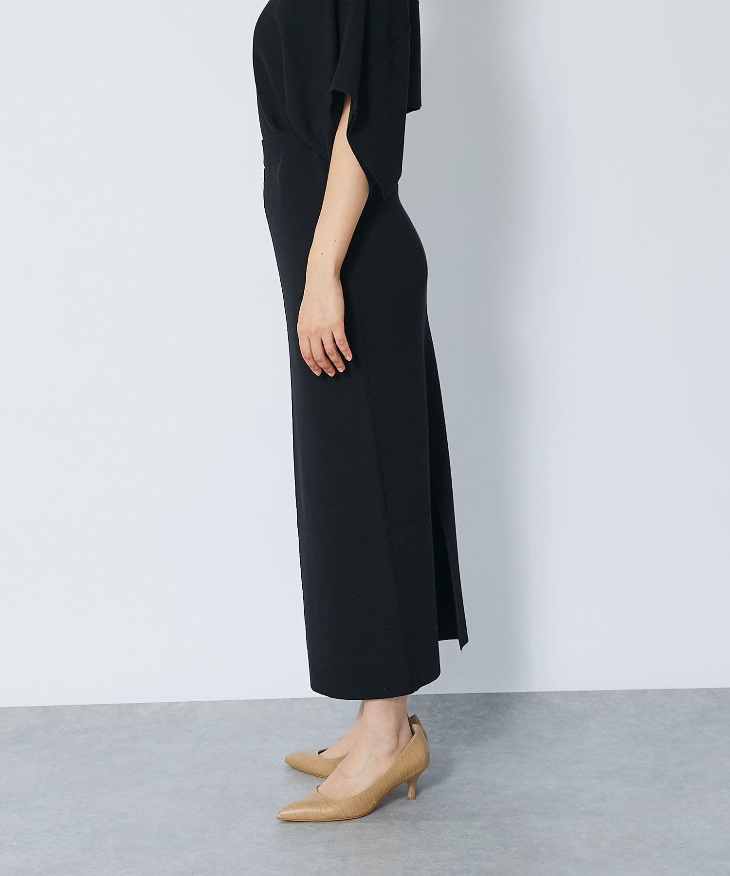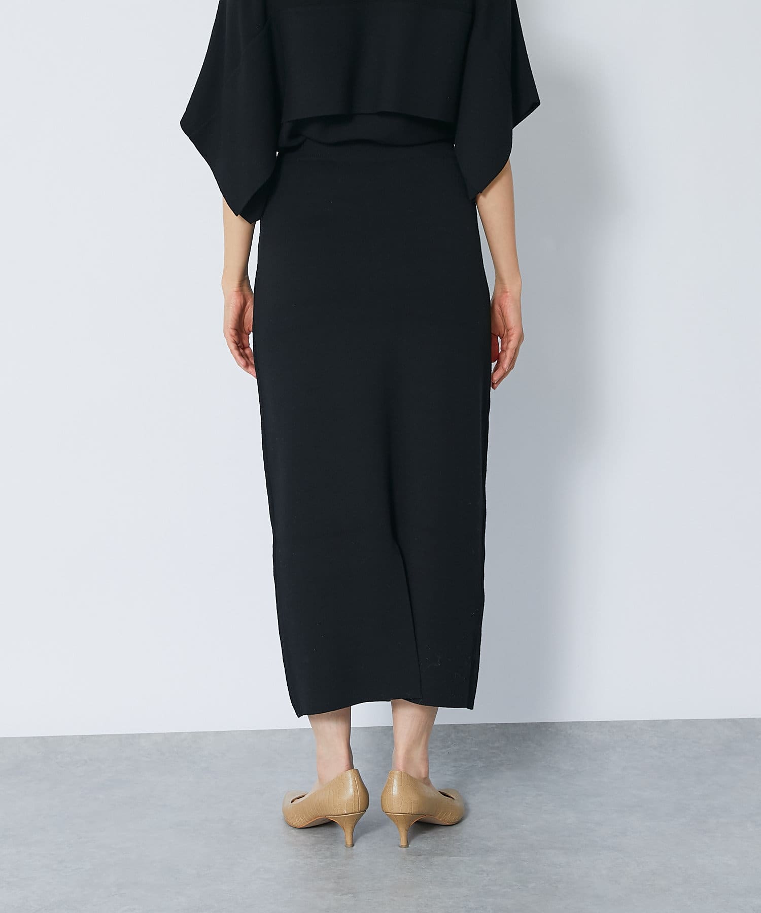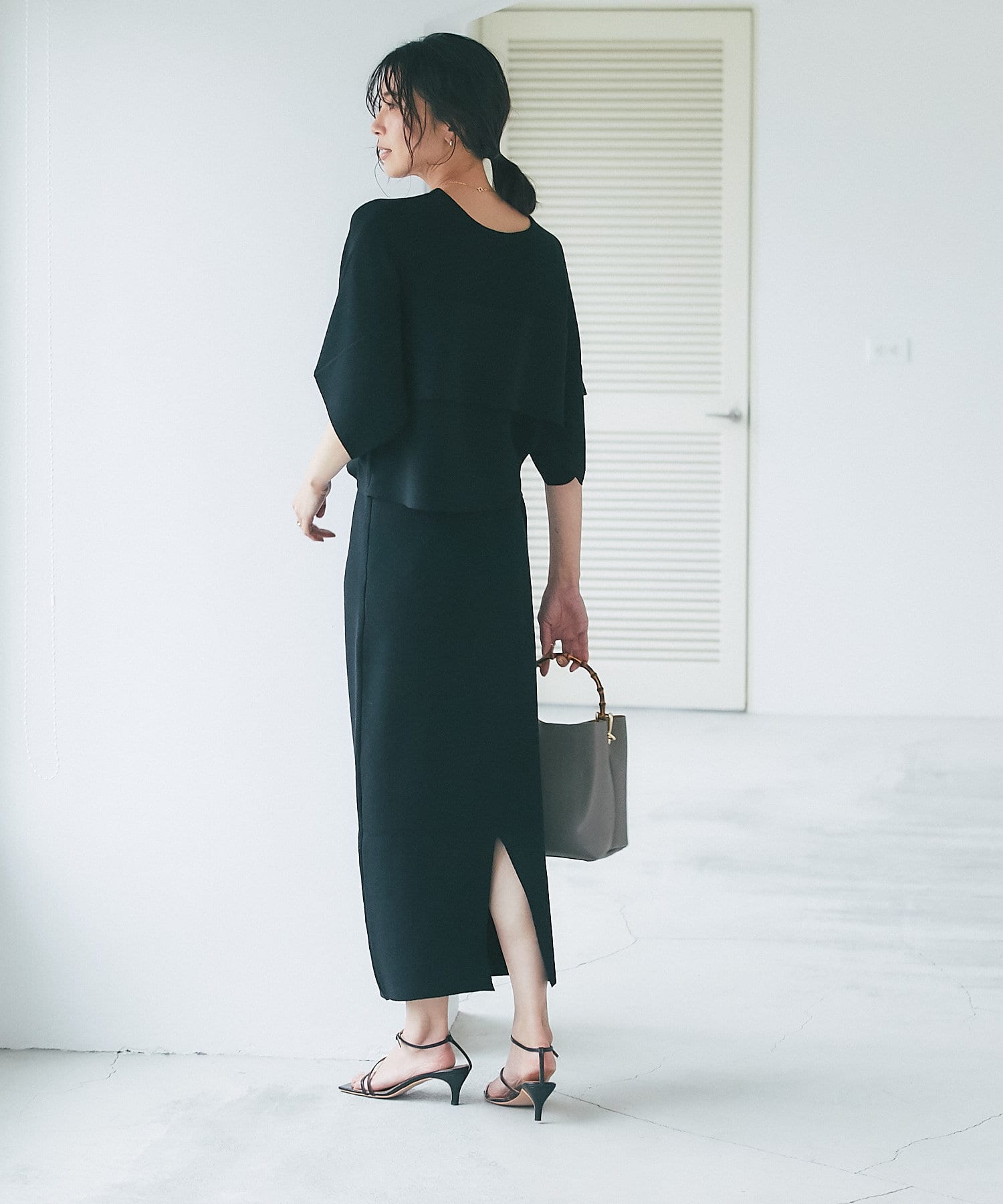 ボトムスのタイトスカートはシアー素材のニットやシャツと合わせると一気にトレンドライクな着こなしに。長めの丈感で肌の露出も控えめなので、気楽に履いていただける楽ちんさも魅力の一枚です。