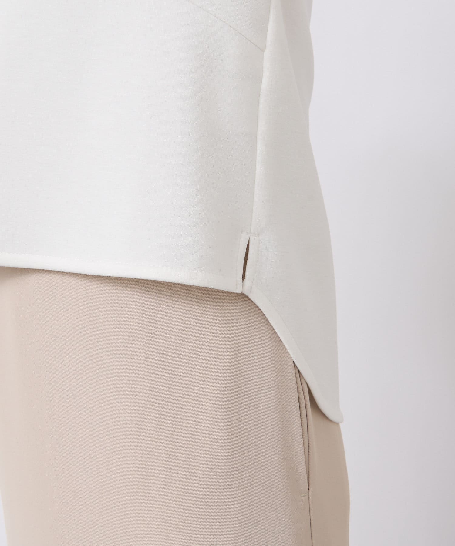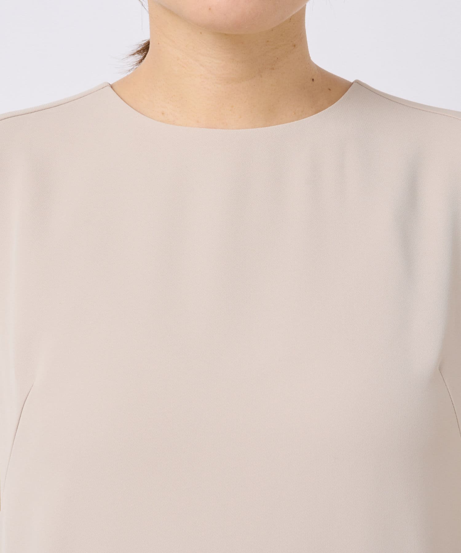 トップスは袖の肩先にタックが入ることで、立体的なシルエットになっているのがポイント。