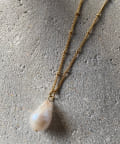 ドットデザインのチェーンと、ワンポイントの淡水パールが組み合わさったネックレス。