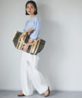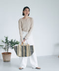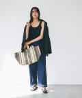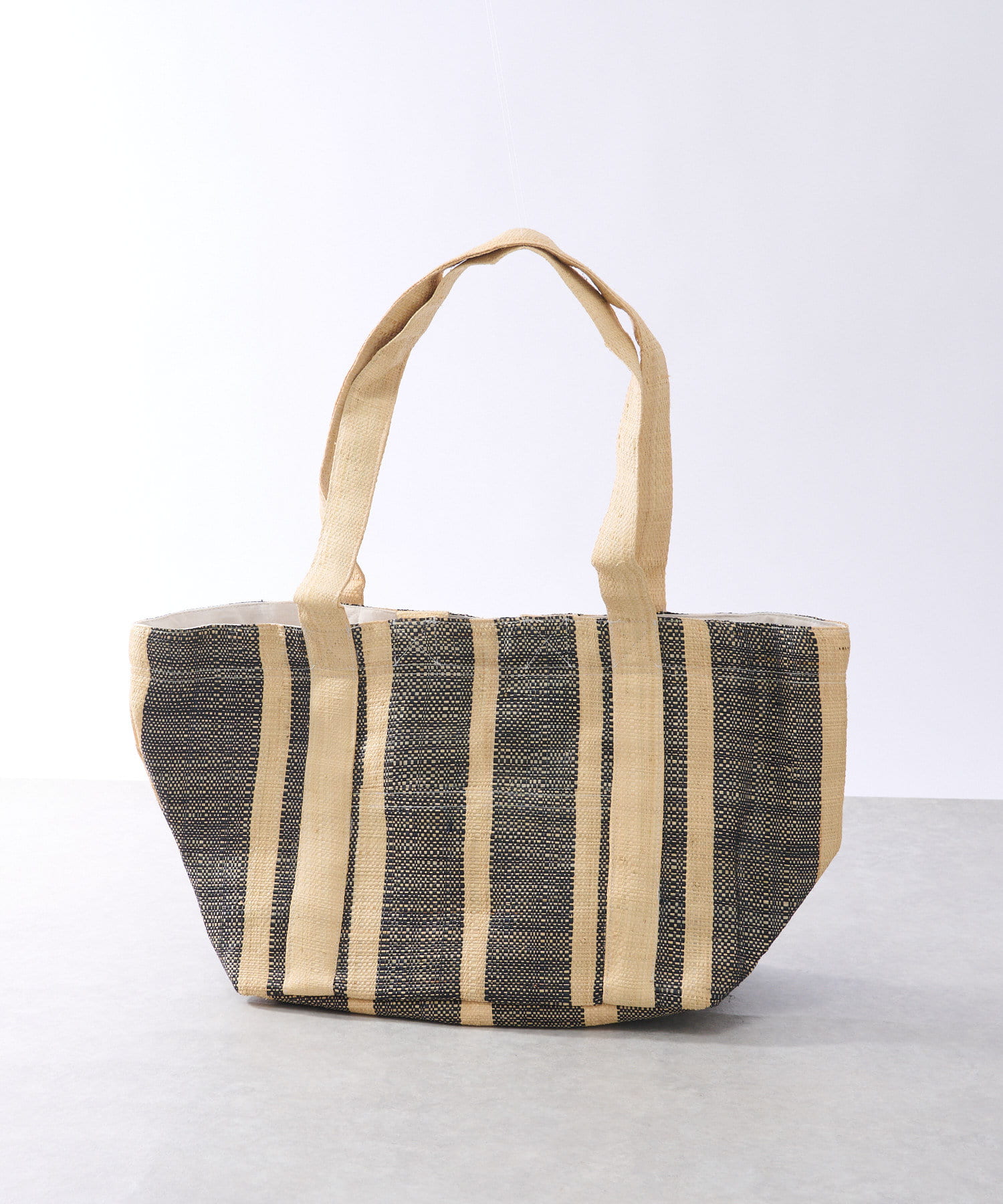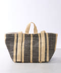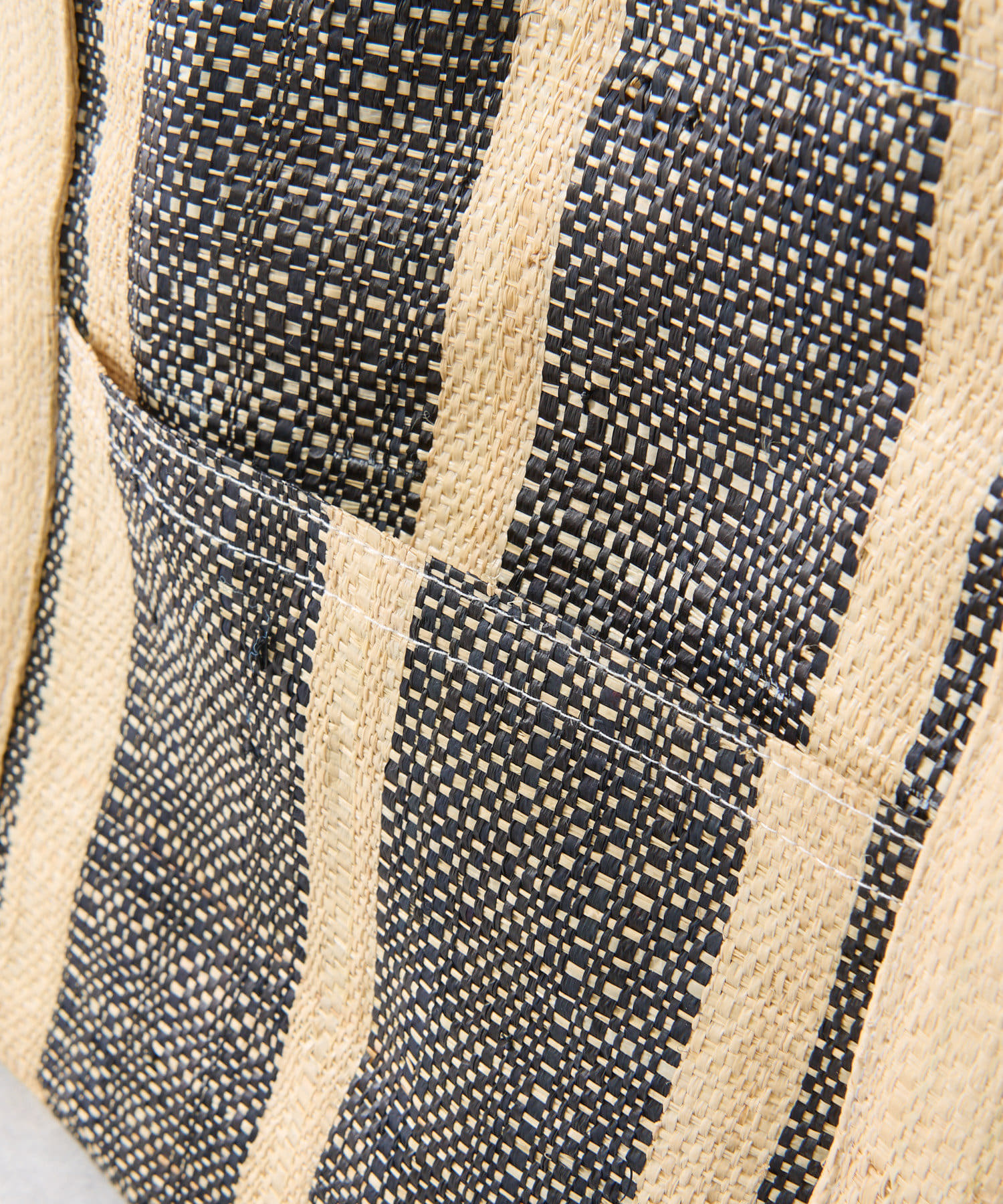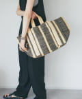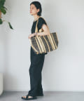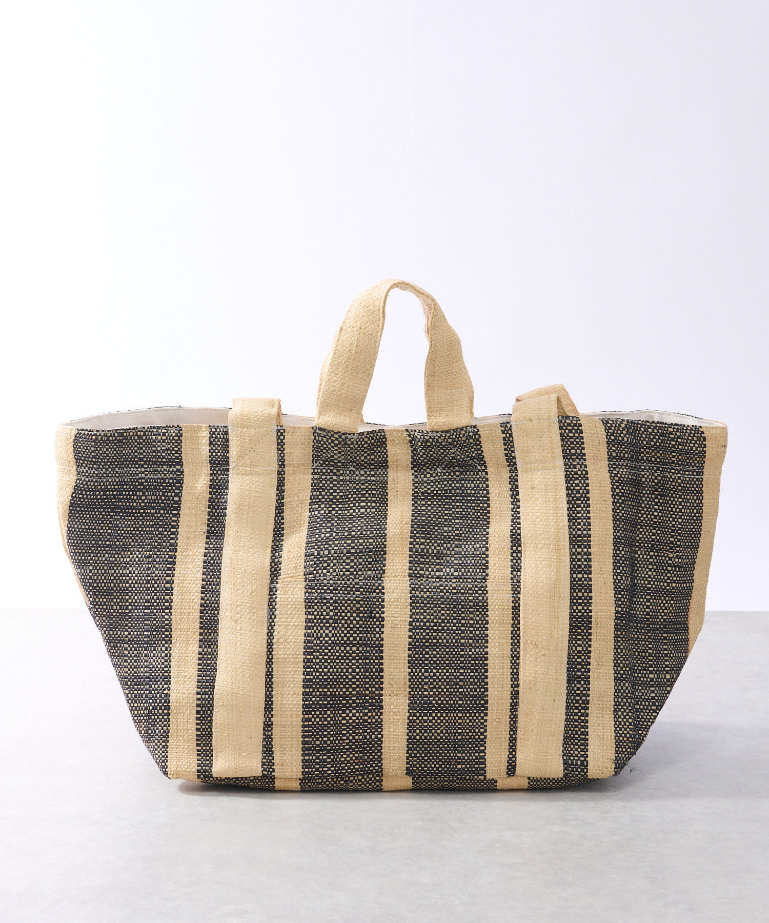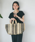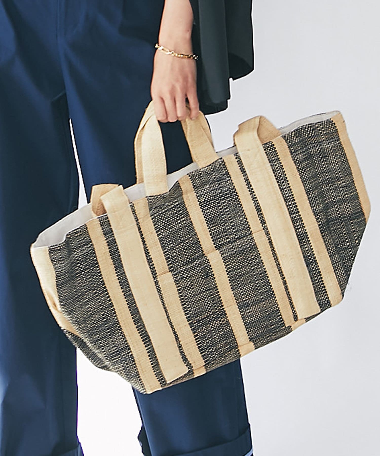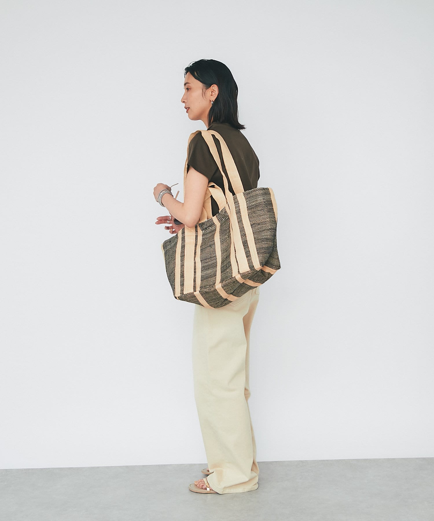 幅の違うストライプ柄で編みこまれた大判のバッグ。