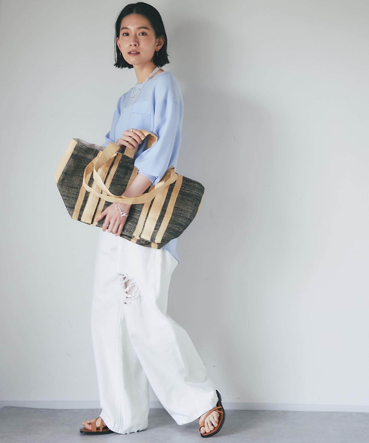 ピクニックやプールなどのレジャーシーンだけでなく、タウンユースにも映える素材感でシーズンムードが高まるアイテムです。