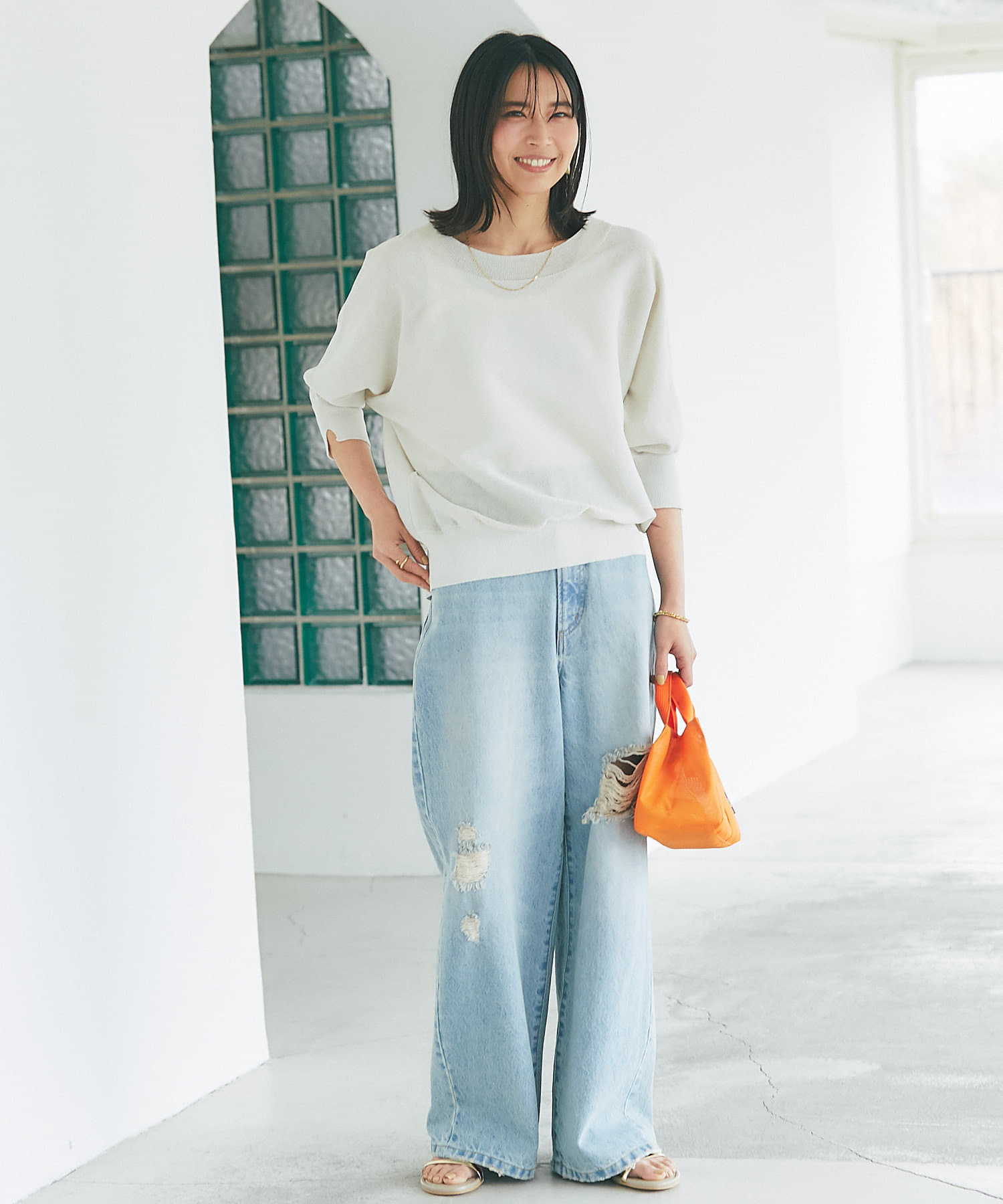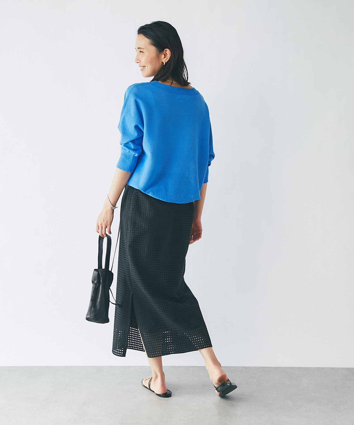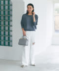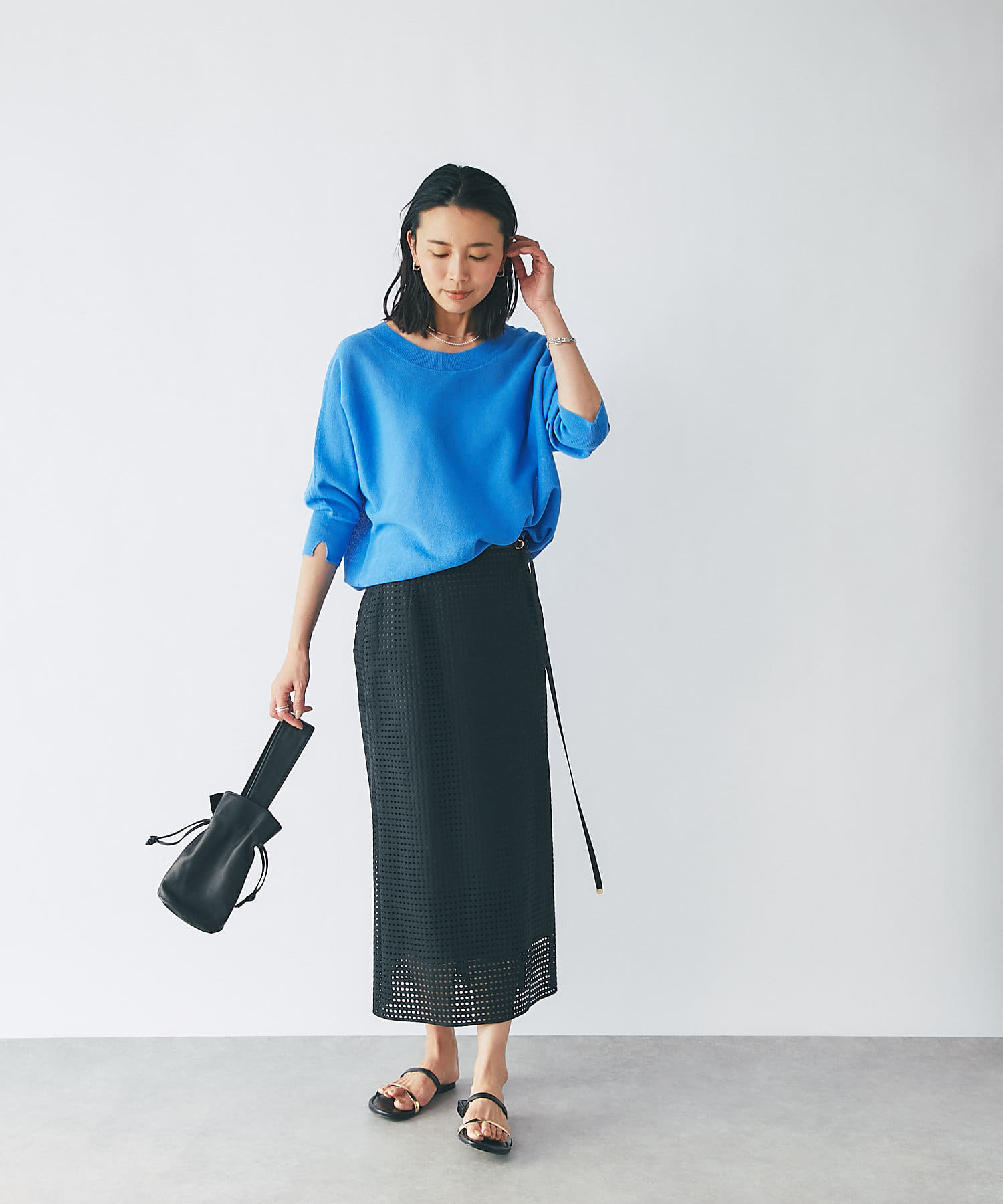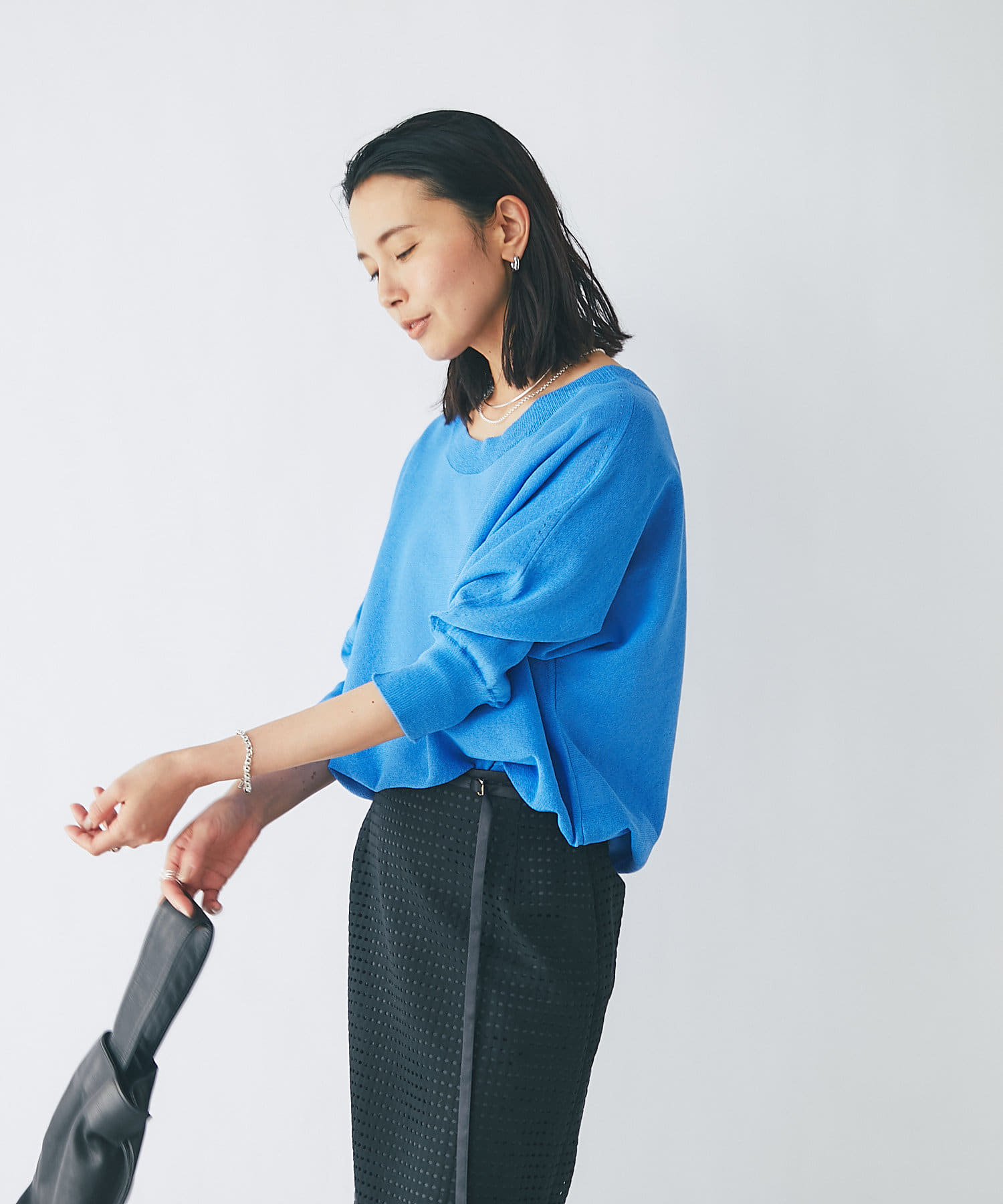 どんなスタイリングにも合わせやすく、ボトムも選ばずに使える万能ニット。