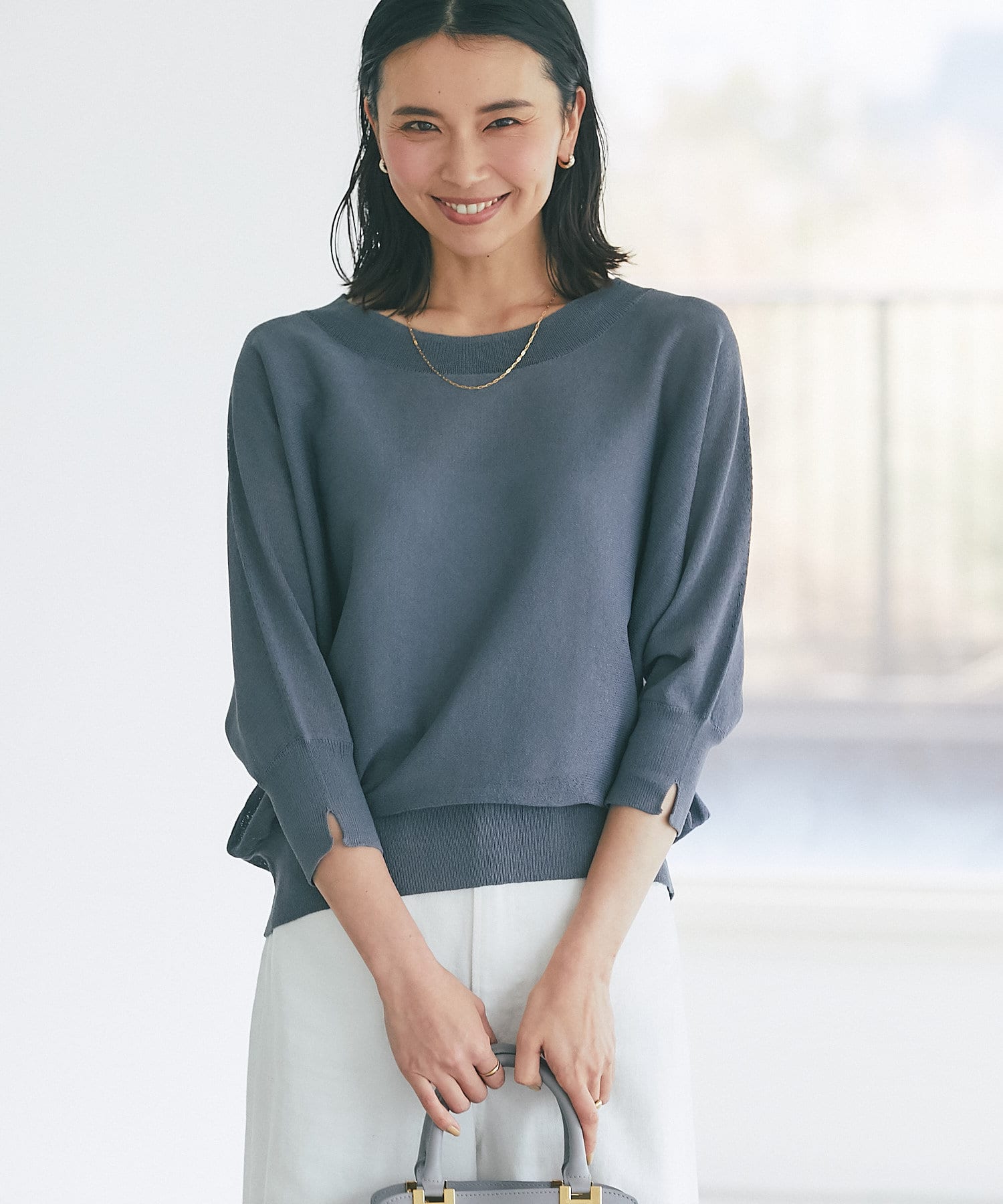 【さらっとした素材で夏も快適】ペーパーヤーンドルマンニット