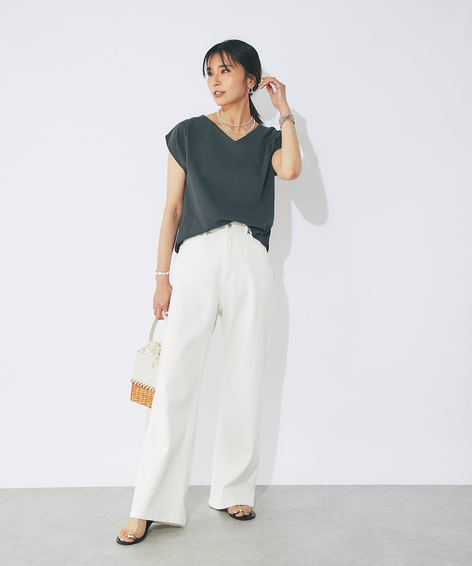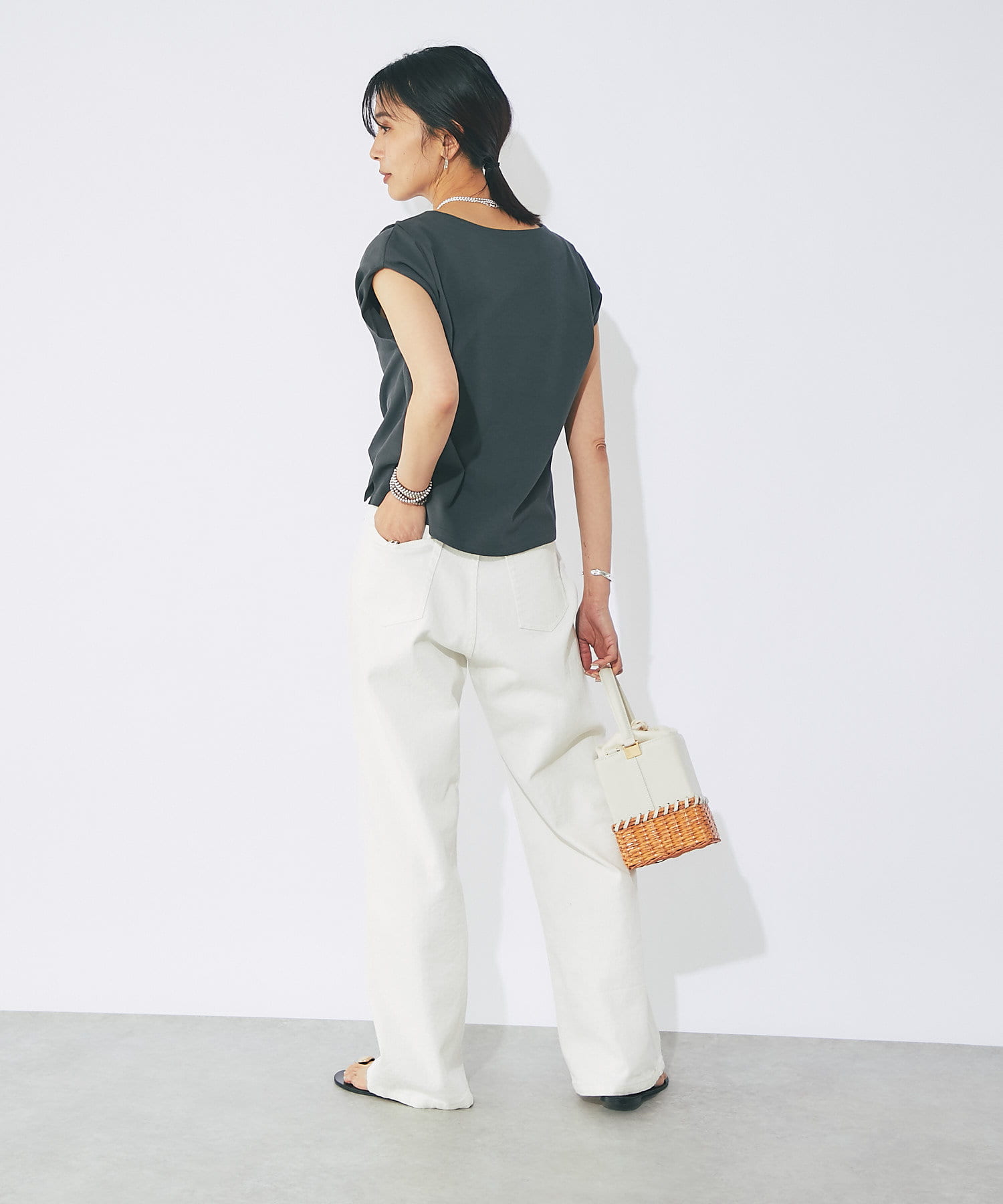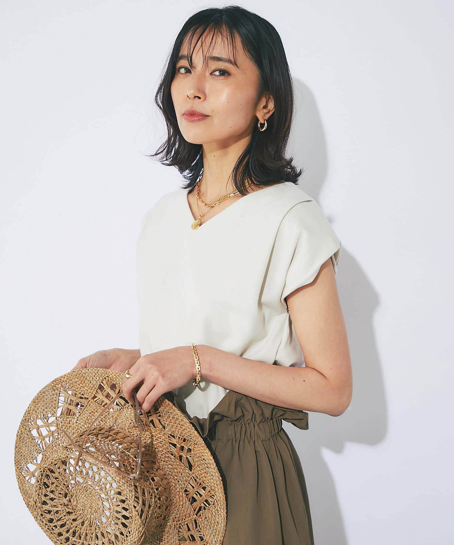 ⇒ノースリーブよりも肩にかかるデザインのため安心感があり、二の腕を華奢見えさせるシルエットになっております。