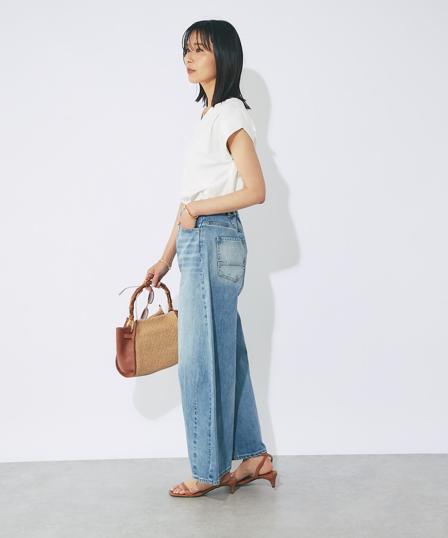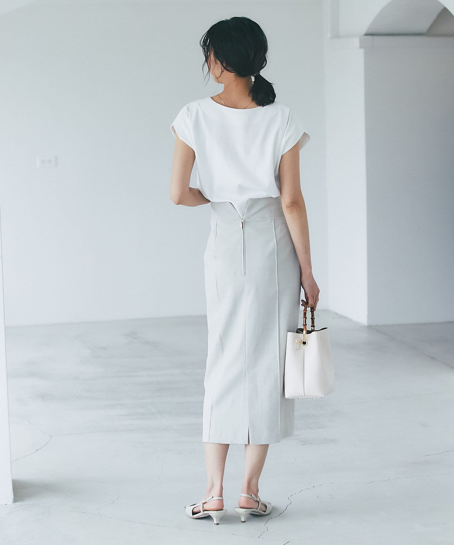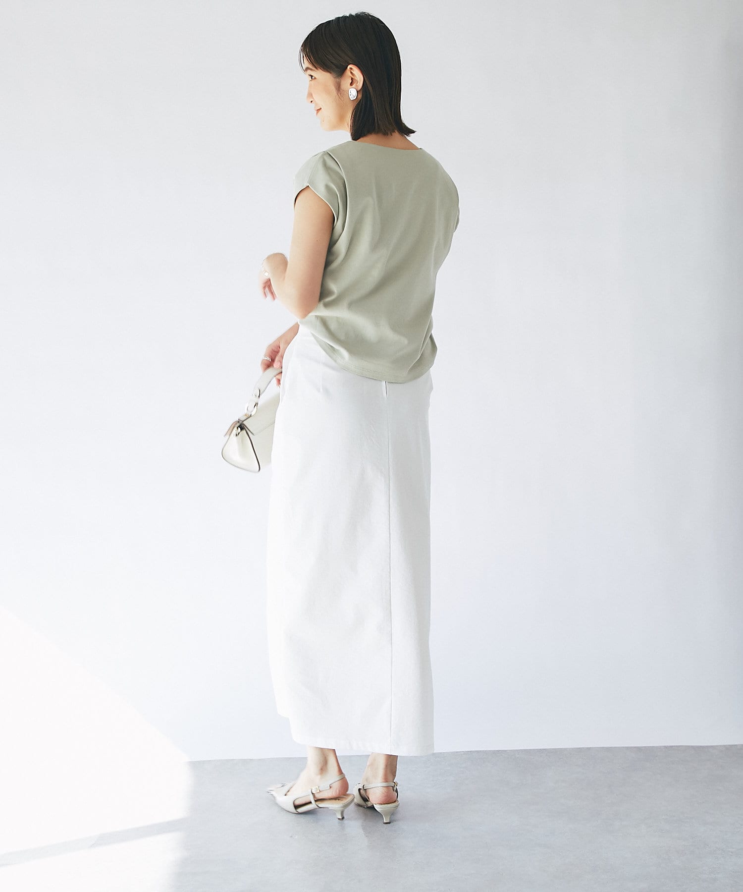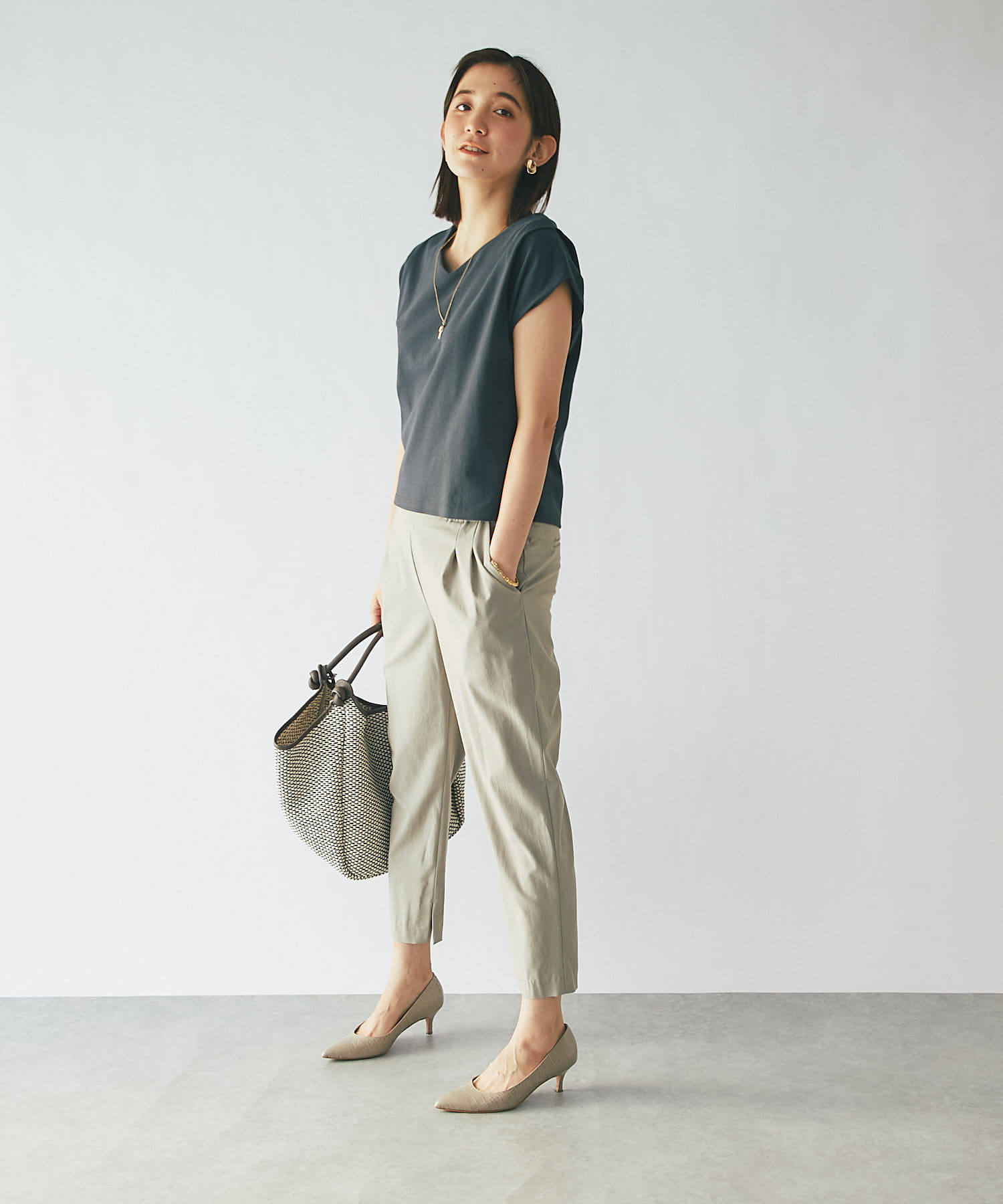 ⇒ノースリーブよりも肩にかかるデザインのため安心感があり、二の腕を華奢見えさせるシルエットになっております。