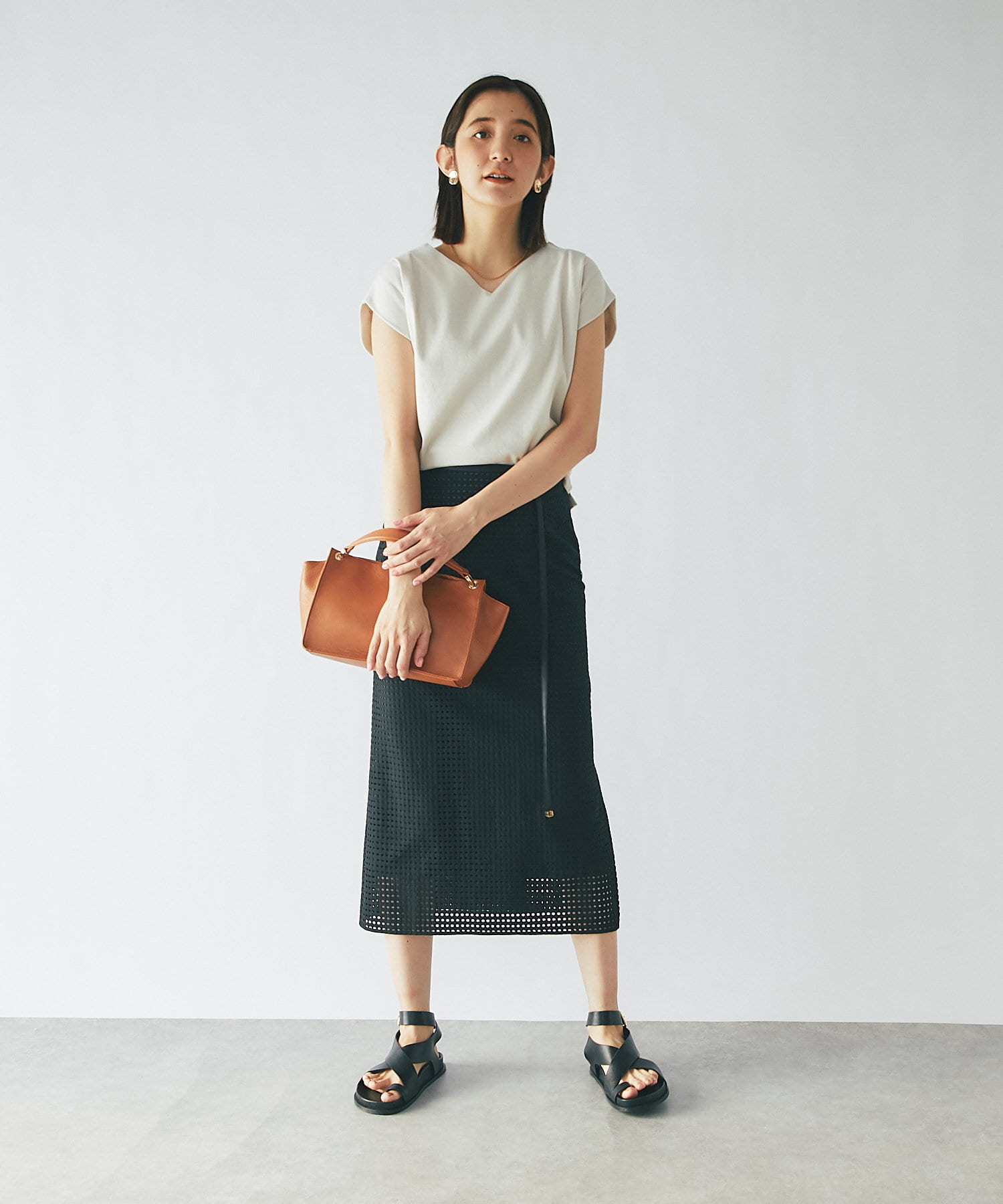 伸縮性のあるポンチ生地がインナーの透け感を拾いづらく、日常使いにもオススメのアイテム。