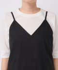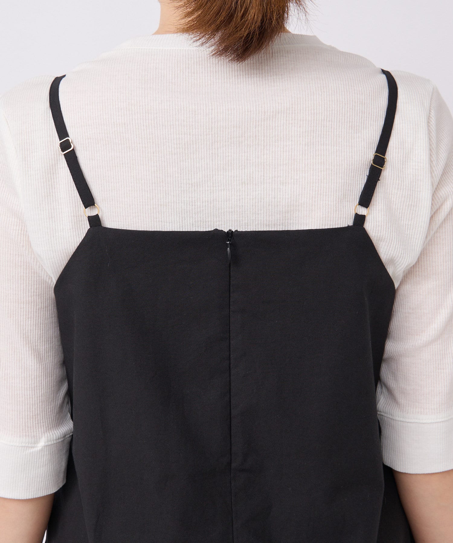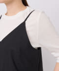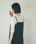 細いストラップはアジャスターで着丈の調節が可能。さらにポケット付き、手洗い可能と機能面も嬉しい1枚となっています。
