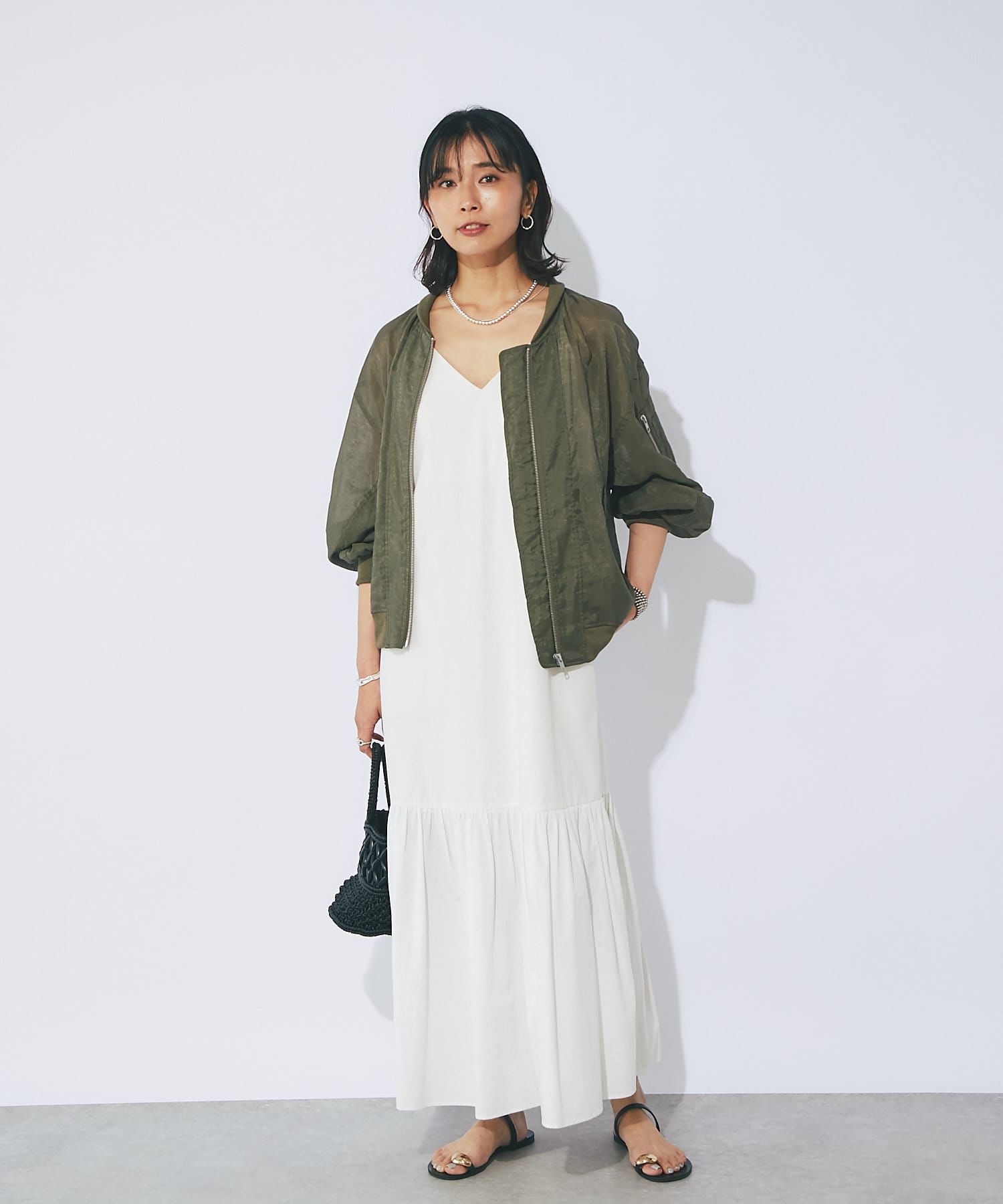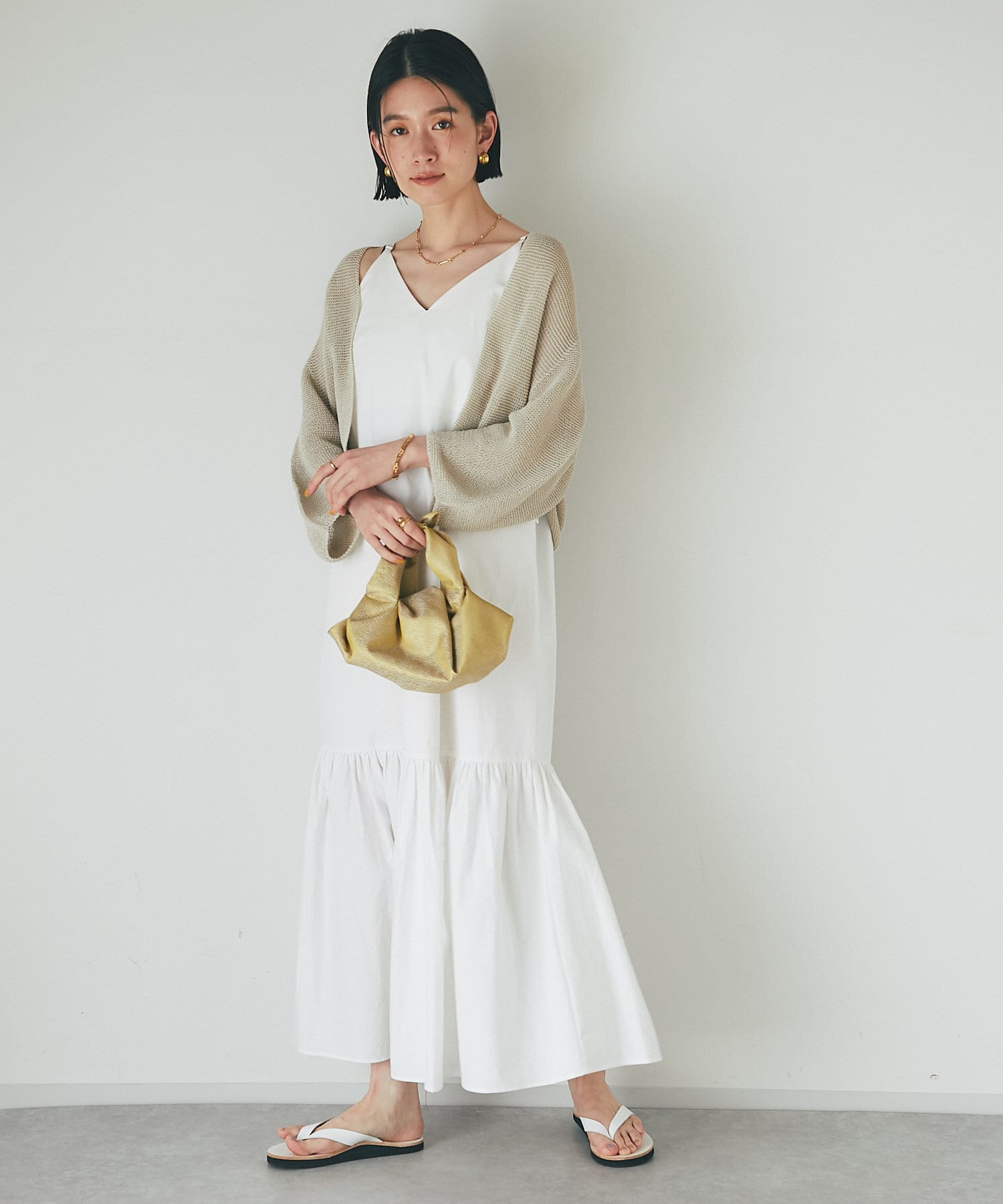 一枚でも着映えするワンピースは真夏のスタイルにぴったり。