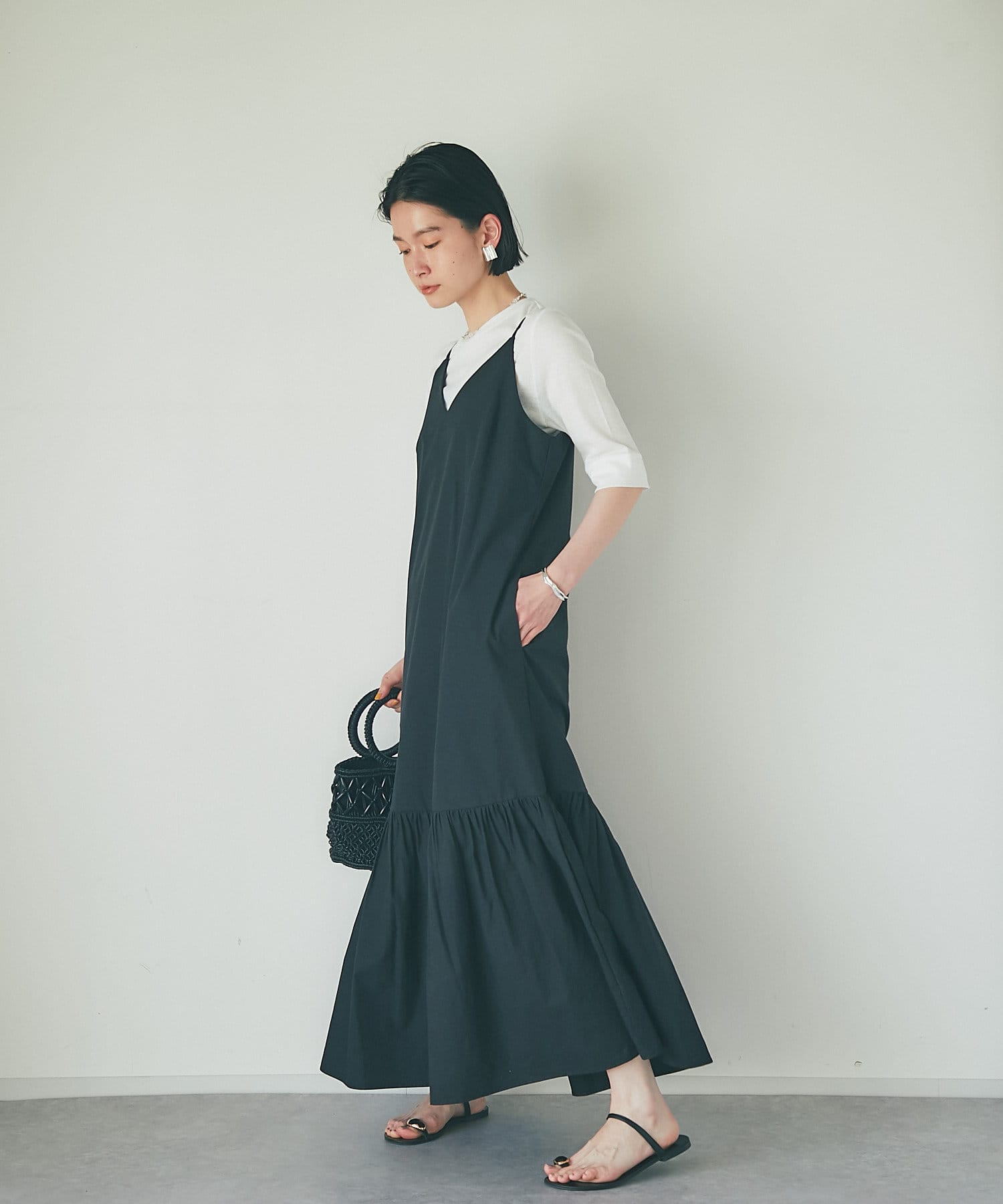 マーメイドシルエットが着映えするキャミソールワンピース。