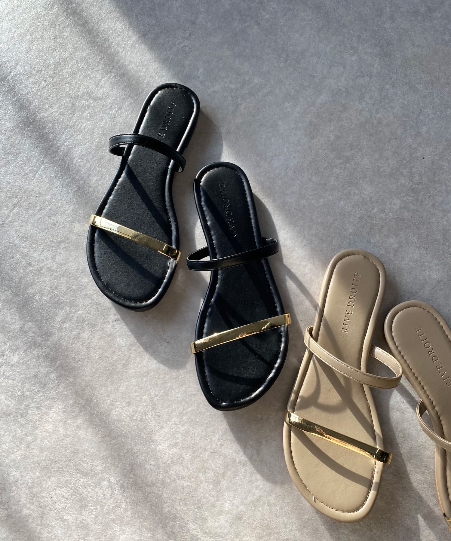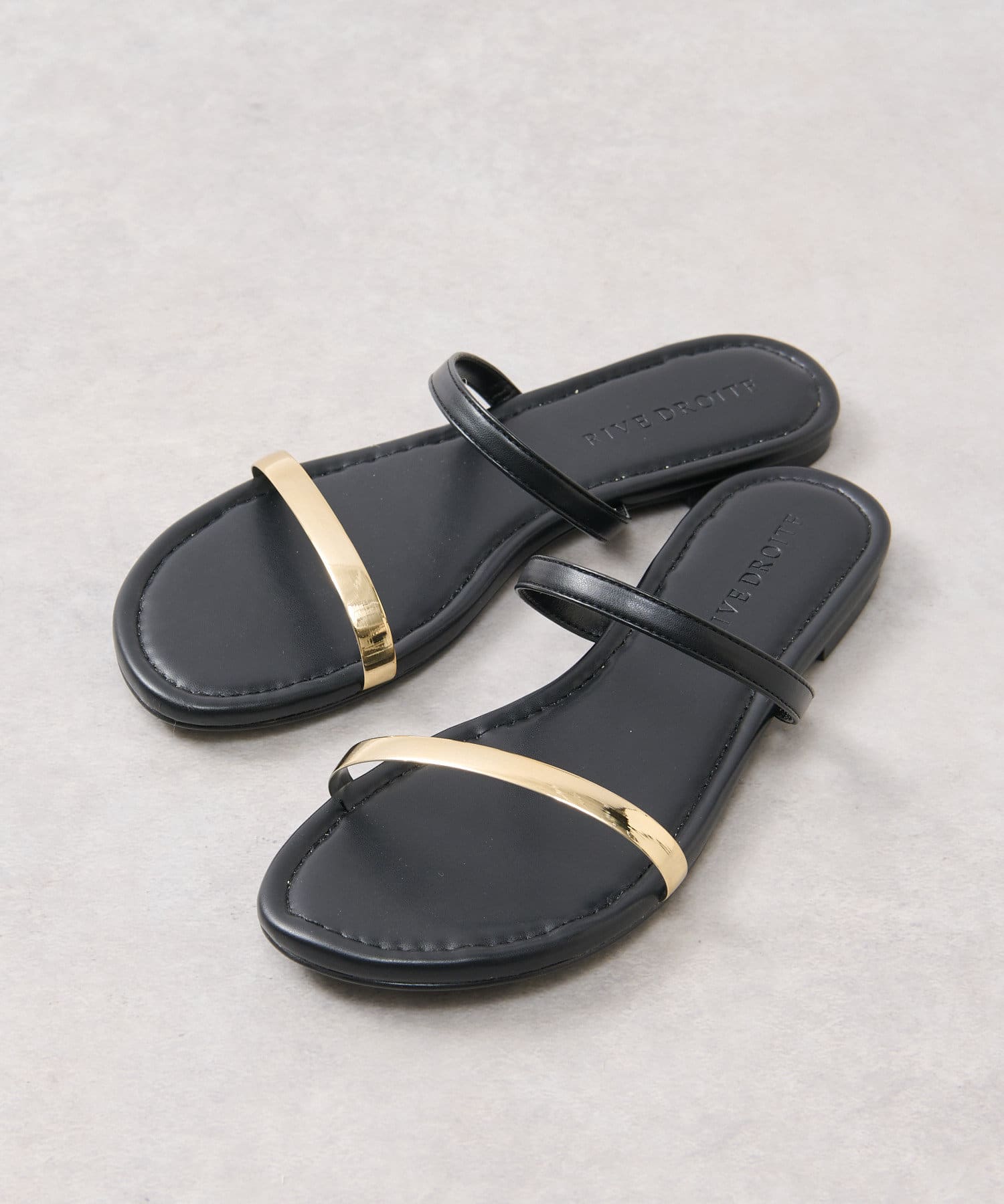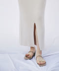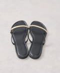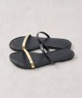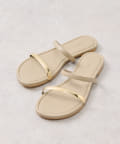 シンプルなデザインに足先のメタルラインが映えるサンダル。