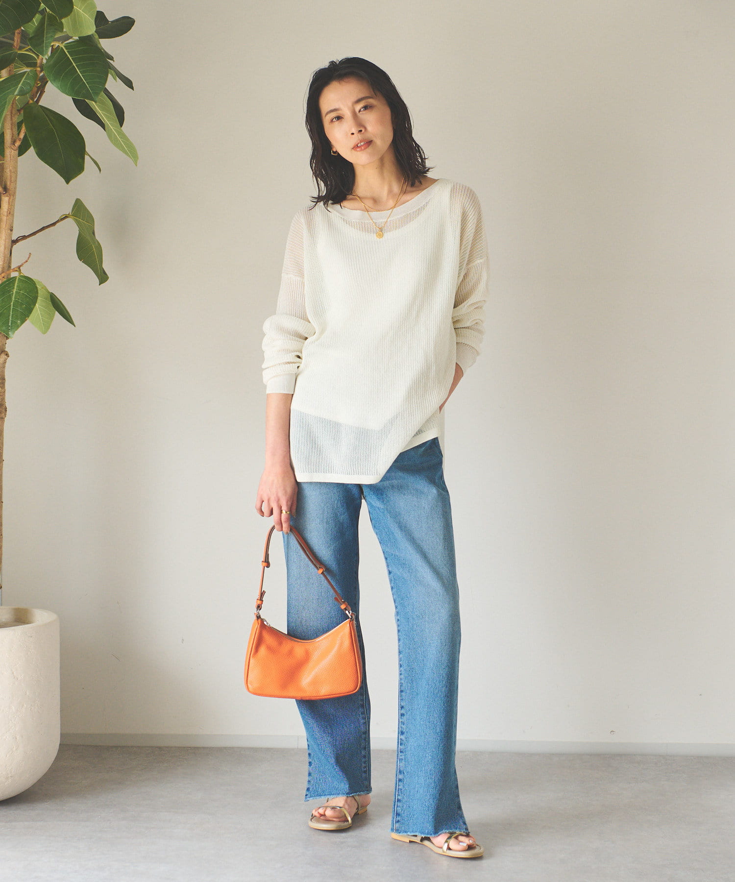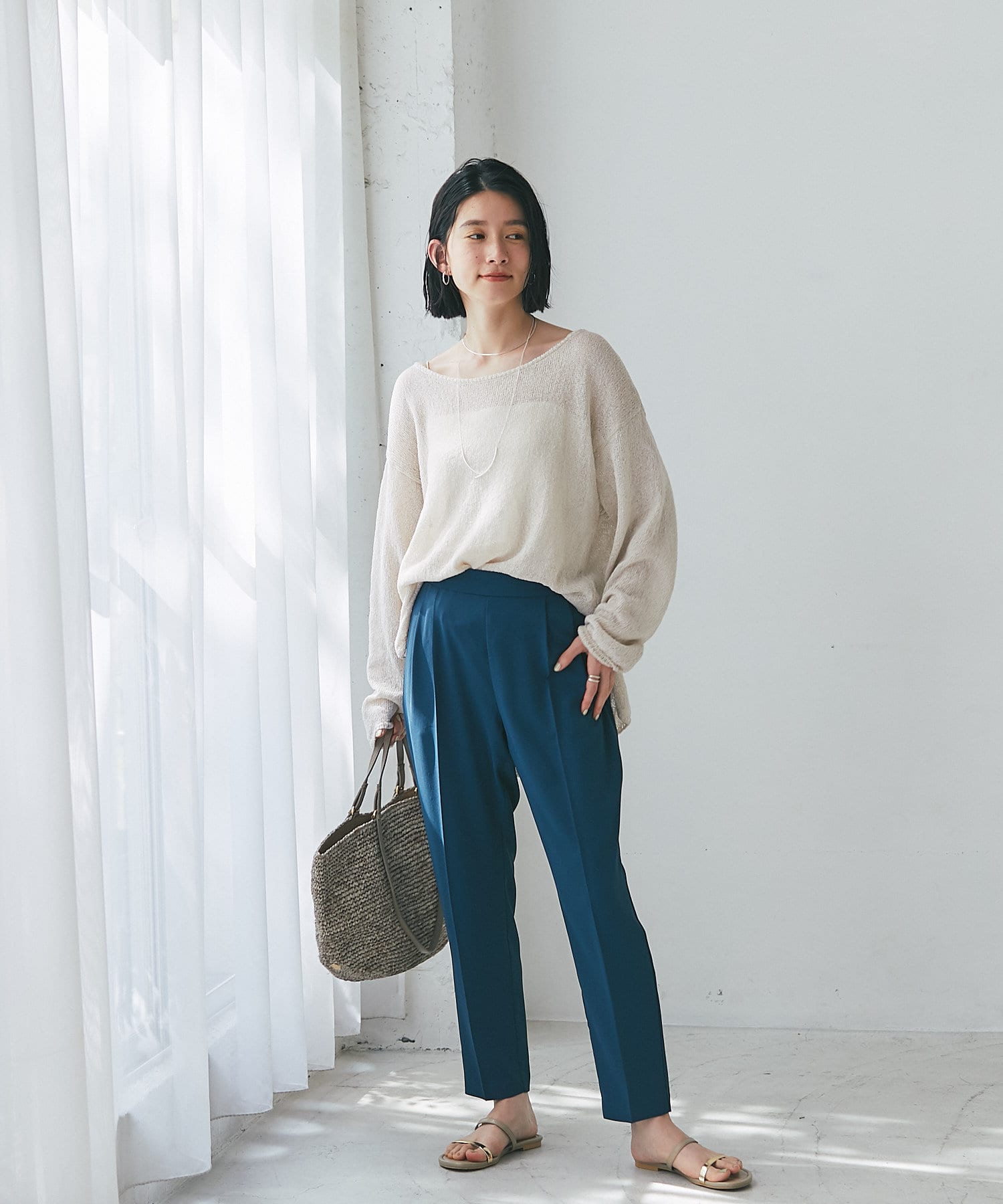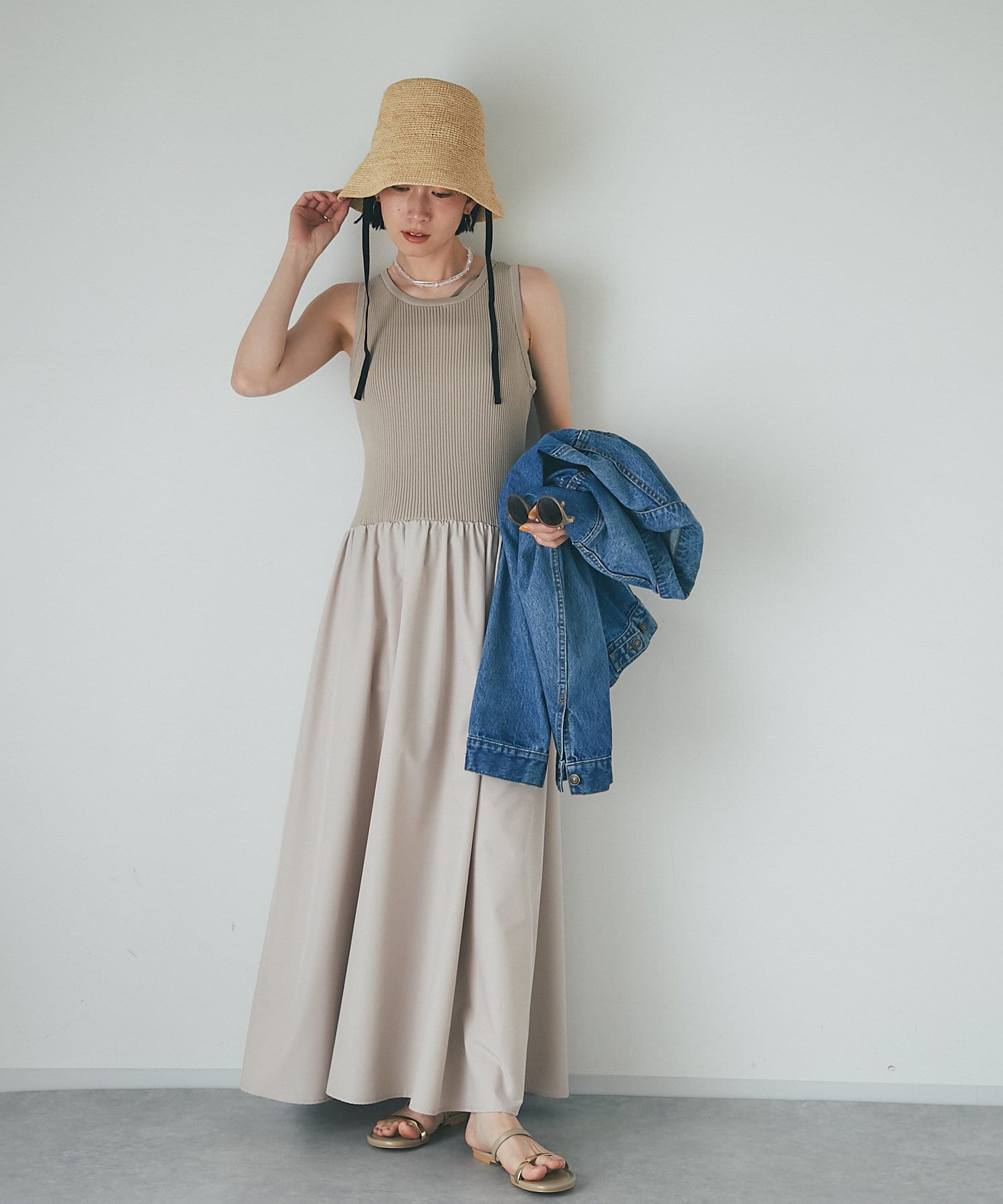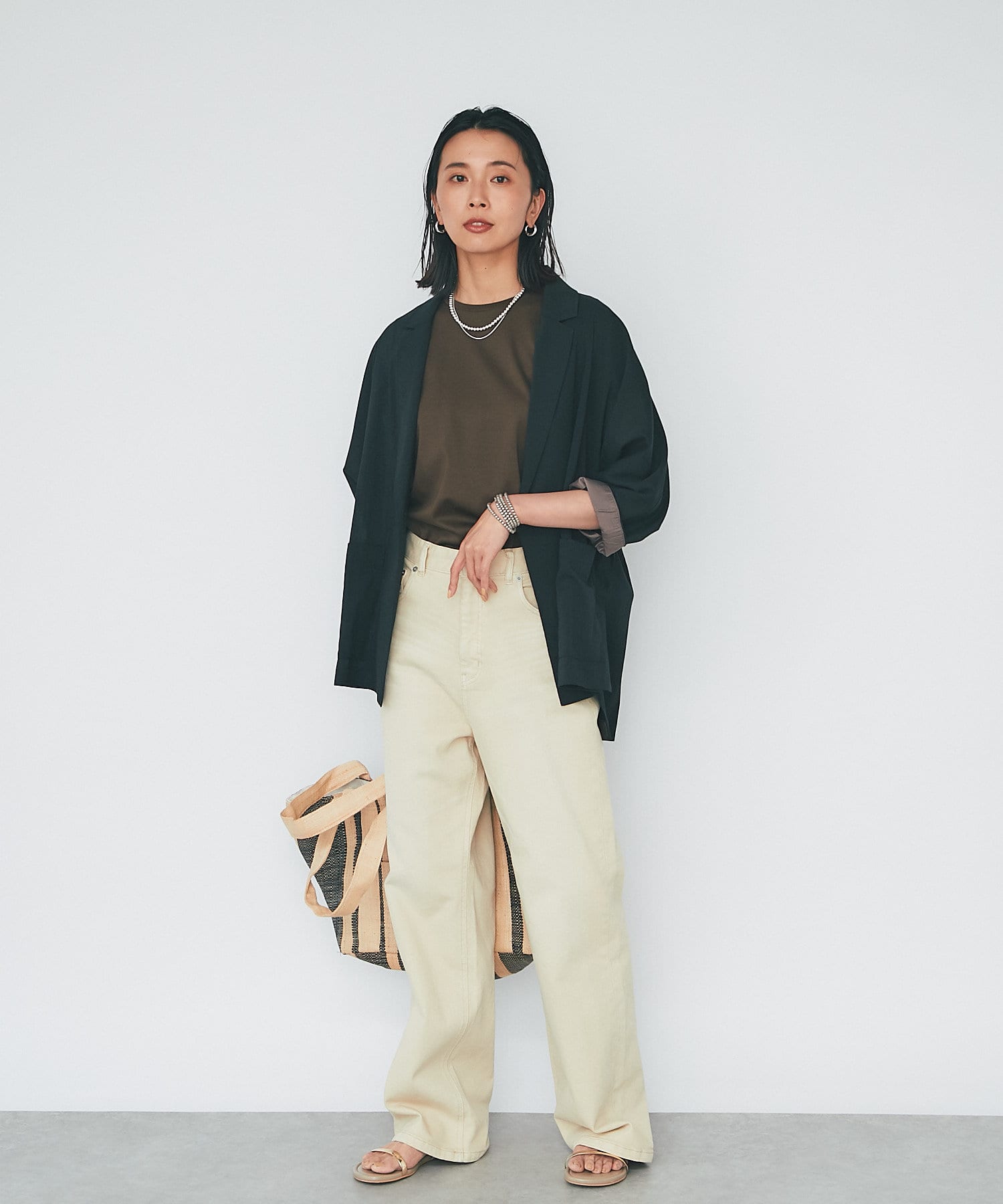 デニムなどのカジュアルスタイルにももちろん、鮮やかなカラーワンピースと合わせたリゾートスタイルにも馴染む使い勝手のいいアイテムとなっております。
