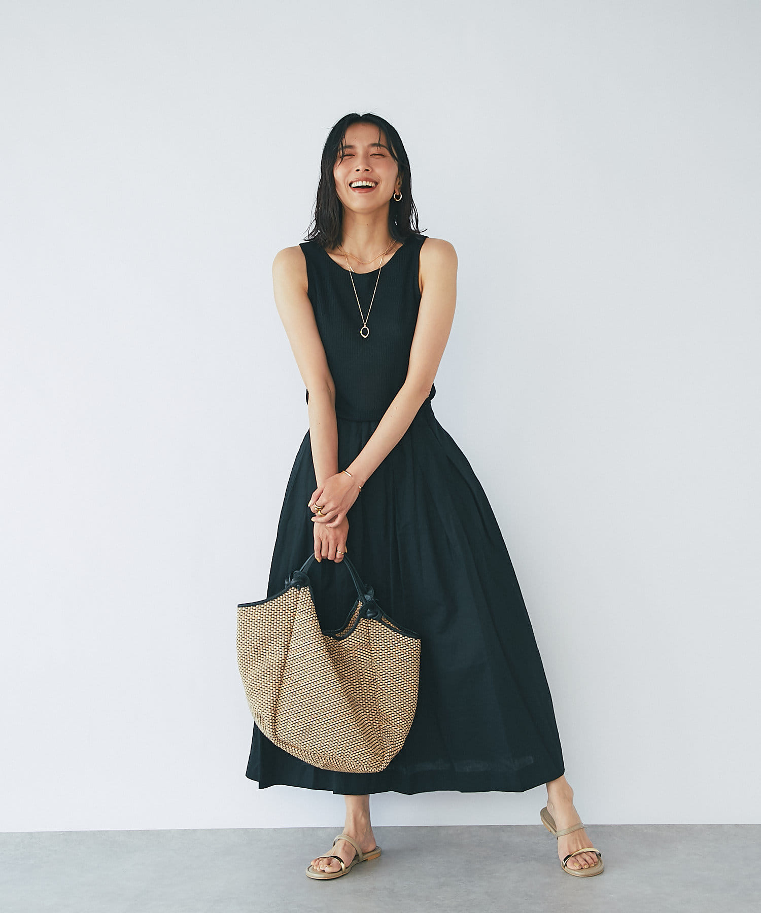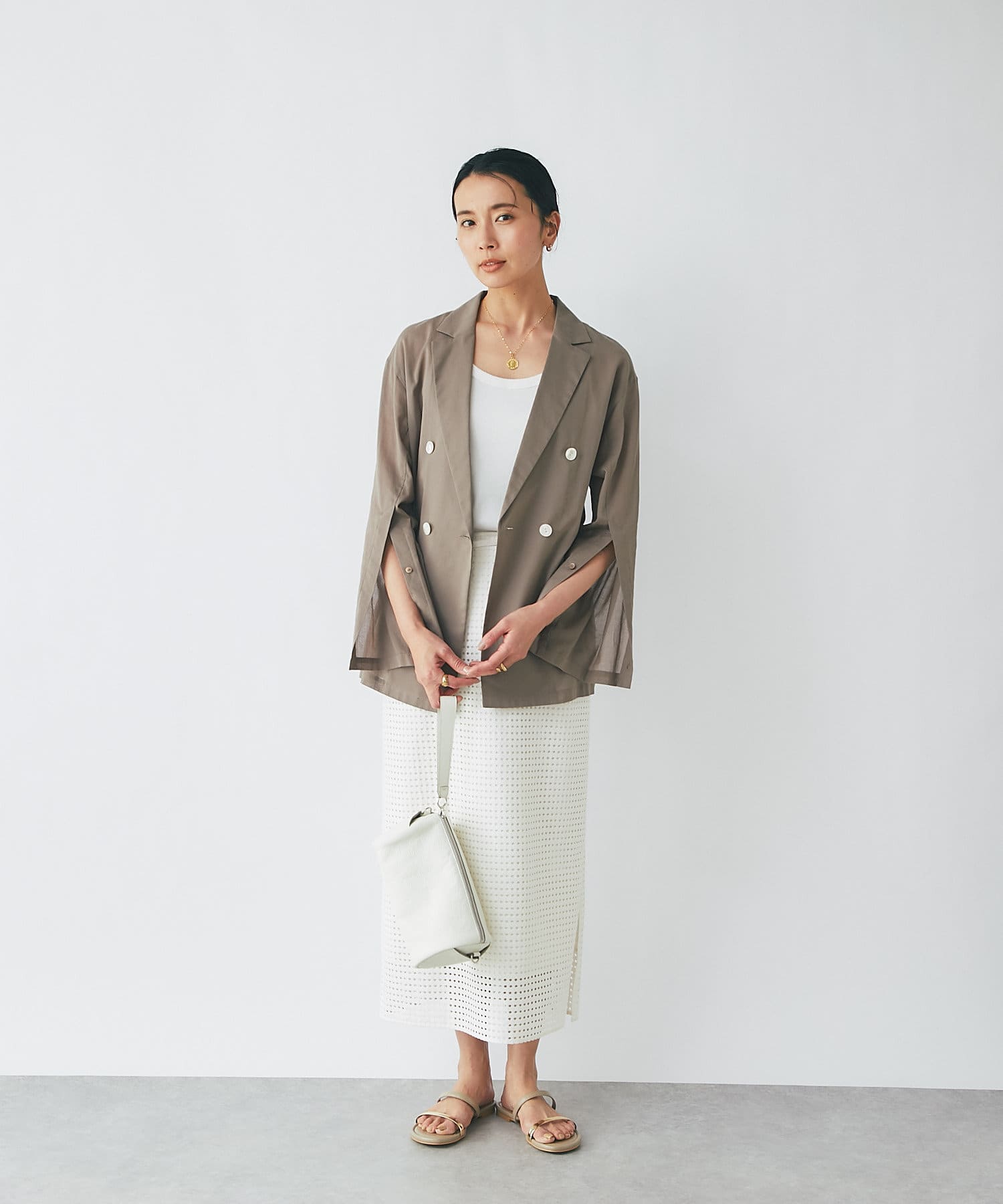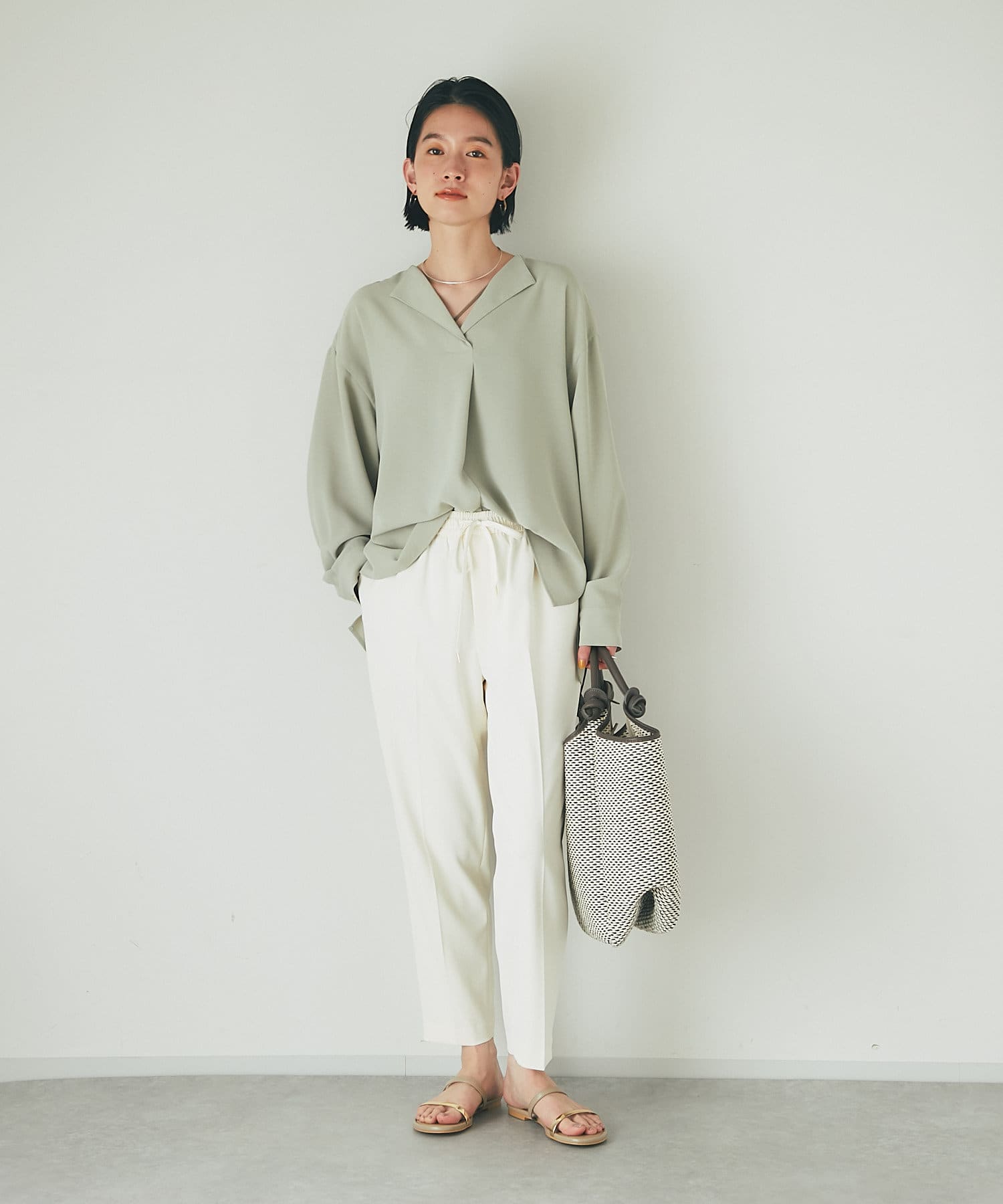 デニムなどのカジュアルスタイルにももちろん、鮮やかなカラーワンピースと合わせたリゾートスタイルにも馴染む使い勝手のいいアイテムとなっております。