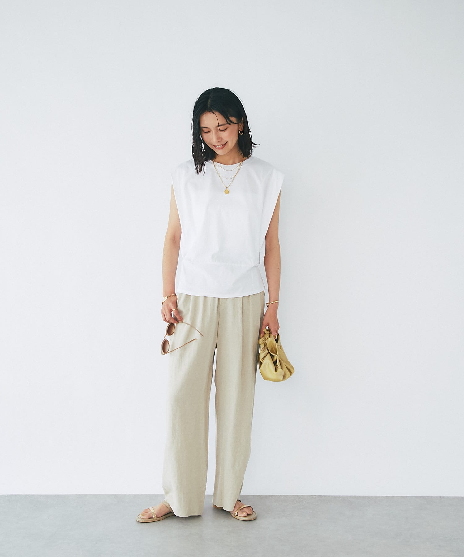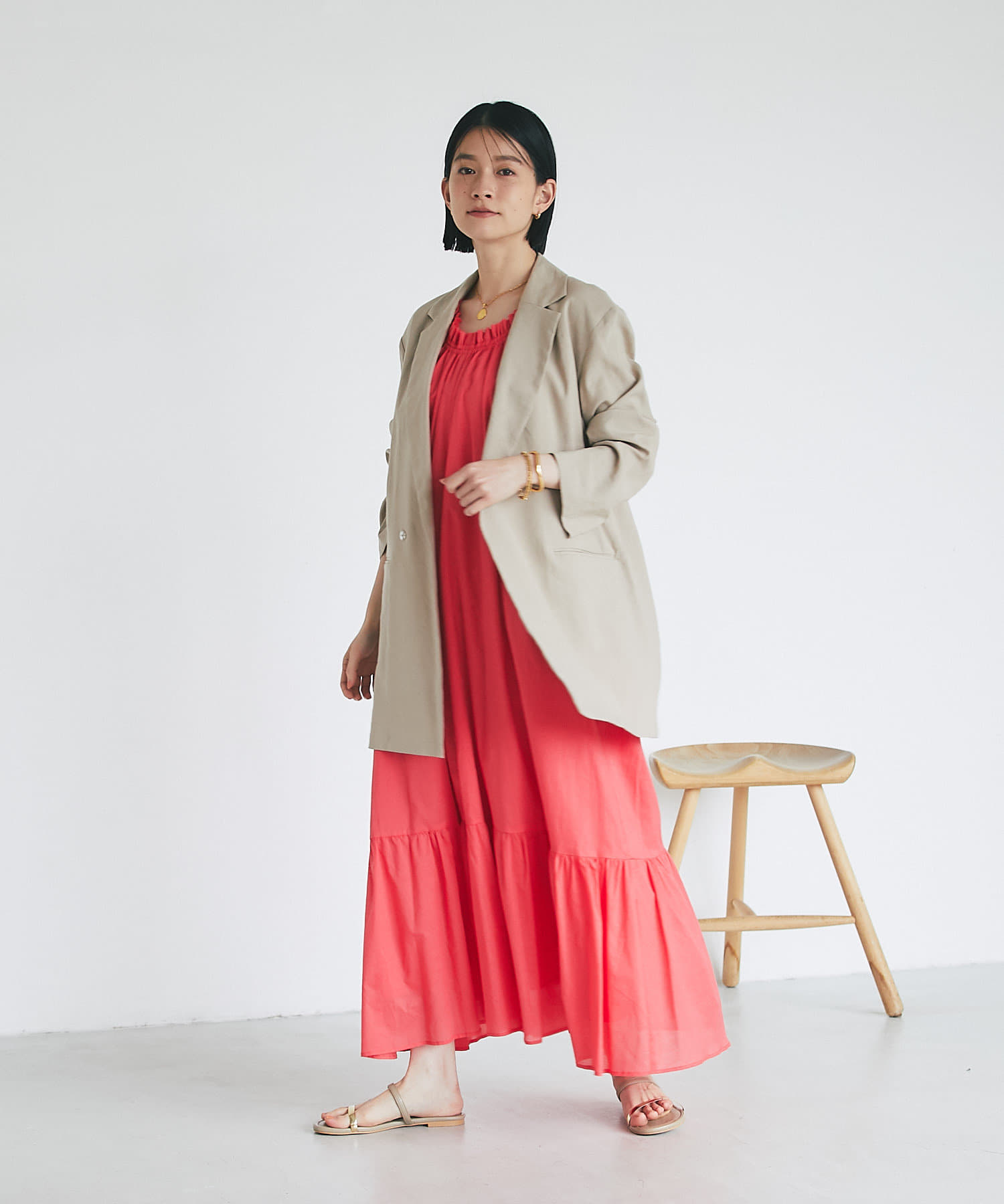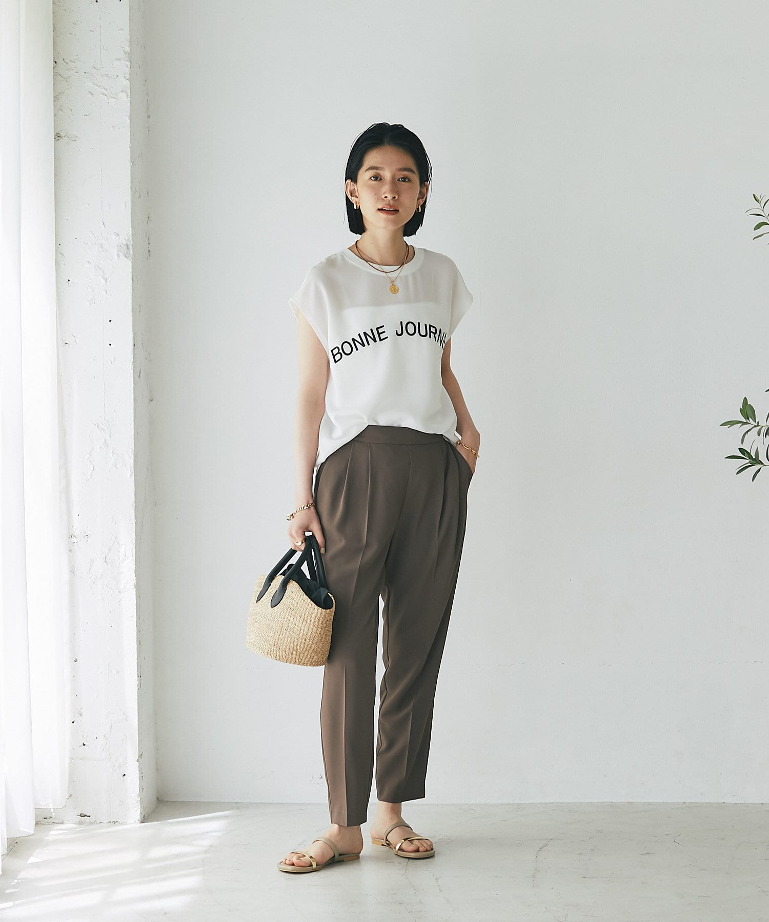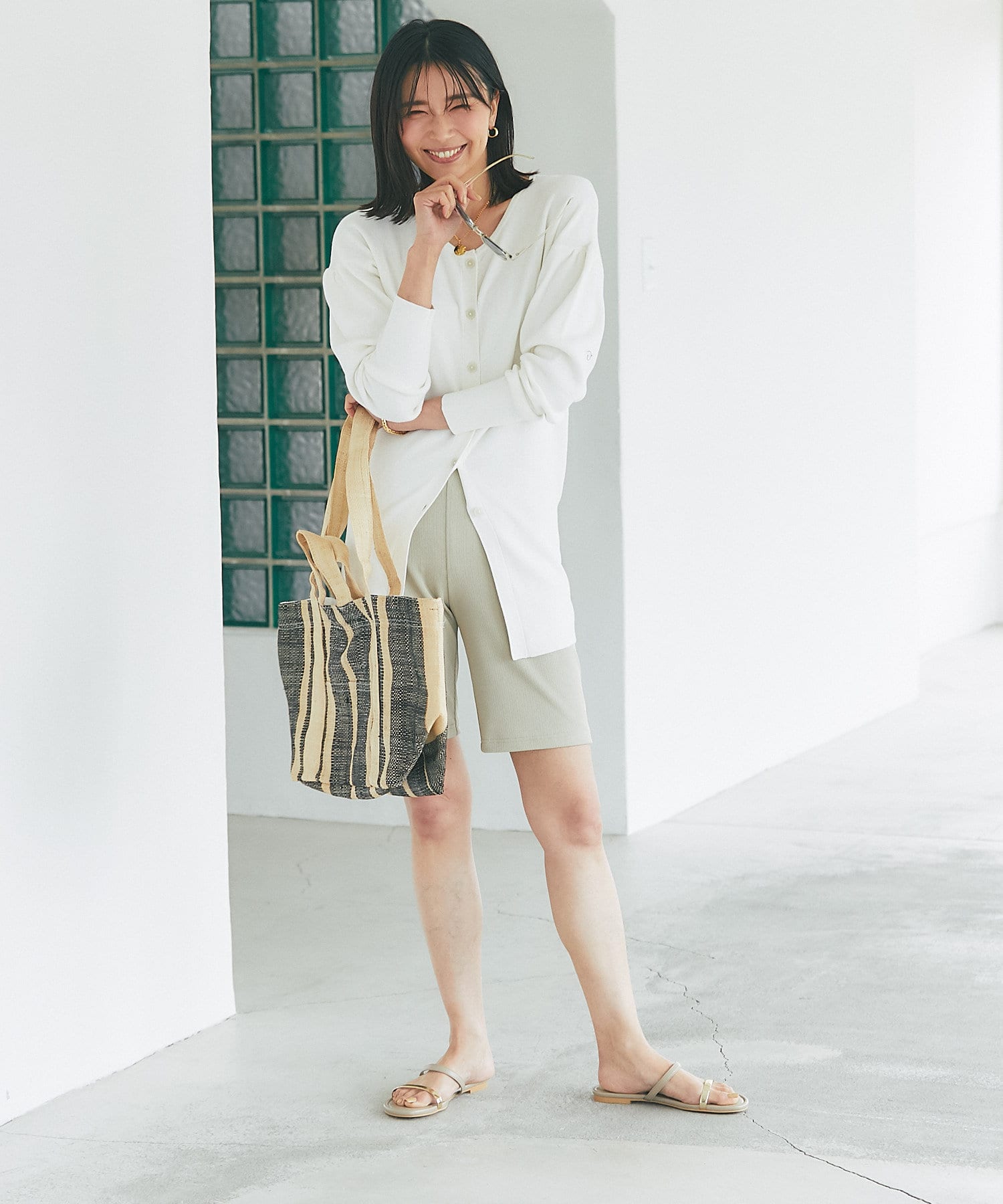 デニムなどのカジュアルスタイルにももちろん、鮮やかなカラーワンピースと合わせたリゾートスタイルにも馴染む使い勝手のいいアイテムとなっております。