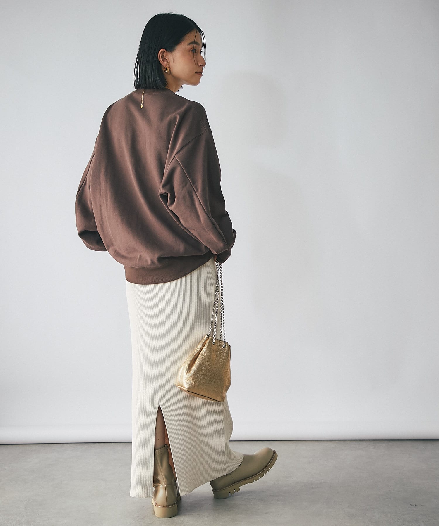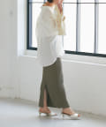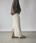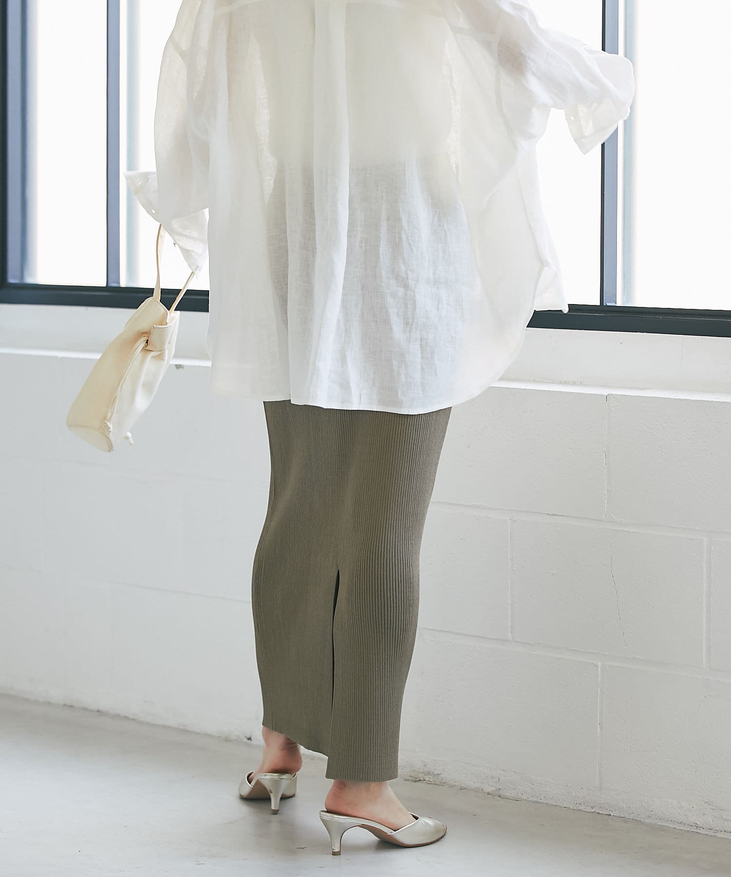 膝位置までのスリット入りで足捌きも良く、前後どちらでも着回し可能なのも嬉しいポイント。