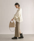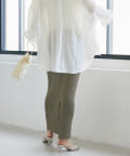 すっきりしたシルエットのためトップスはゆったりとしたオーバーサイズシャツやカットソーを合わせてもバランスよくまとまります。
