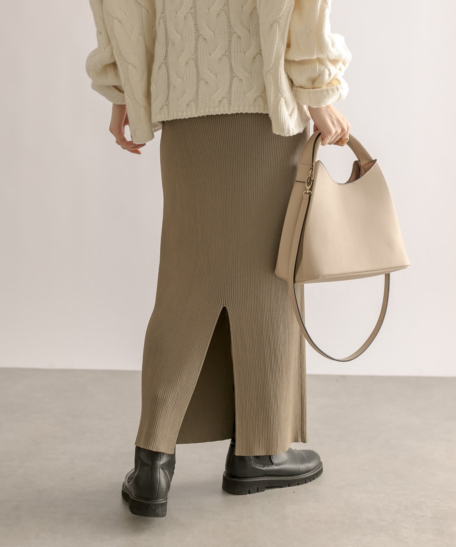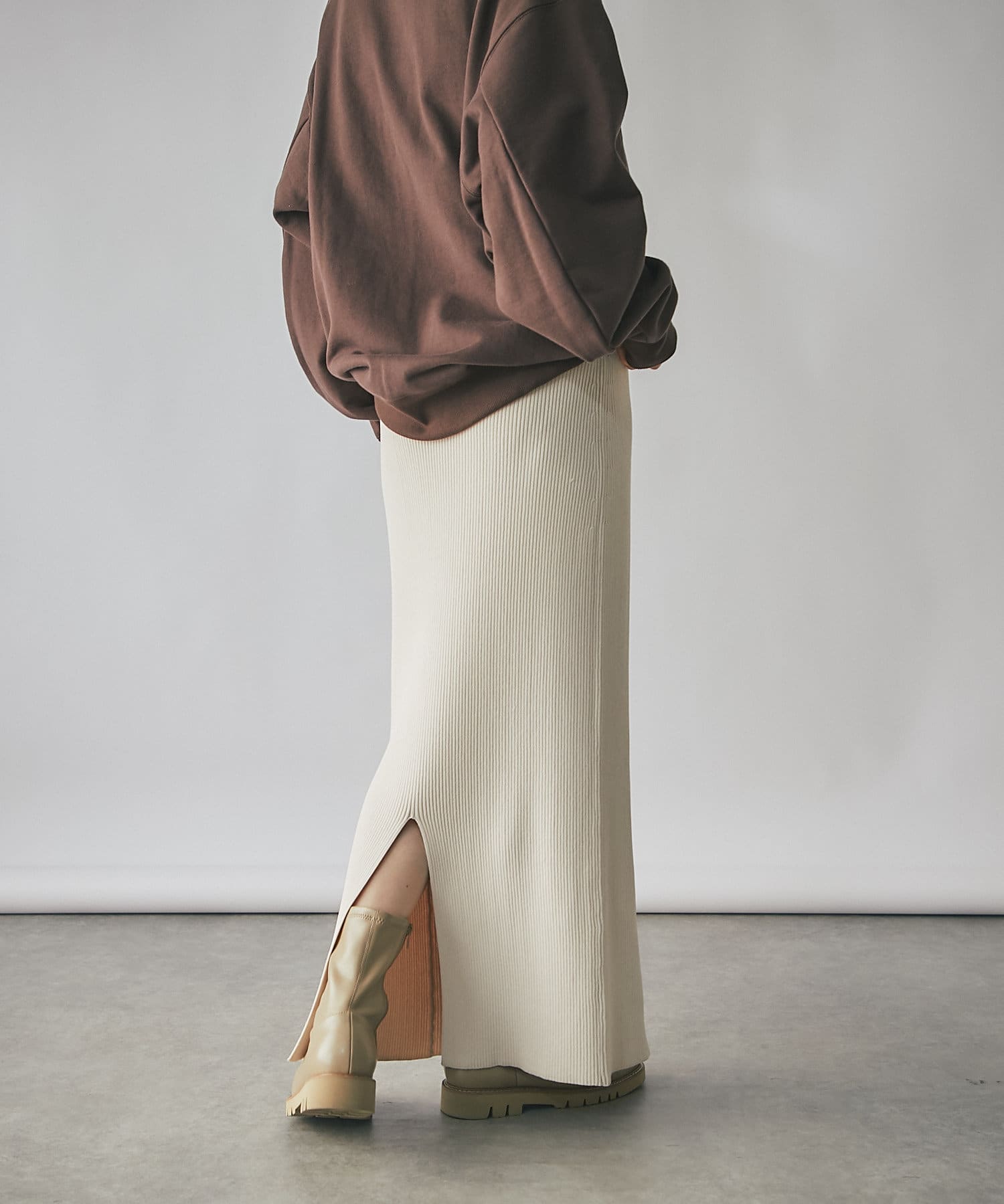 ストレッチ抜群で着心地の良いリブ編みスカート。