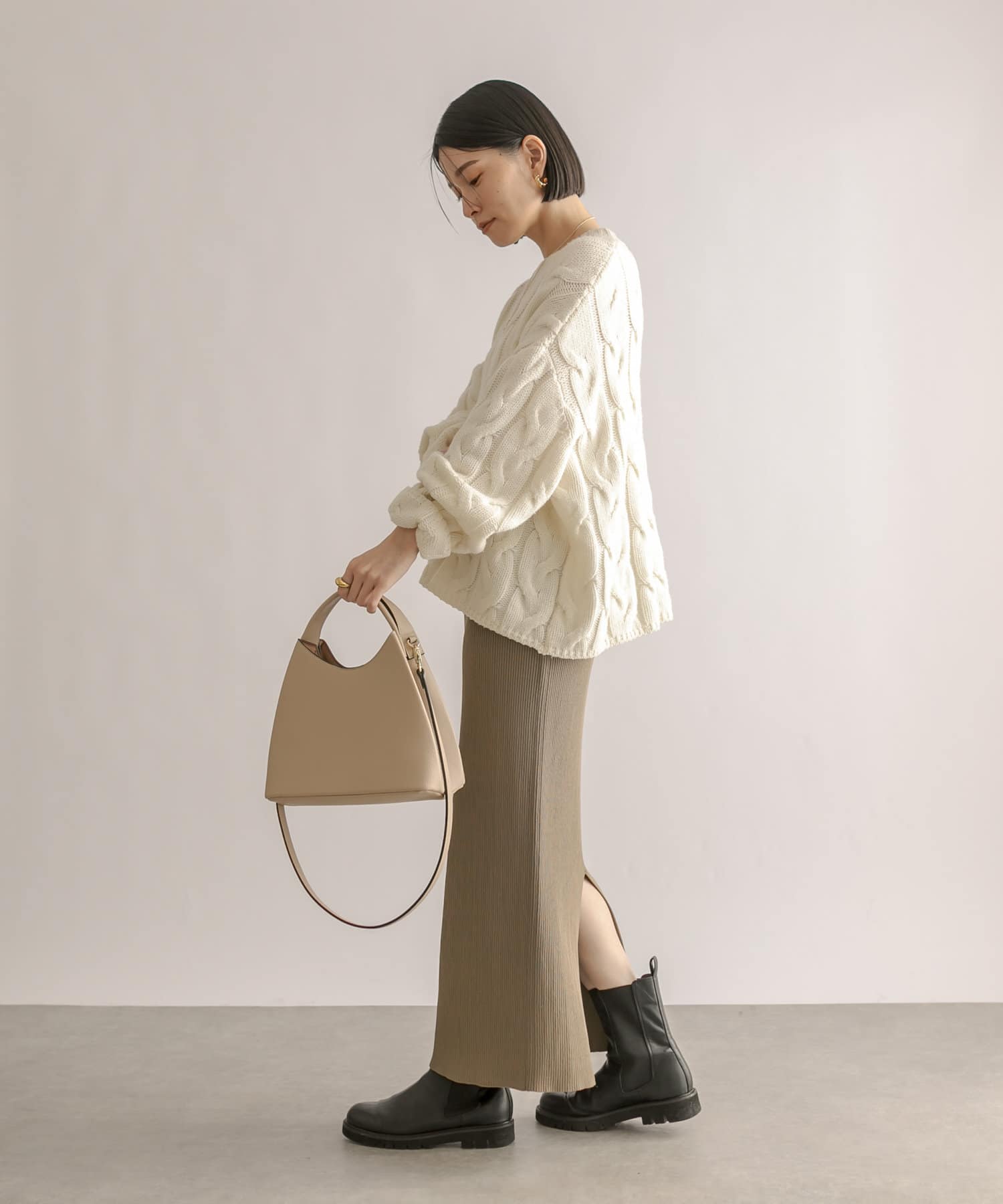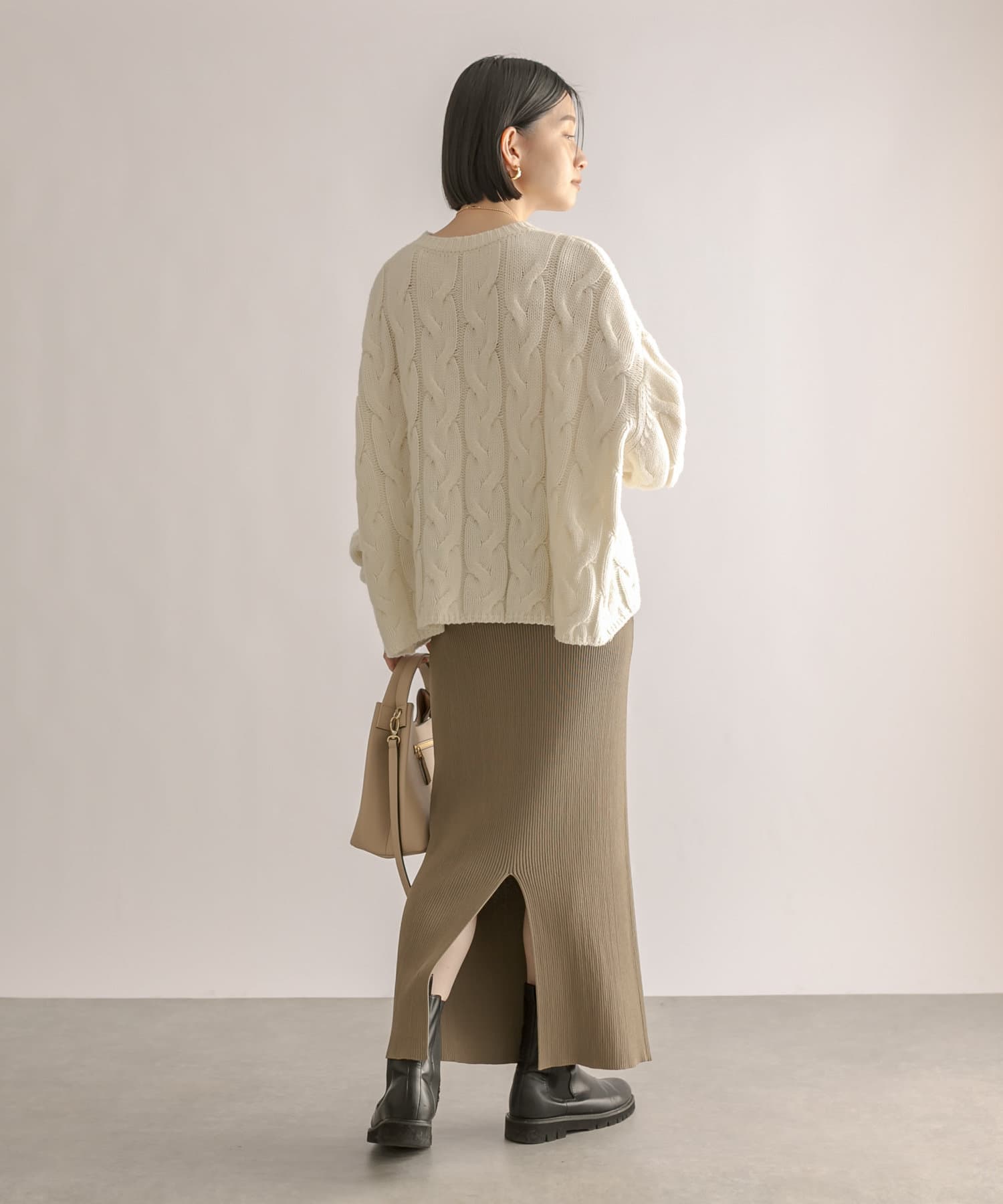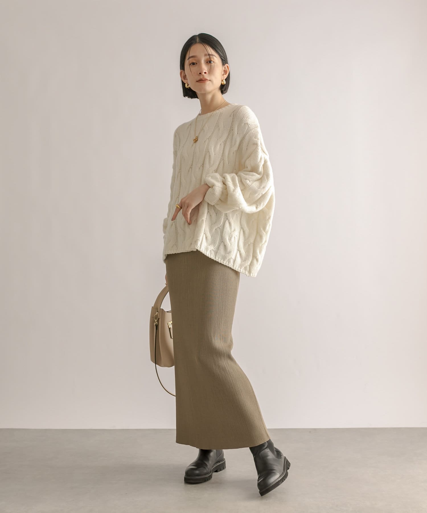 程よくフィットするもののラインを拾いすぎない絶妙なタイトスカートなので、骨格タイプ選ばす着用できると思います。
