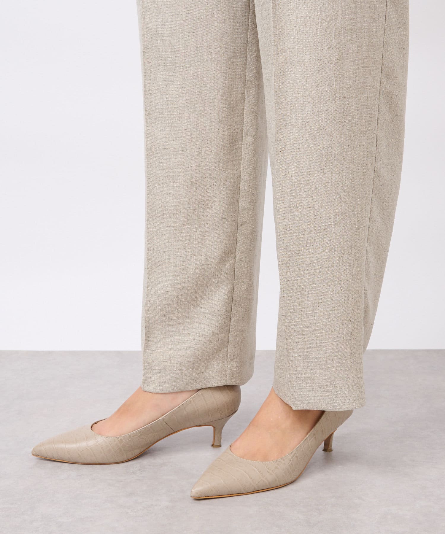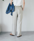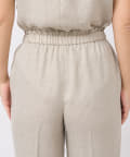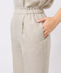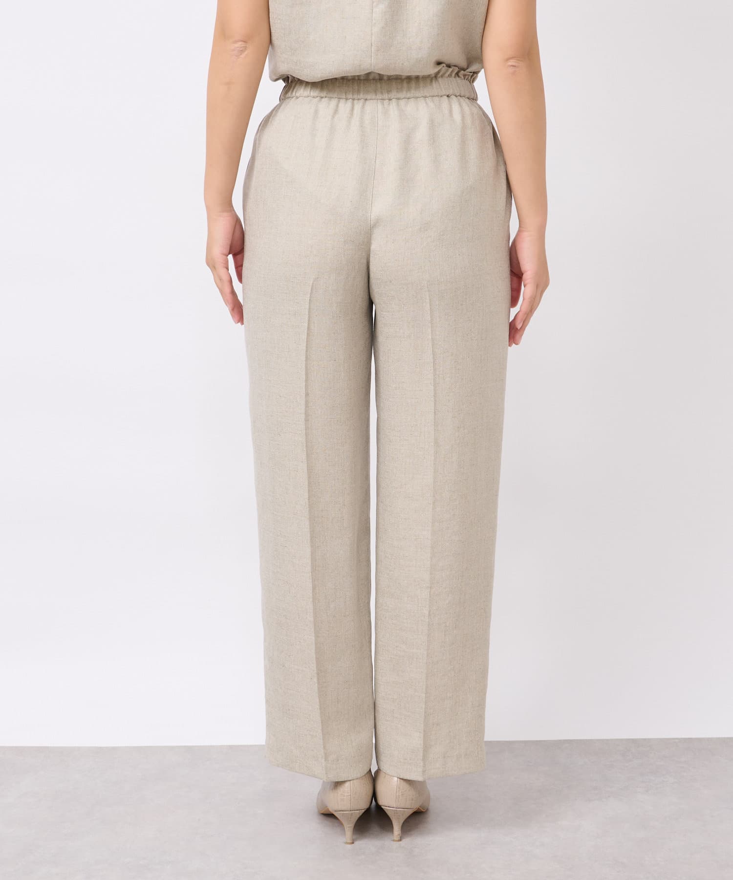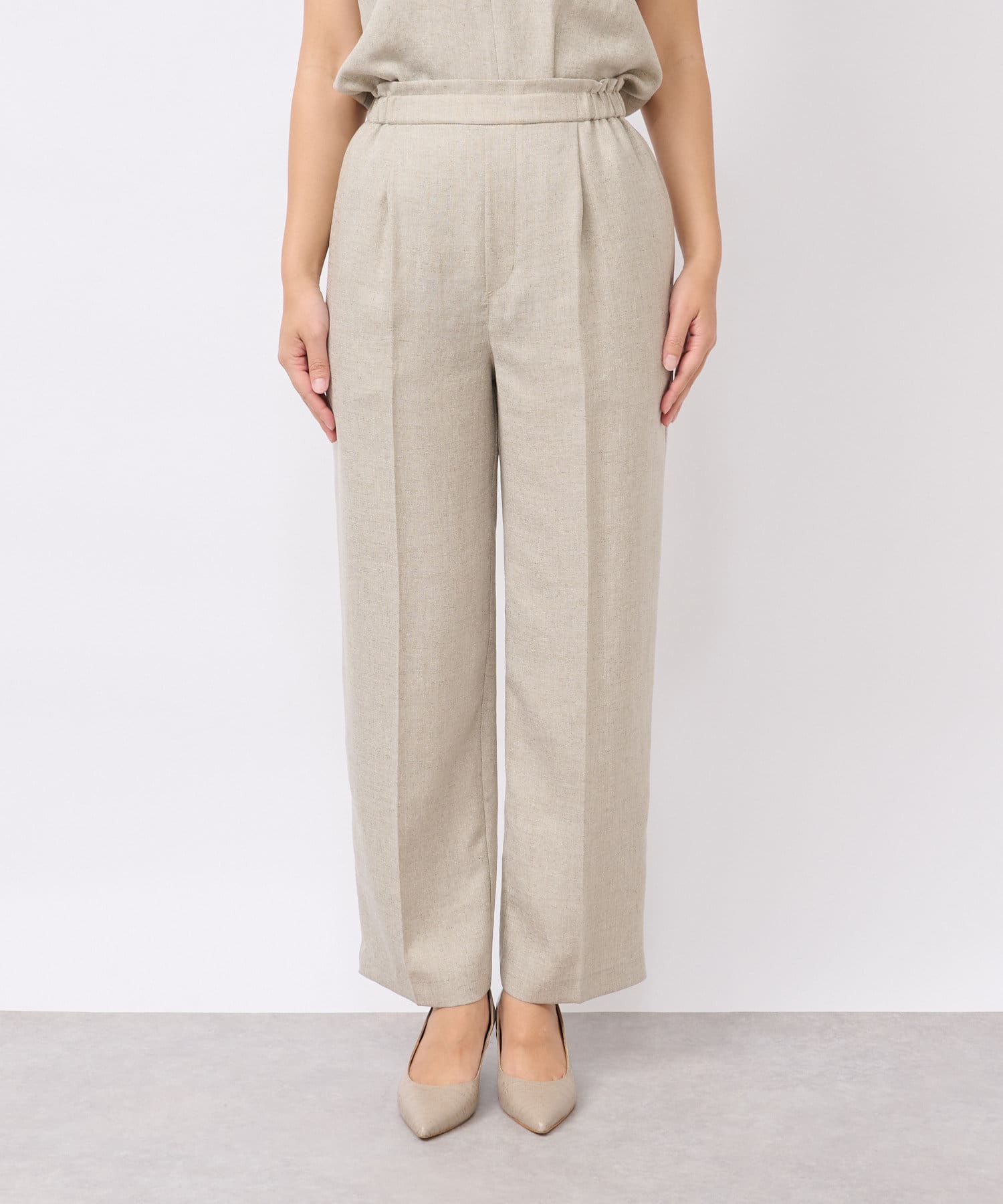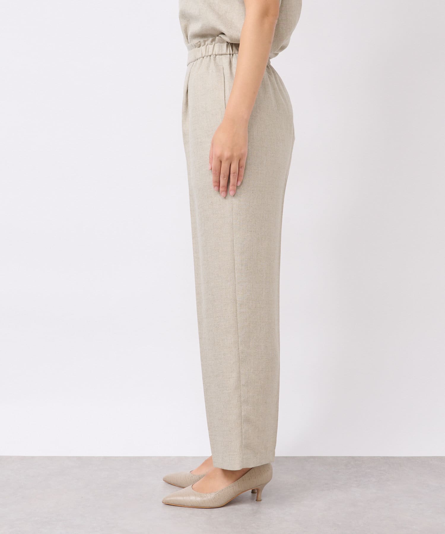 同素材で展開しているリネンライクフレンチスリーブとのセットアップコーディネートがおすすめ。ゆったりとしているのにラフすぎず、上品に着ていただけるのでお仕事や特別な日にも着ていただけます。