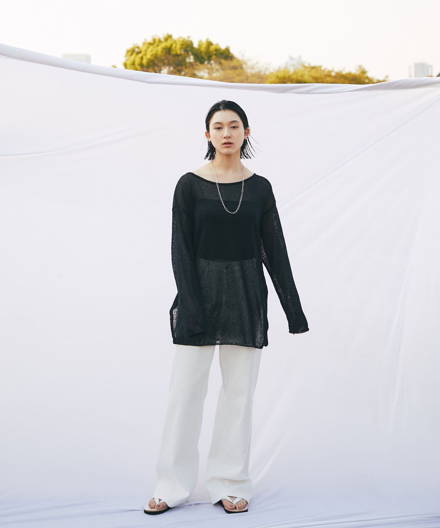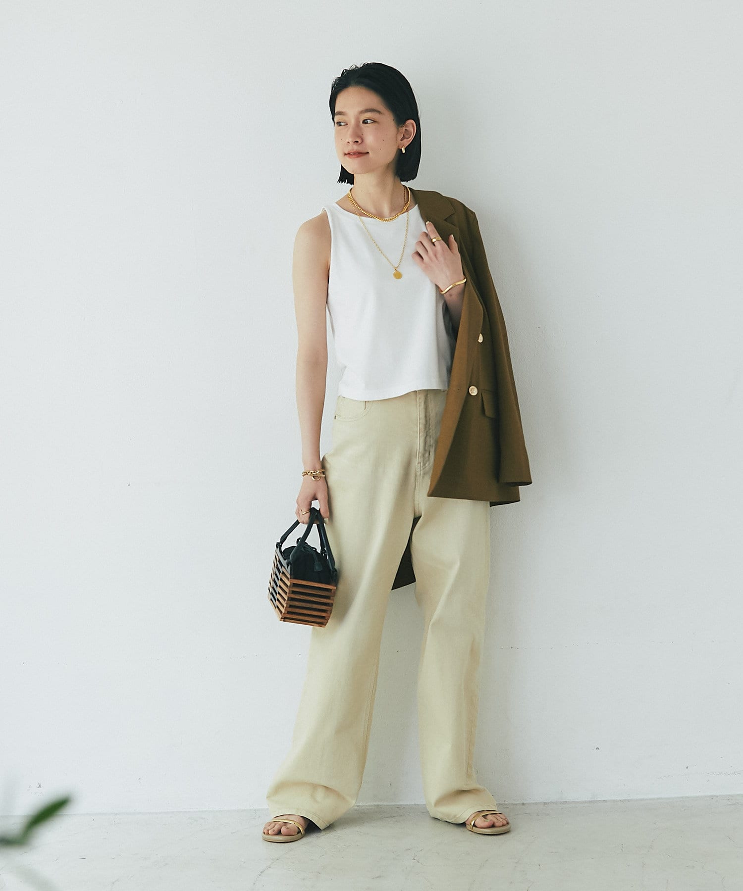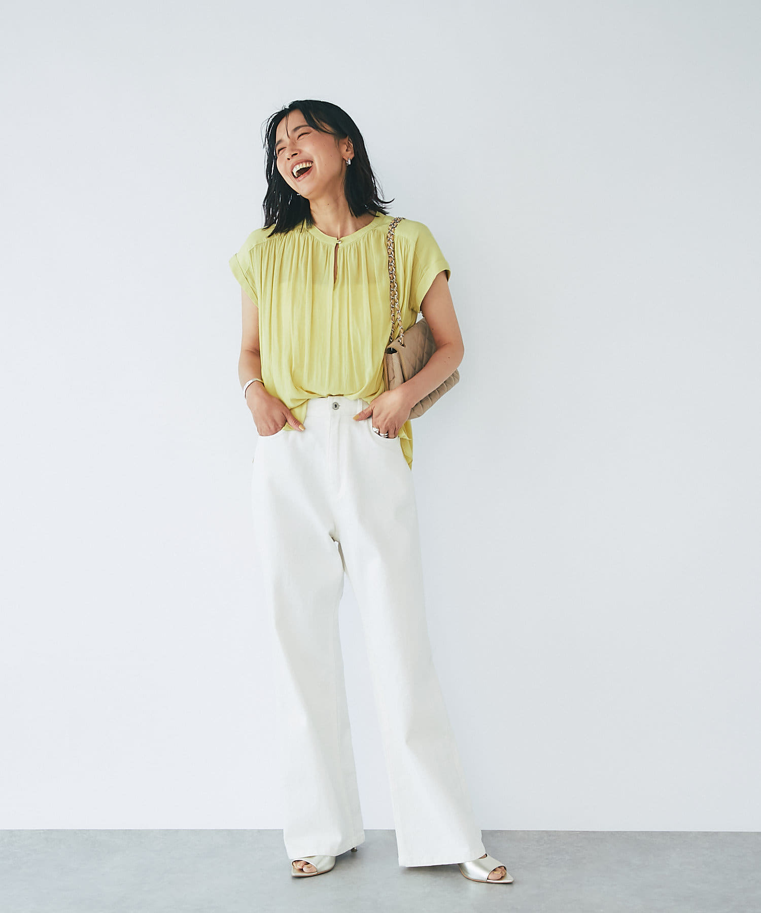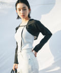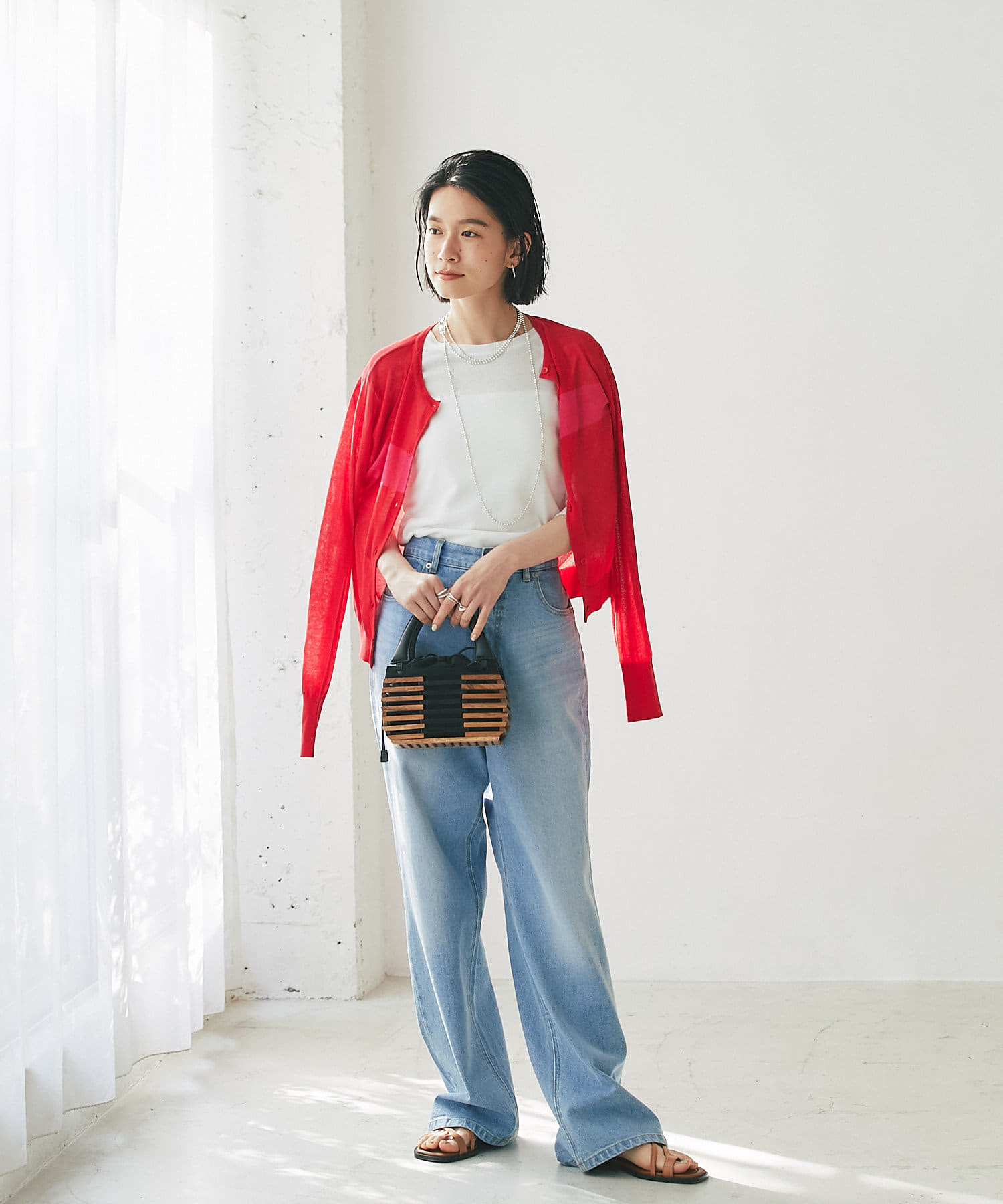 コンパクトなシルエットや、今年らしい透け感のあるシアーニットを合わせていただくのも大人のこなれ感が出て素敵です。