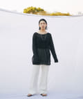程よく厚みのある生地感で、ホワイトでも透け感を気にせず着用可能です。
