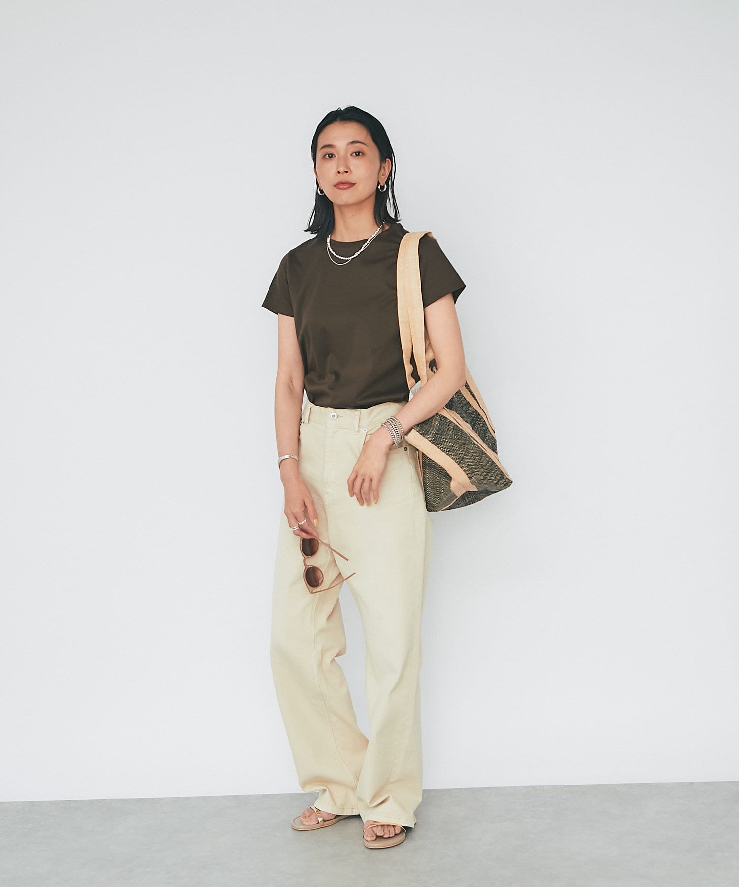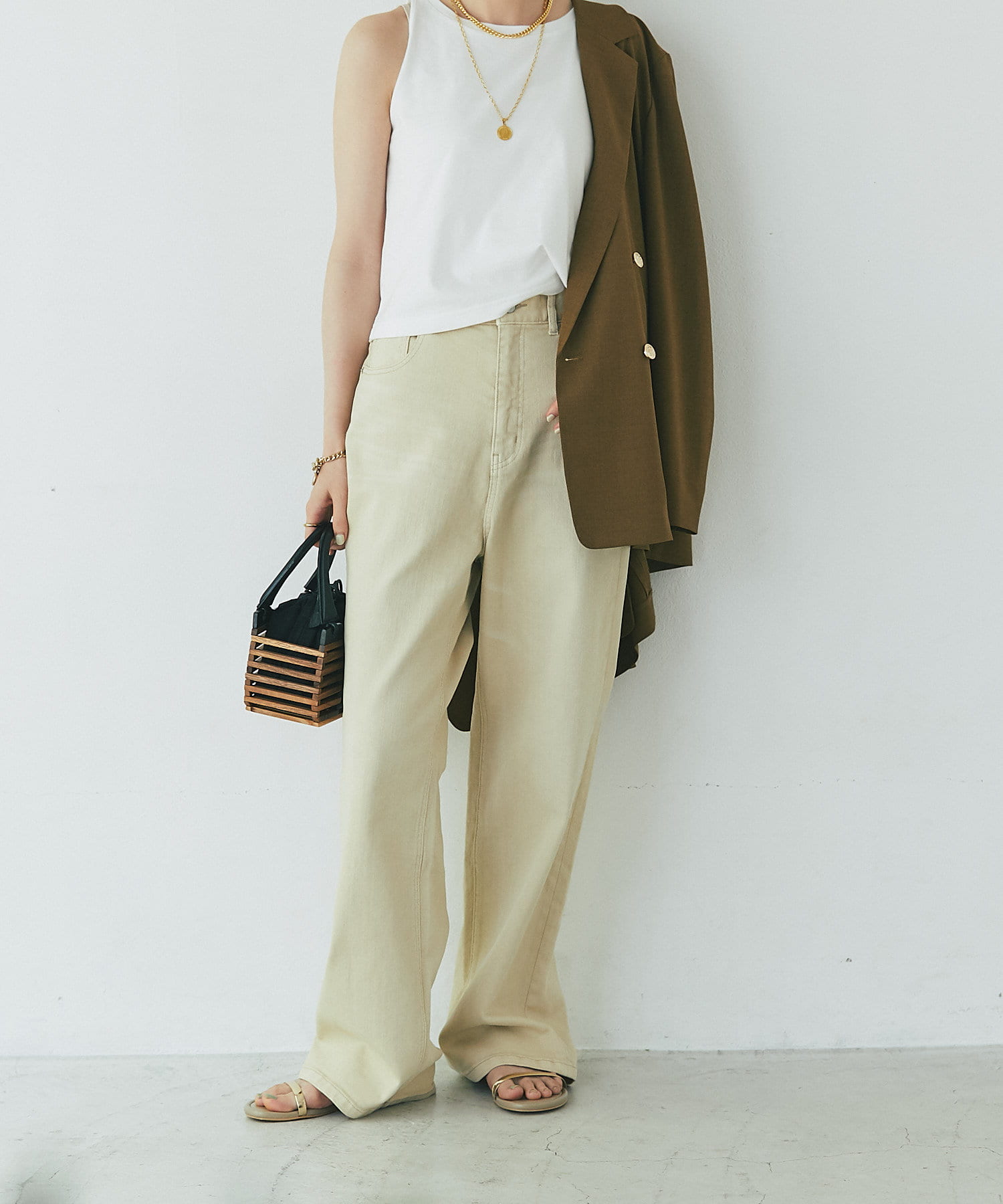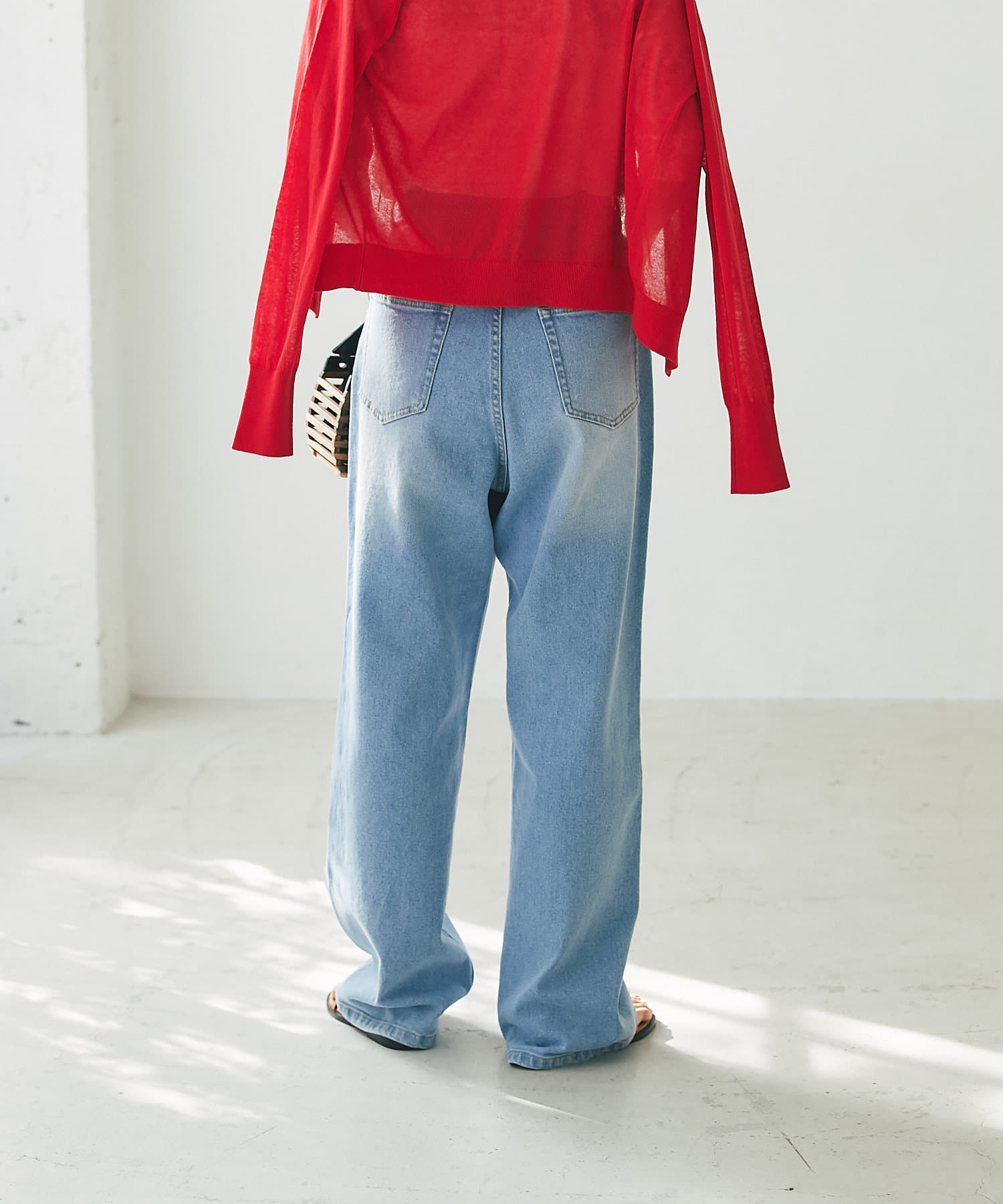 ストレートよりもやや広めの裾で抜け感を出した効果でボリュームがタテに落ちるので、ルーズなルックスながらスッキリ履いていただけます。