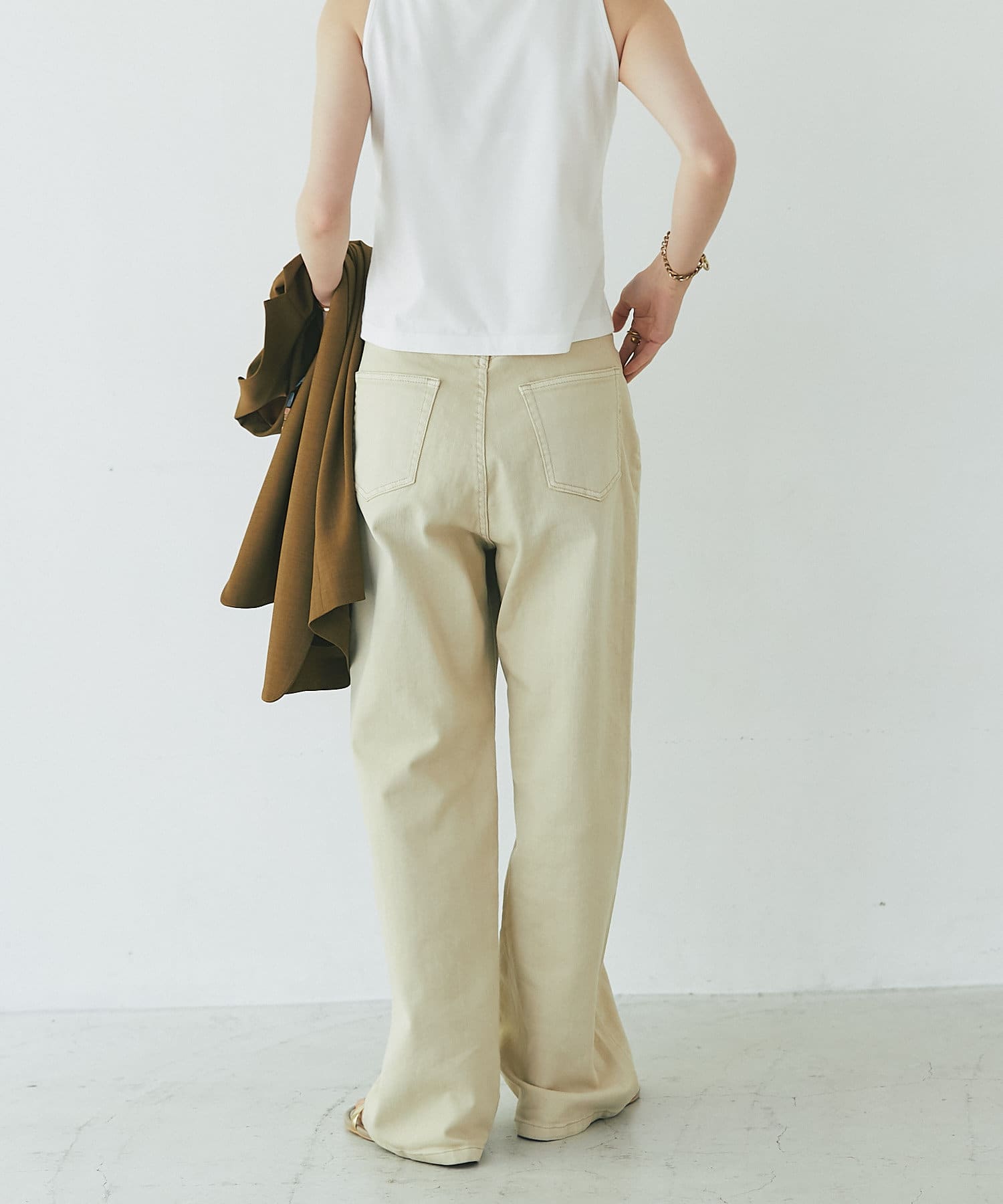 ヒップを包み込む安心感のある股上と、程良くしまったウエストでスタイルアップして見え、ストレッチ入りの履き心地の良さも魅力的な1本です。