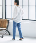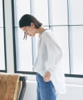 衿元はシャーリングになっており、抜け感のあるスキッパーネックで首周りはすっきりした印象に。