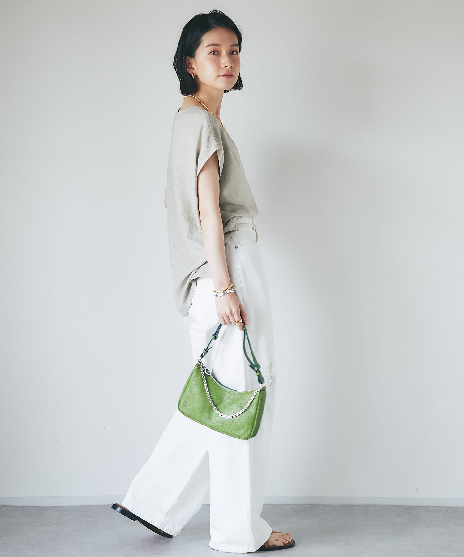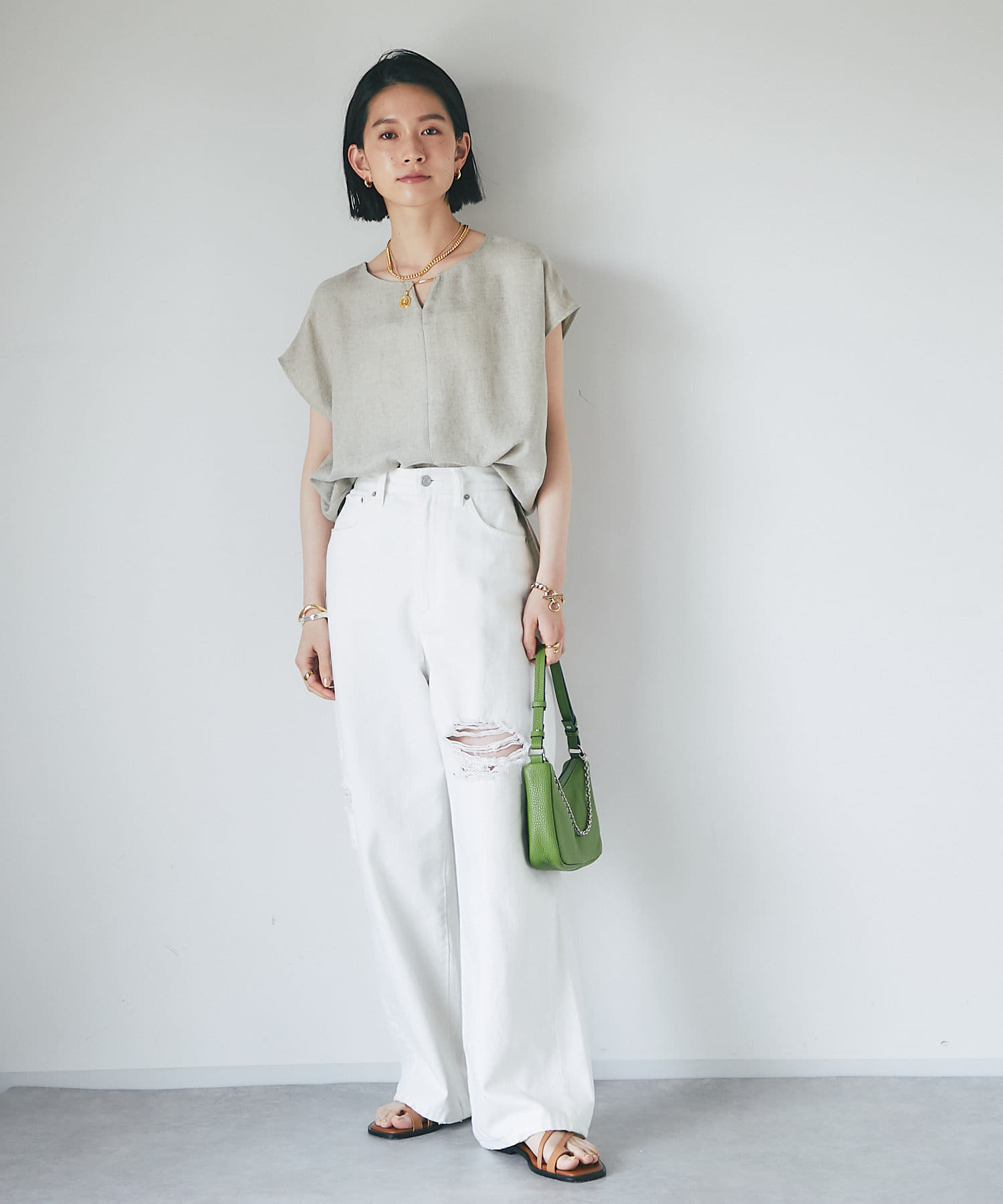 腕周りがスッキリ見えるフレンチスリーブは一枚でも着やすく、ジャケットやカーディガン合わせにも最適。