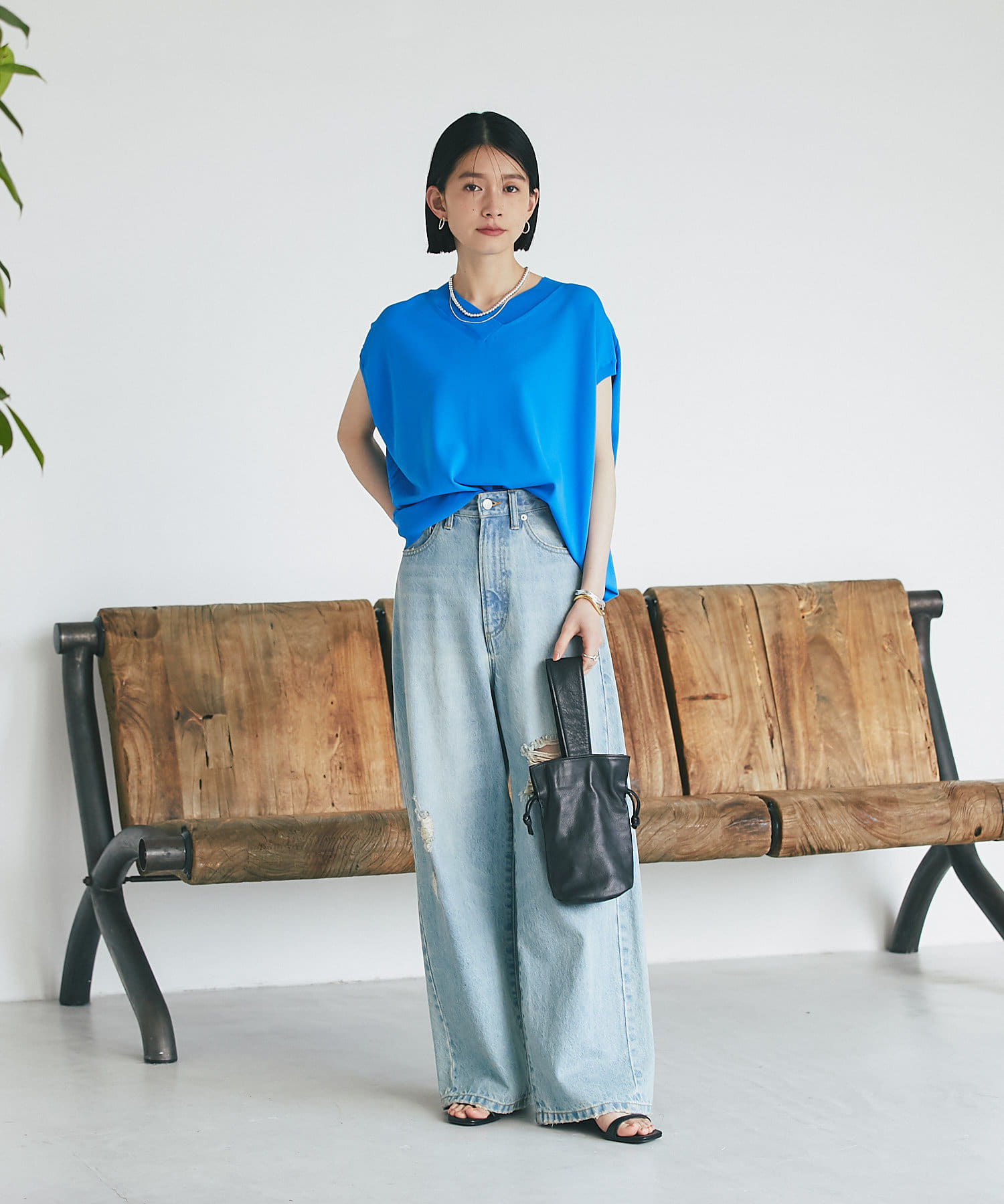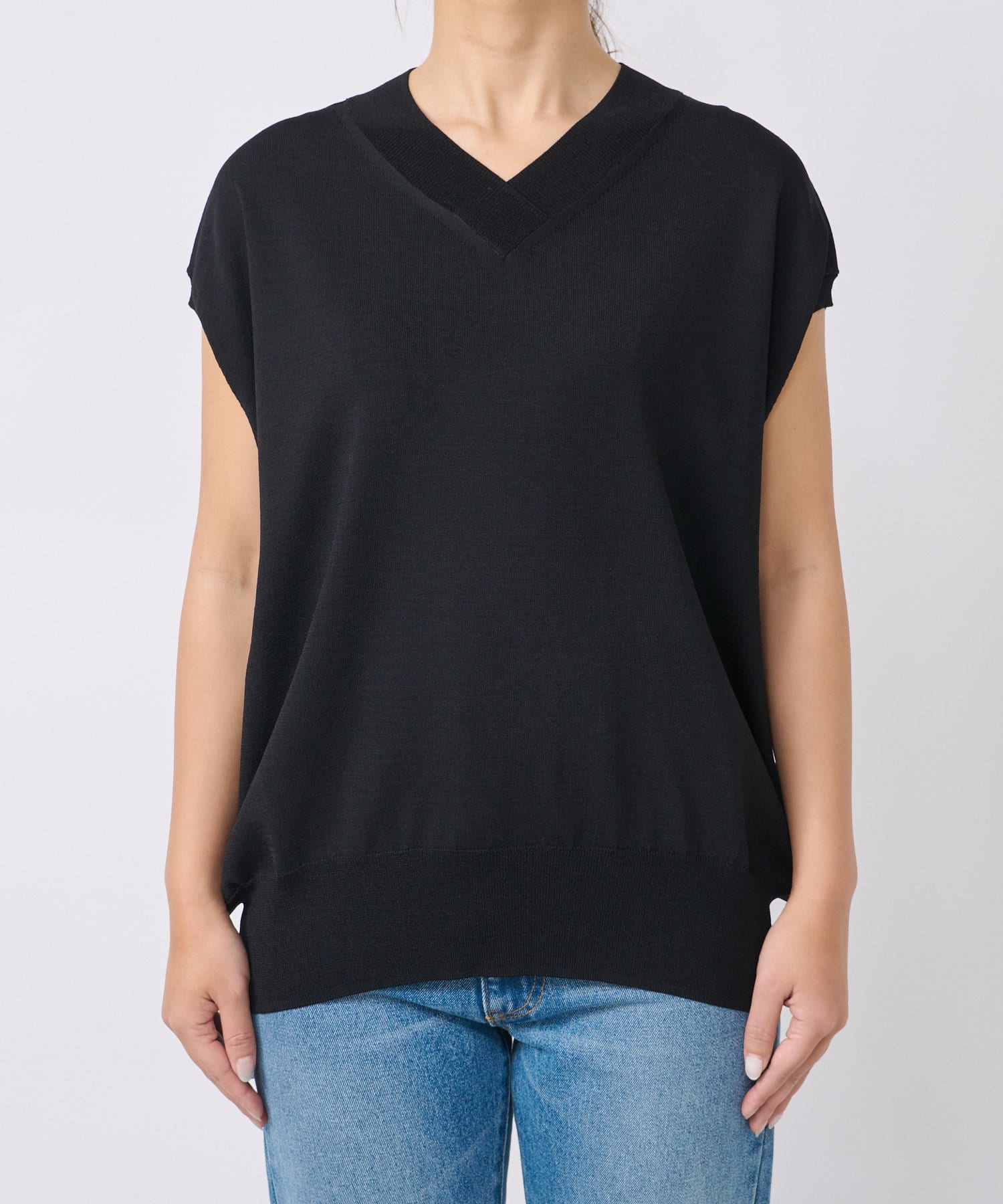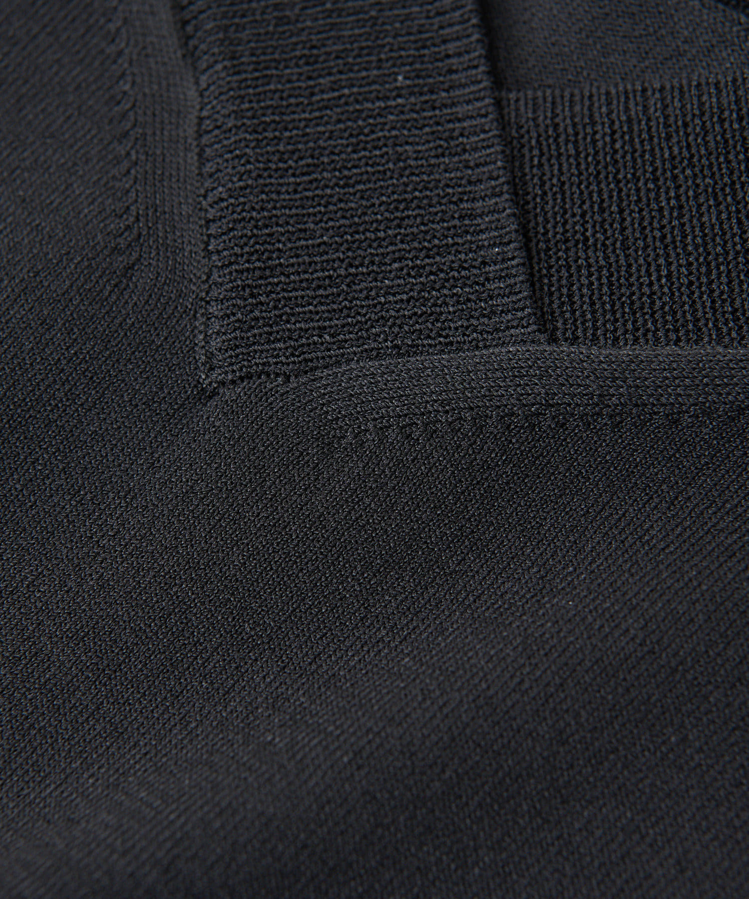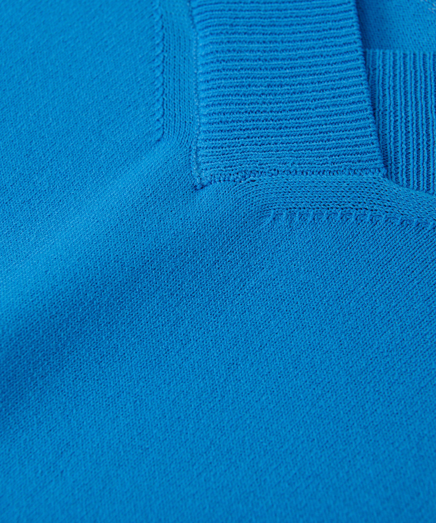• 詰まり気味のVネックはカジュアルスタイルにもベストマッチ。