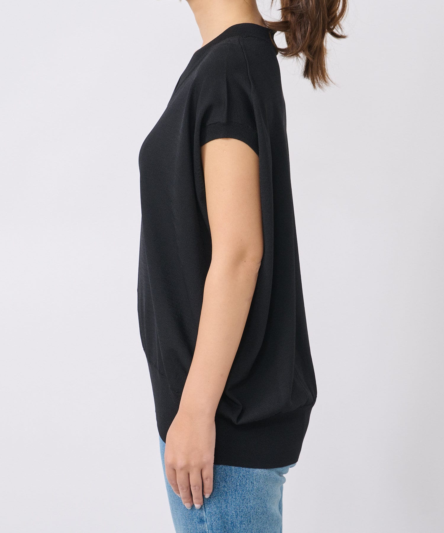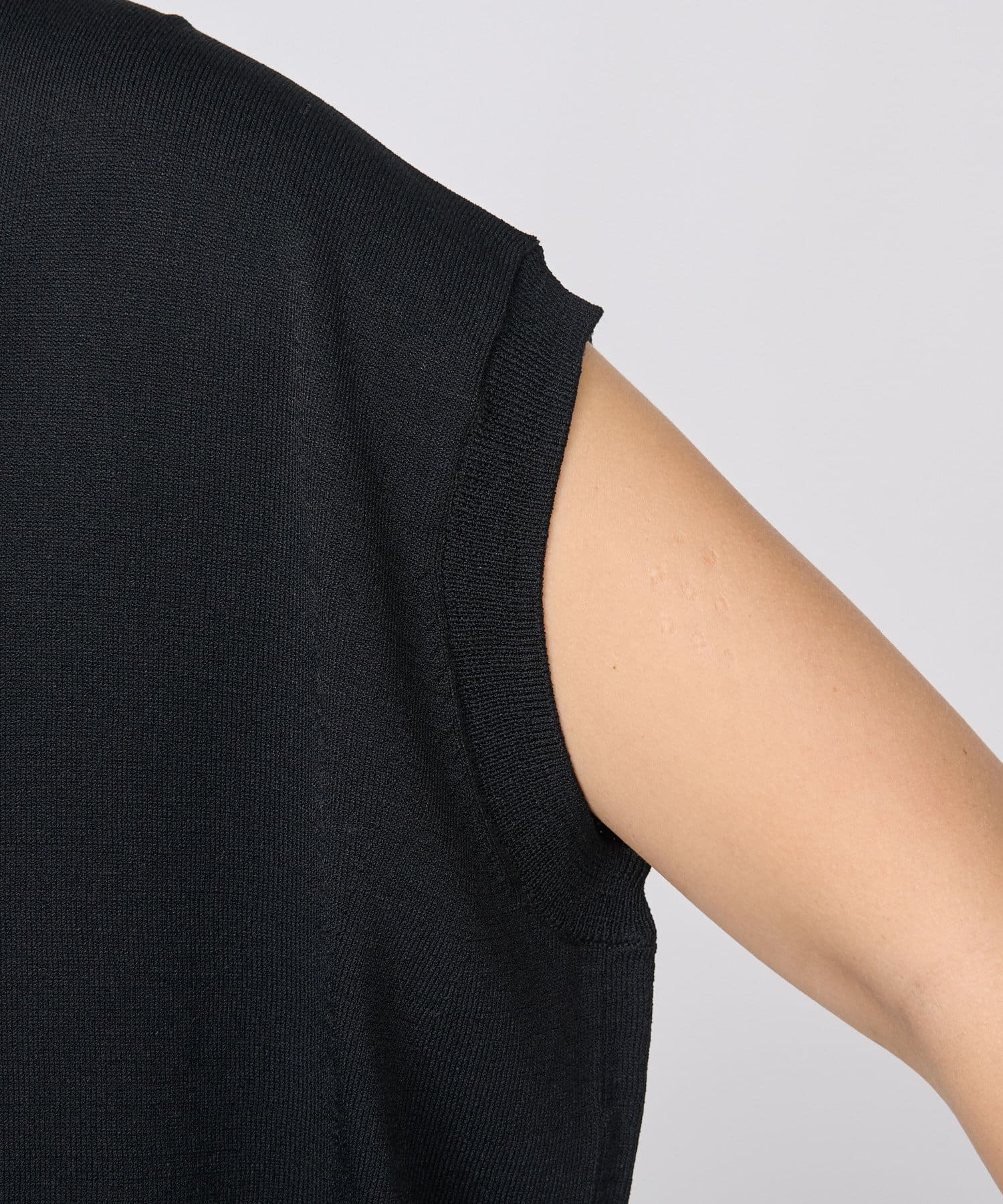 袖は短いのですがいい感じに周りの布地が二の腕に沿うので二の腕の着痩せ効果が素晴らしいです。