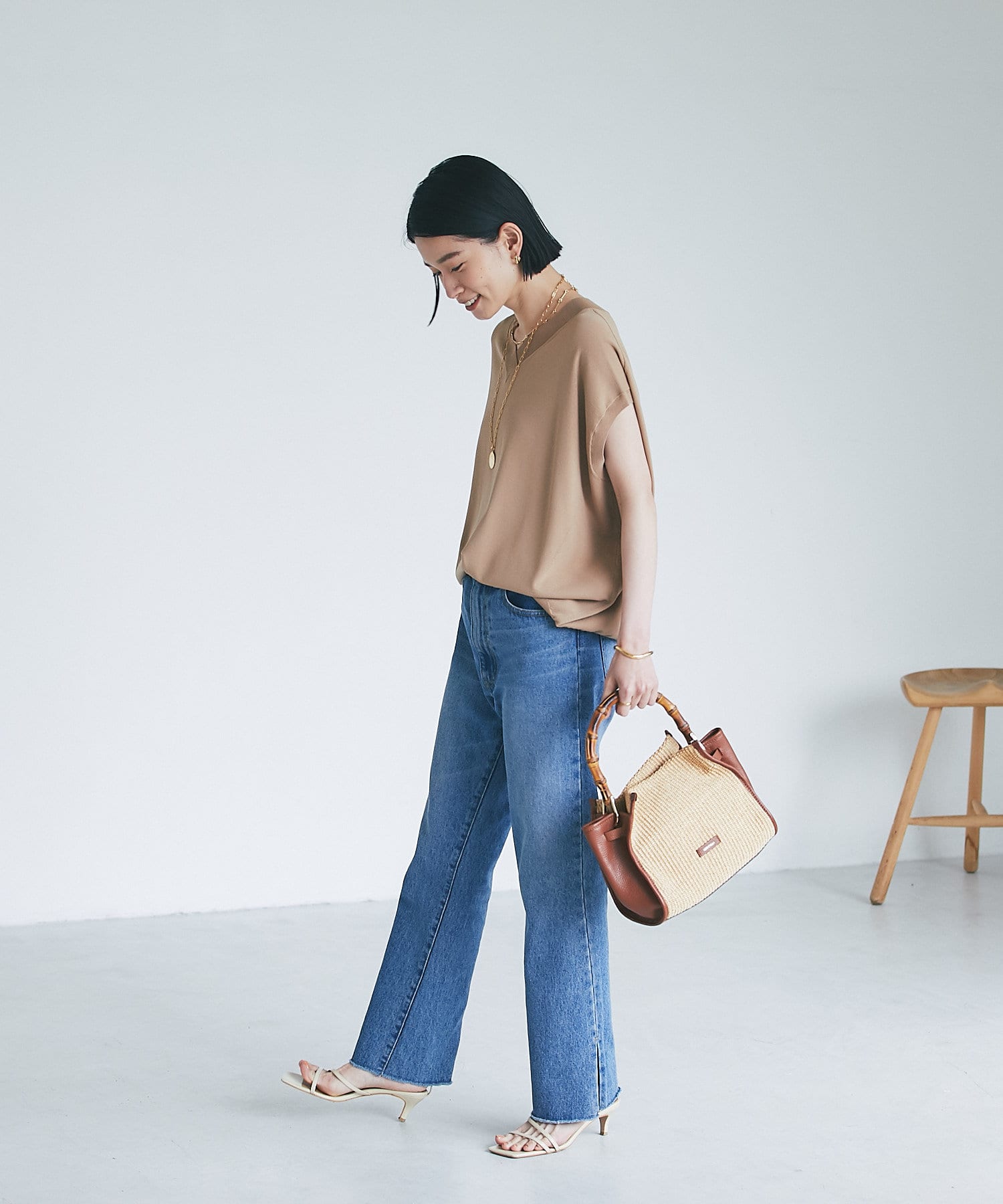 合わせるアイテムによって綺麗目にもカジュアルにもお使いいただけるので、お仕事にはタイトスカート、お休みの日はデニムパンツと、お好みのボトムと合わせて幅広いスタイルをお楽しみいただけます。
