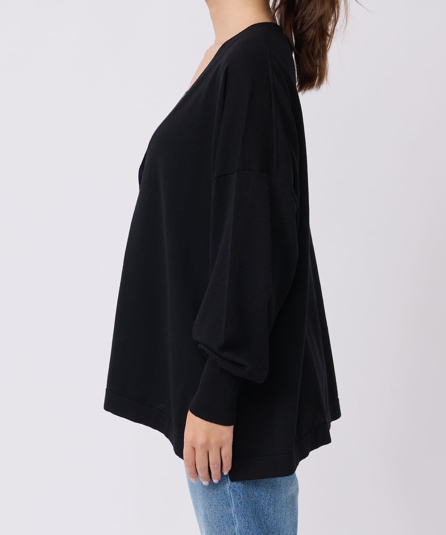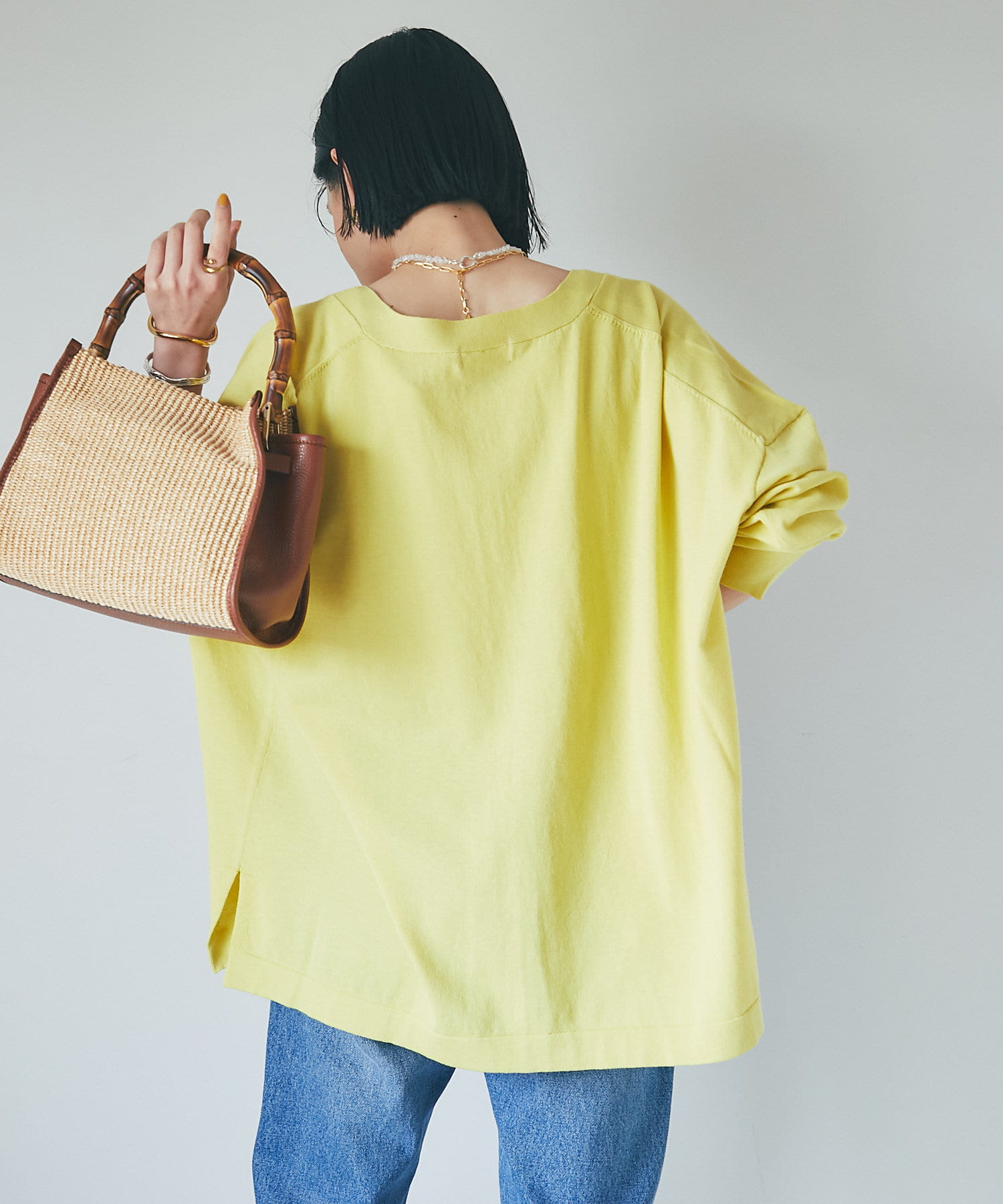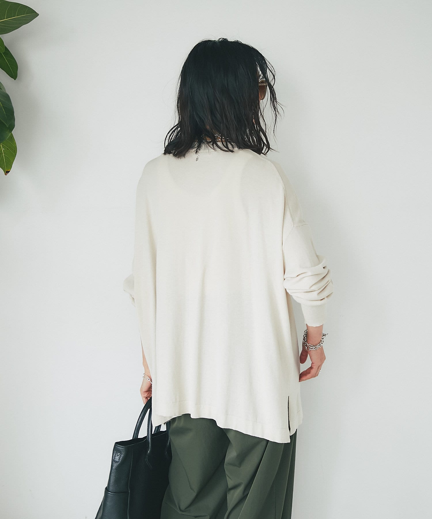 秋口にはプルオーバー感覚で着用いただけます。ハイツイストで毛羽立ちにくくきれいな見え感で、着用の出番が多くなること間違いなしのアイテムです。