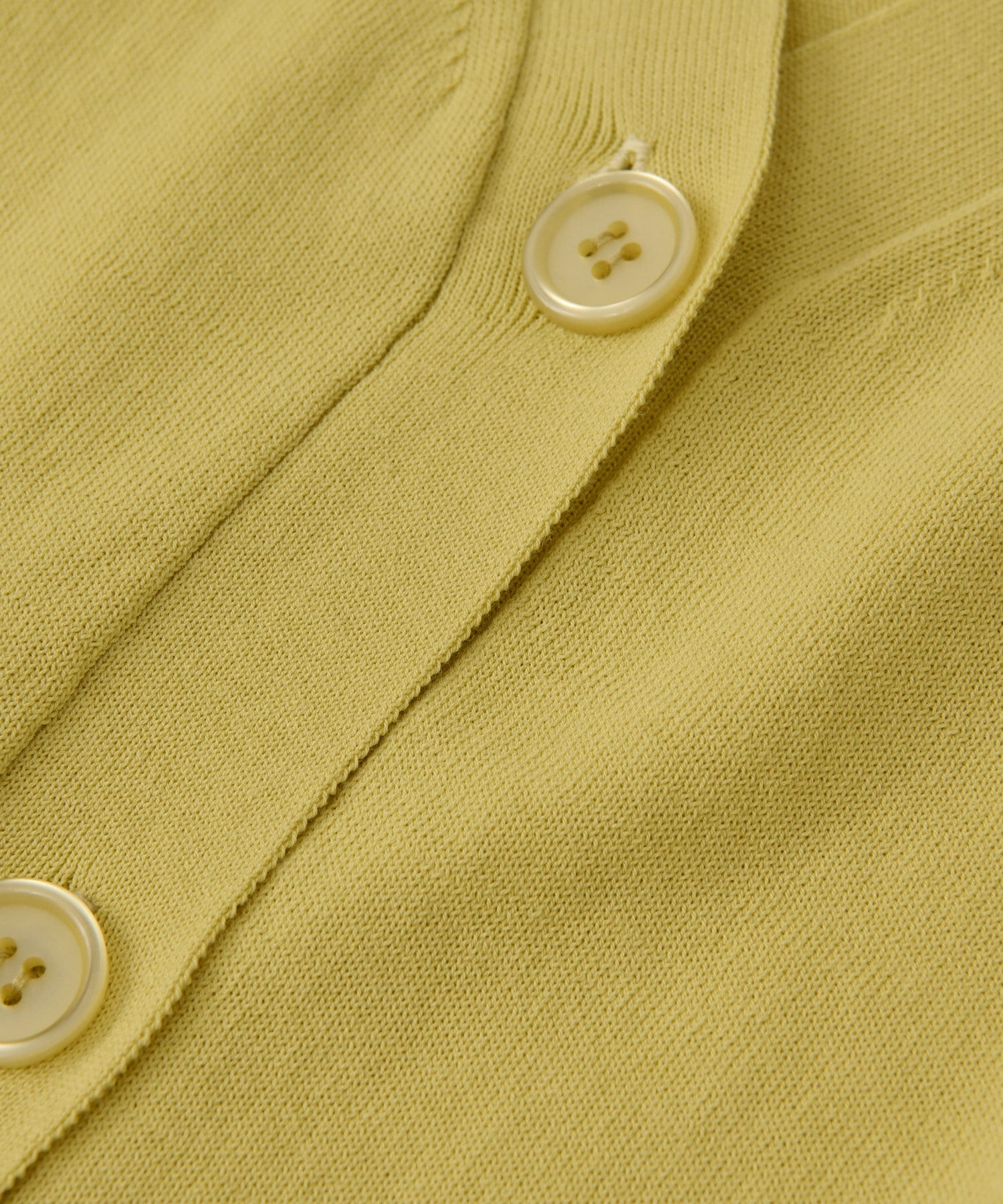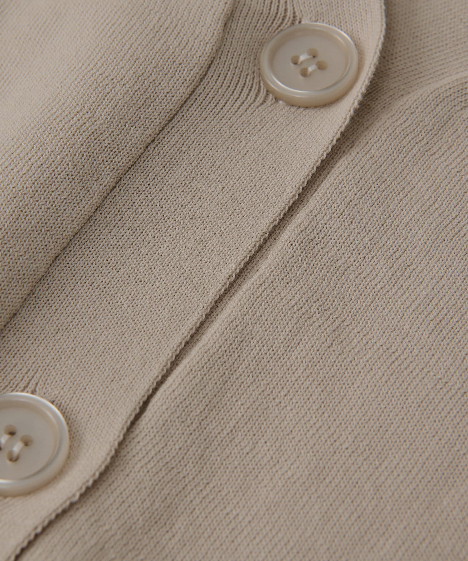 コットン100%でひんやり清涼感のある肌触りが人気のクールコットンを使用したハイゲージカーディガン。