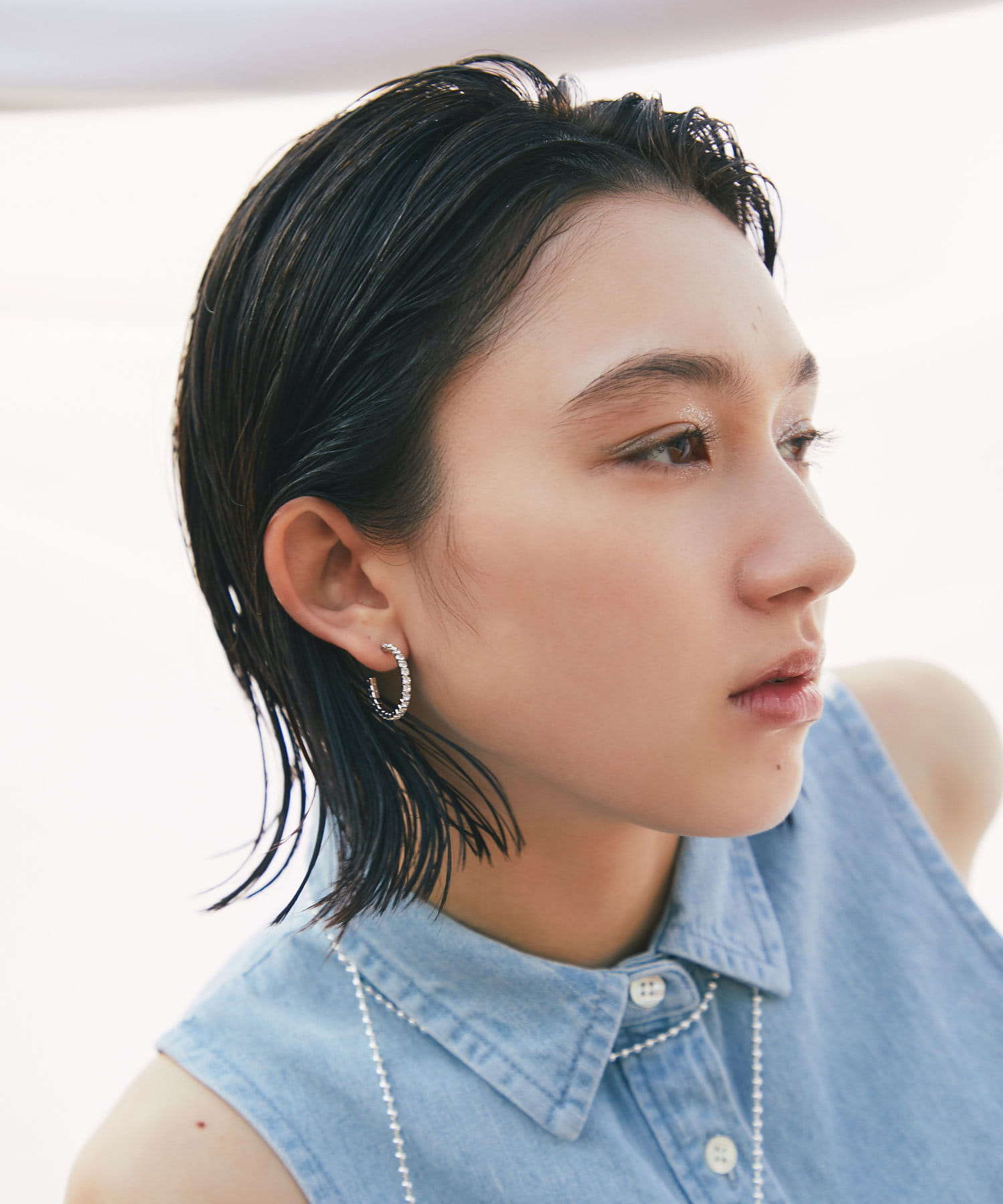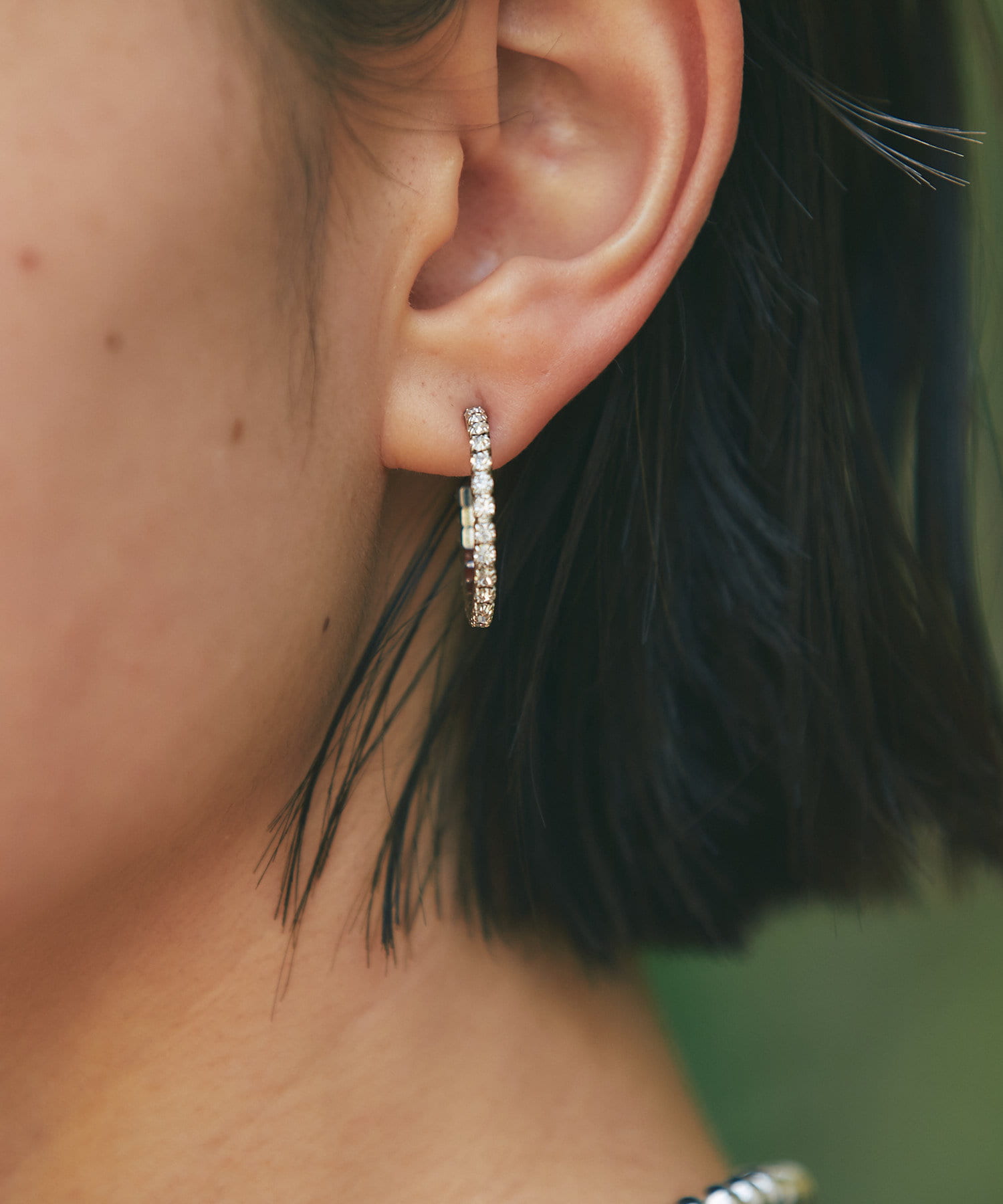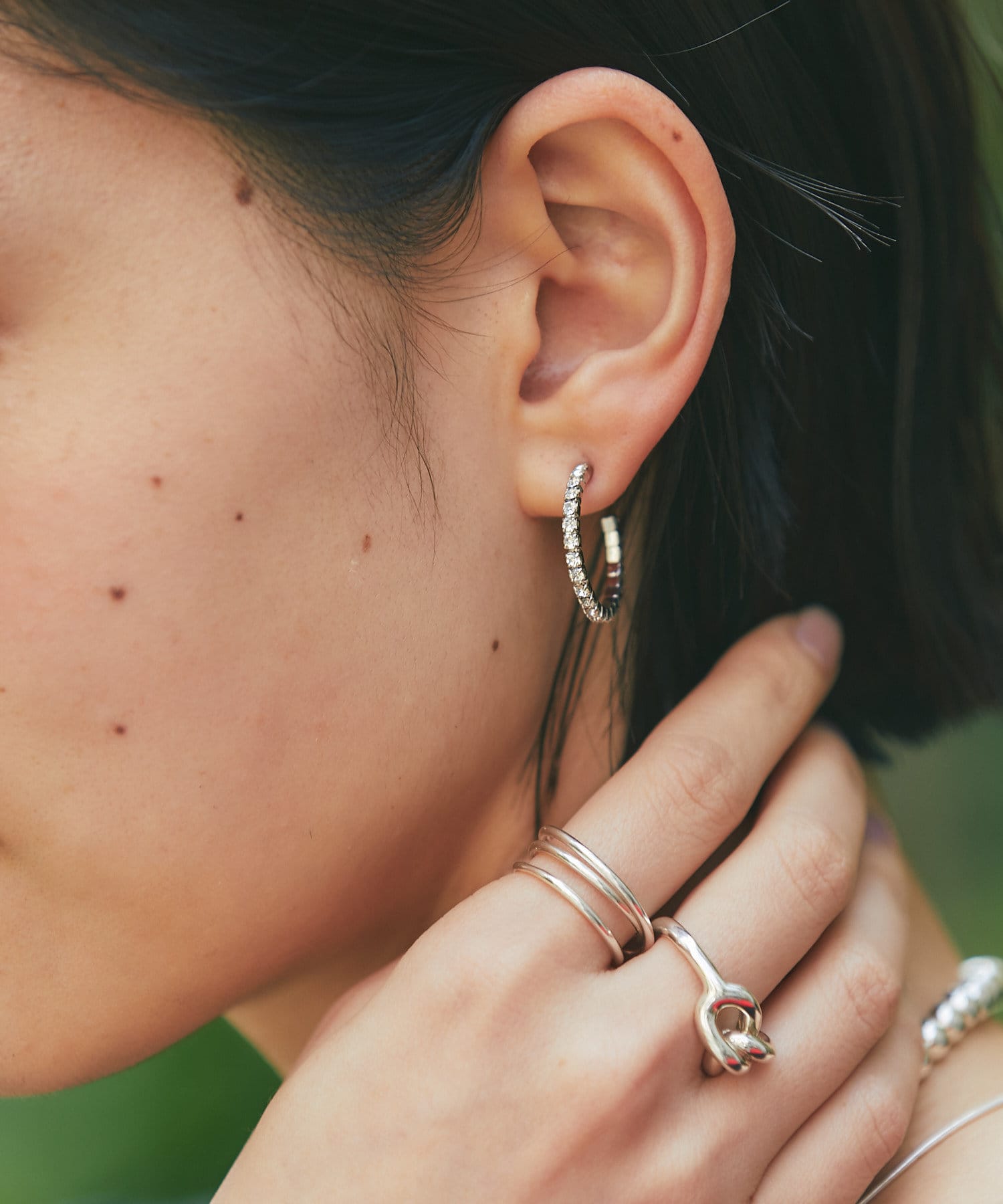 イヤカフなどと重ね付けもしやすく、一つあると便利なピアスです。