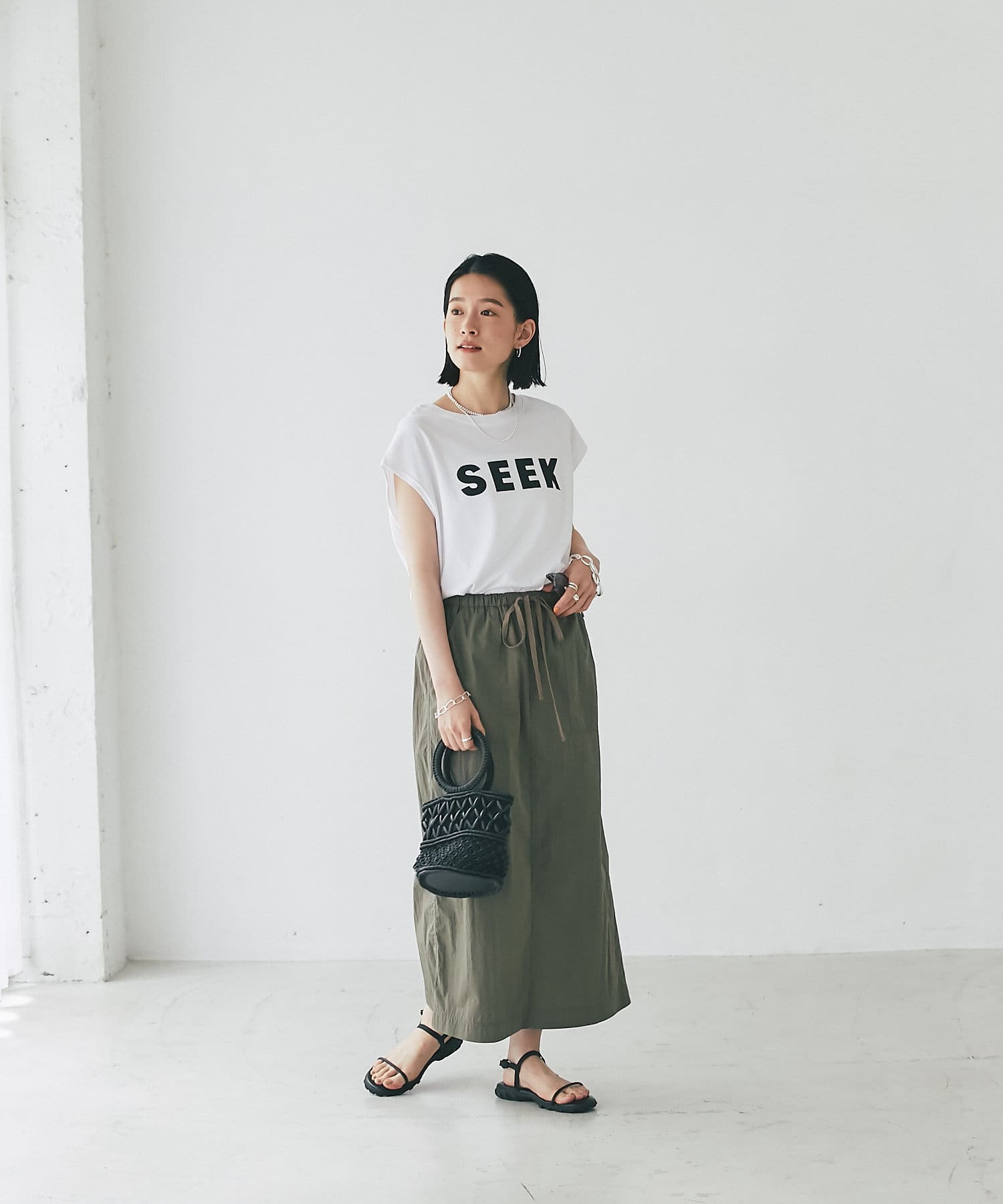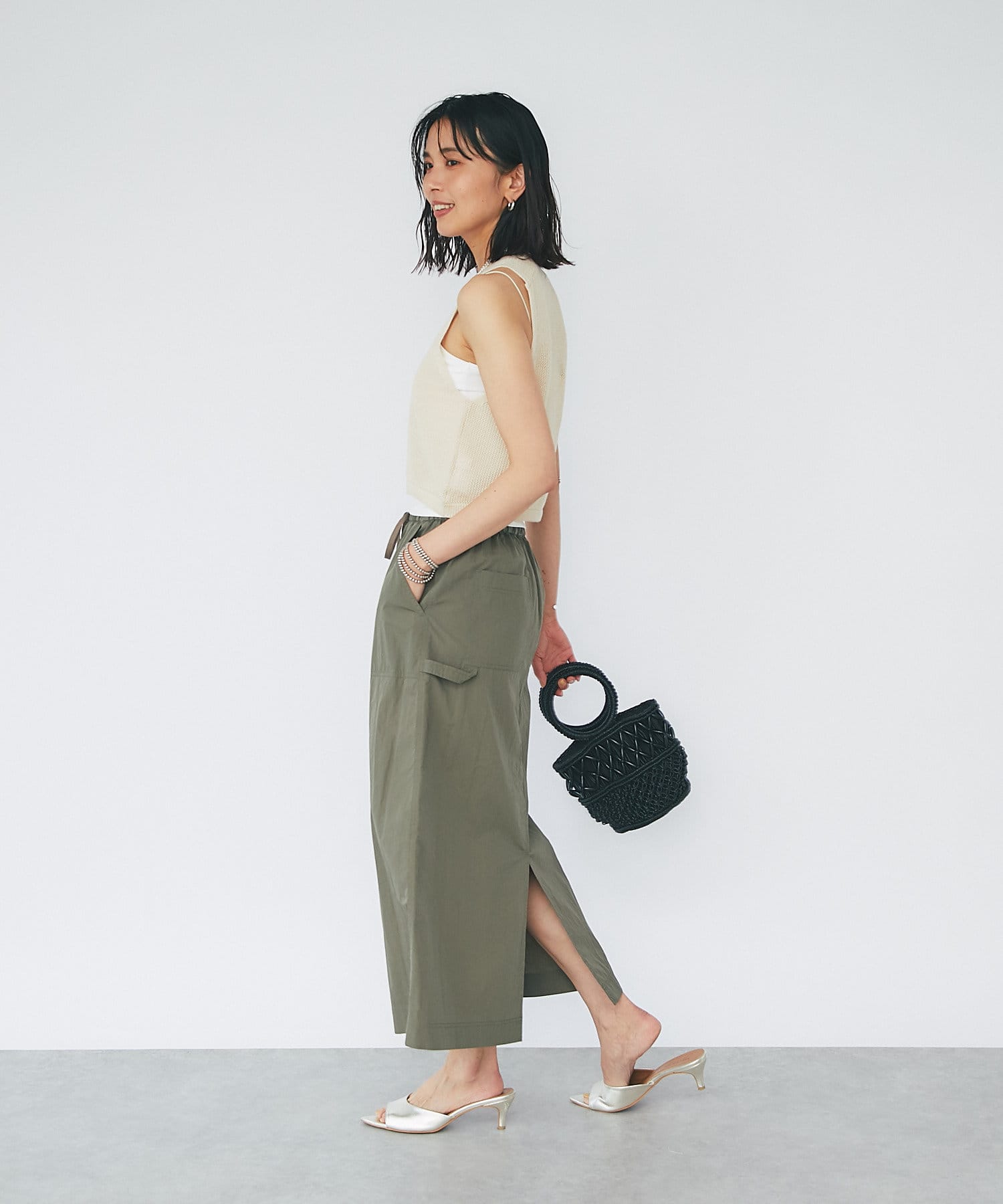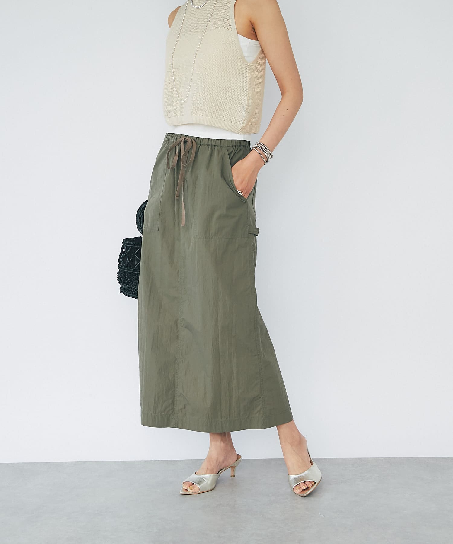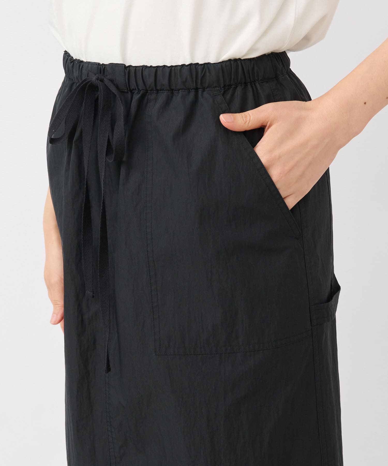 さらっとした生地感が肌にまとわりつかず、汗ばむ季節にもピッタリのスカート。