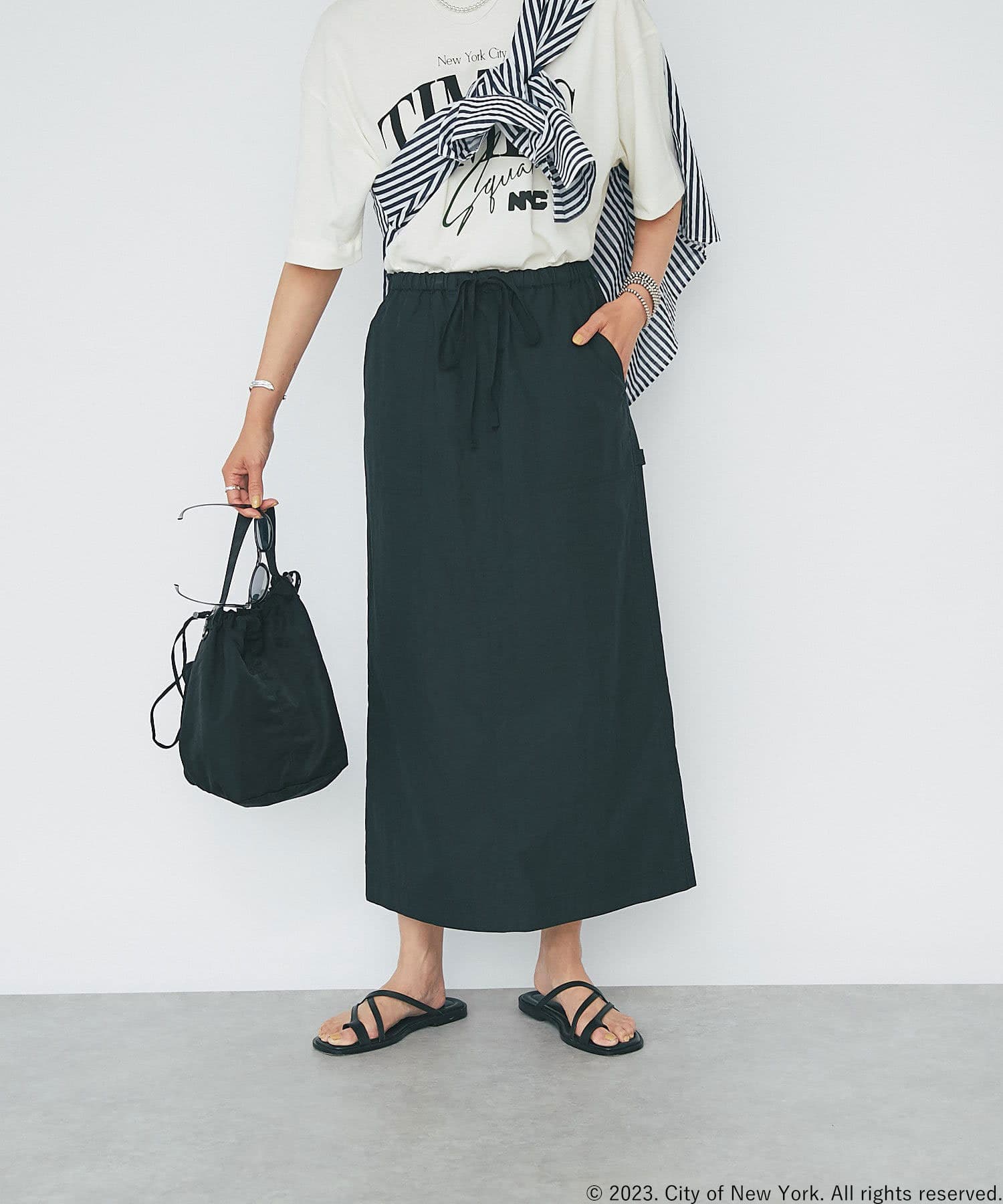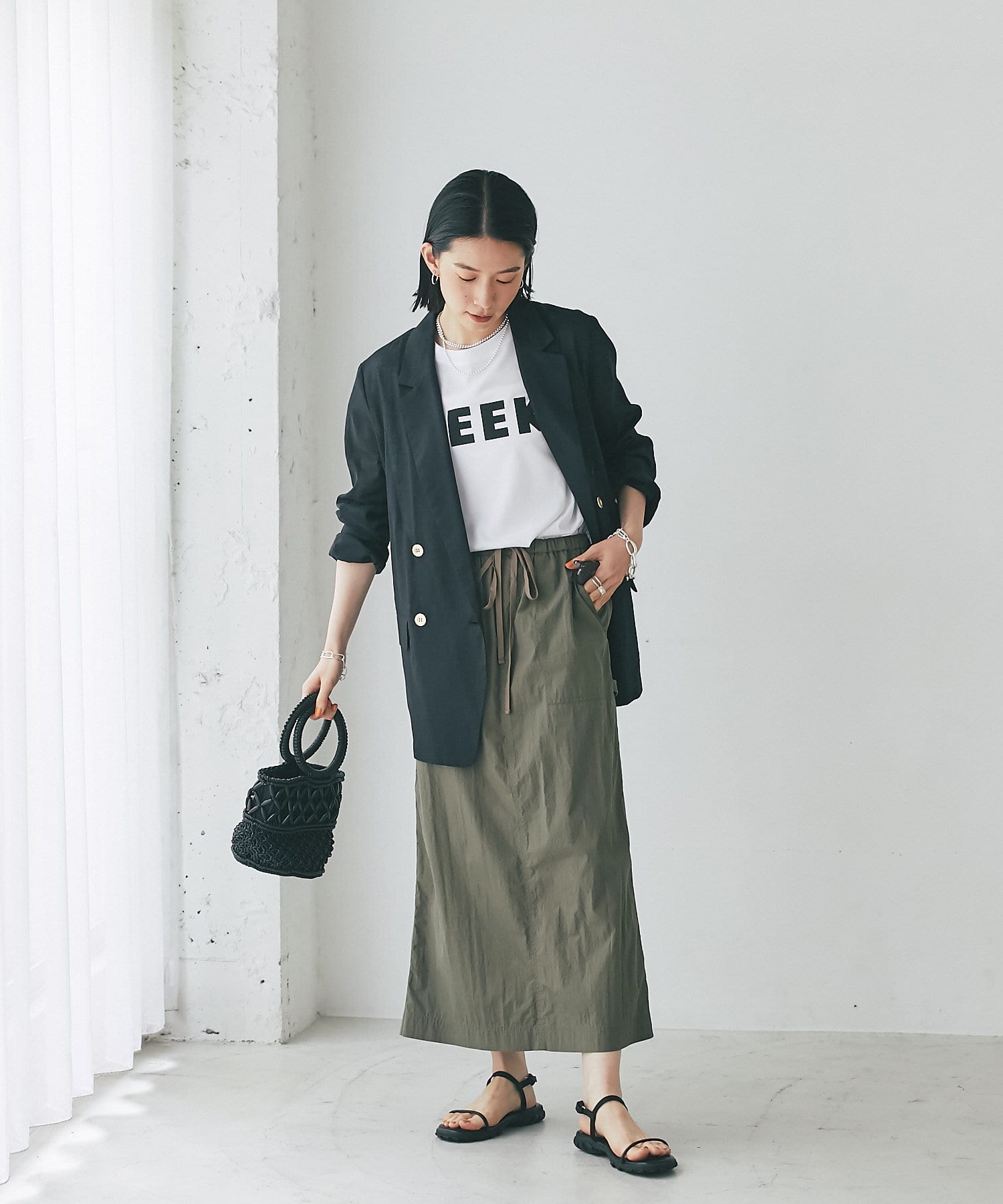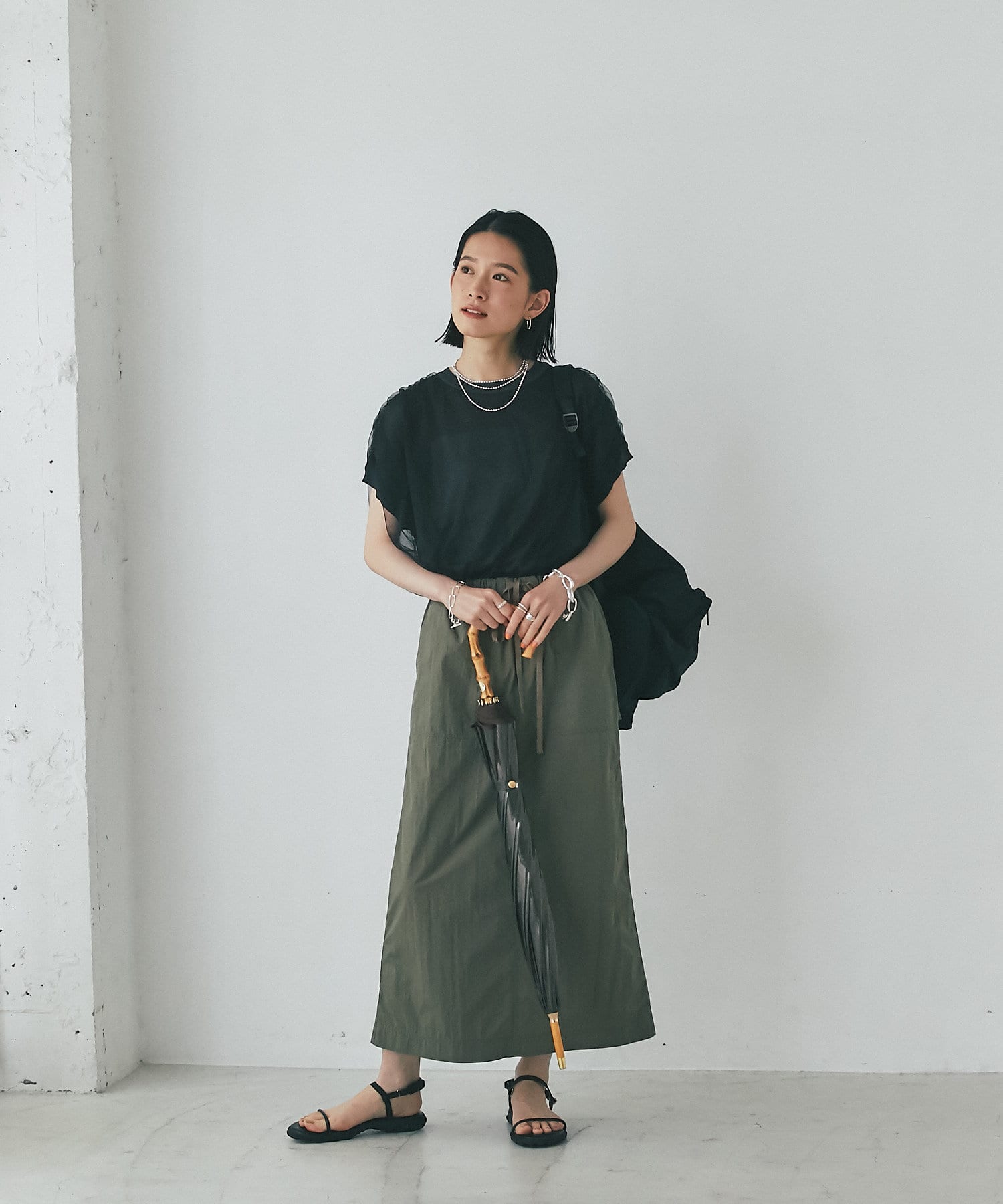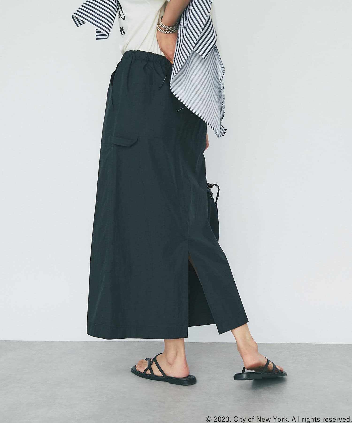 さらっとした生地感が肌にまとわりつかず、汗ばむ季節にもピッタリのスカート。