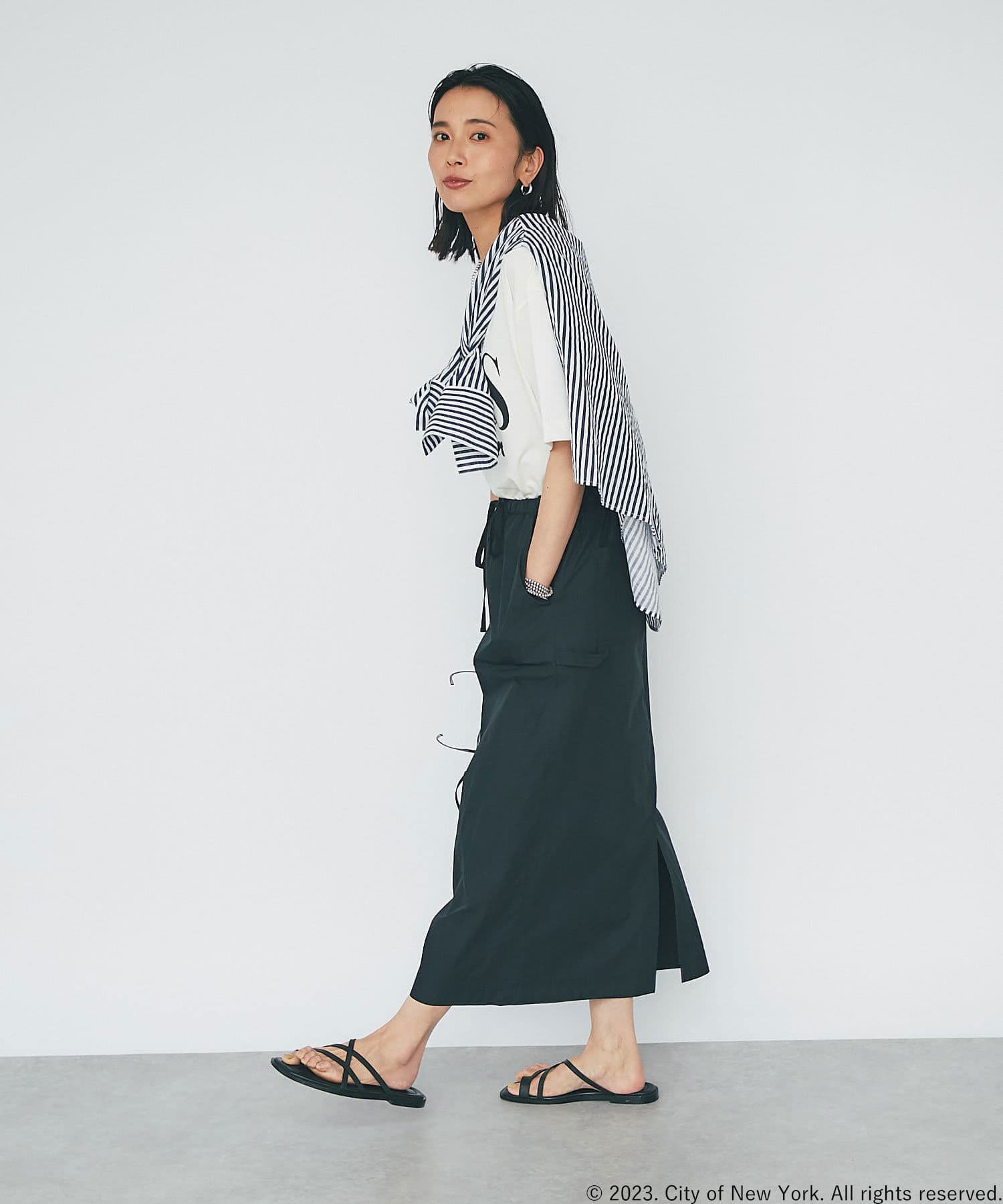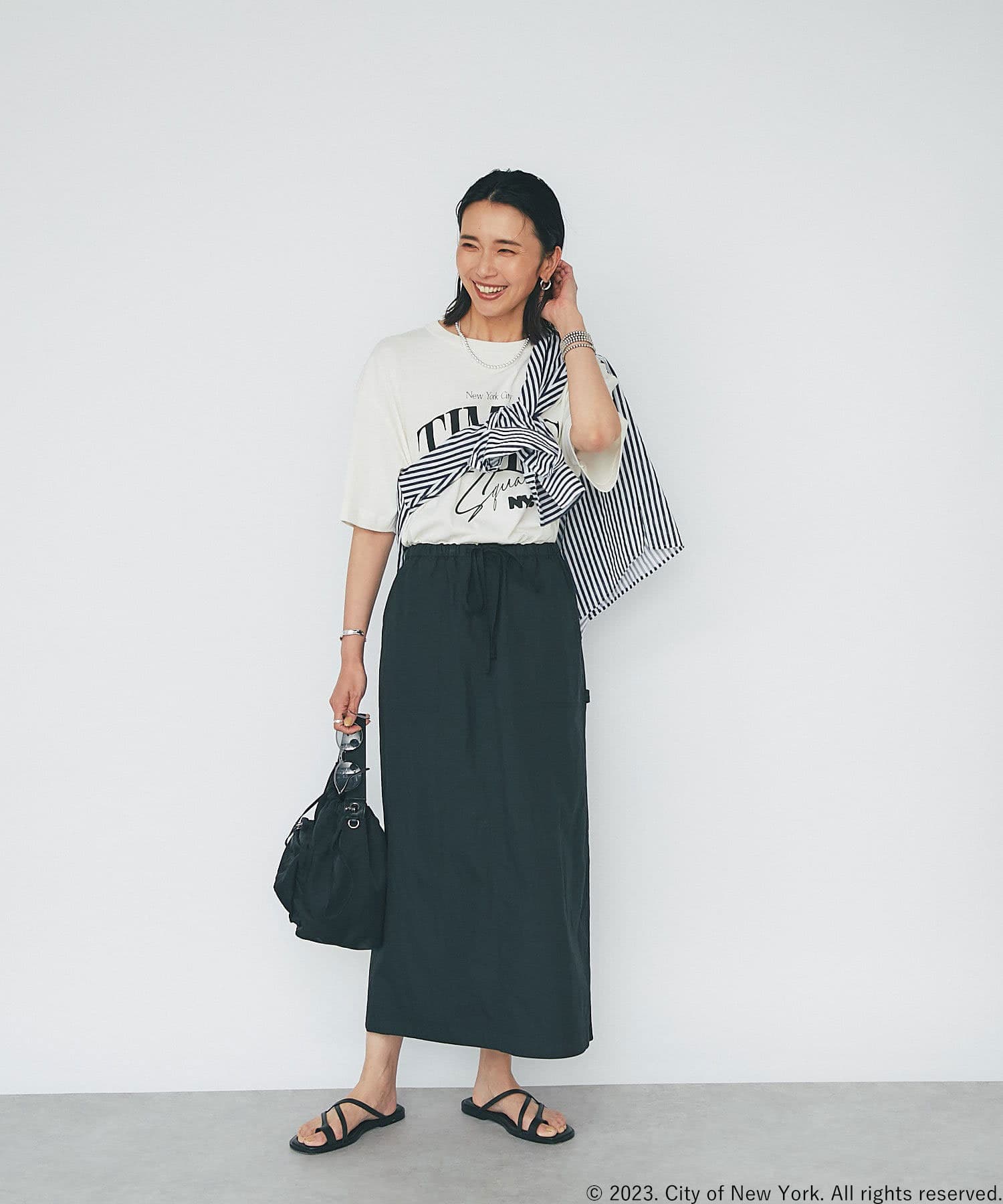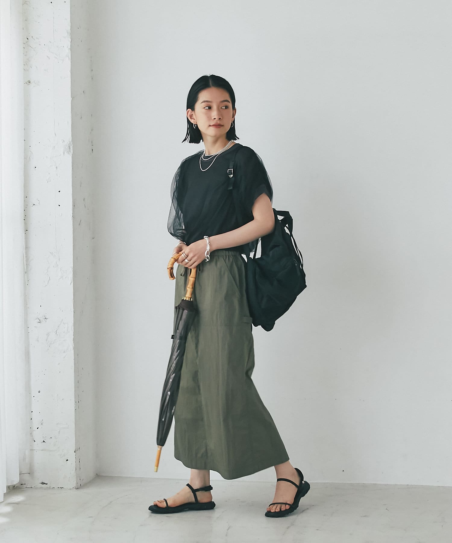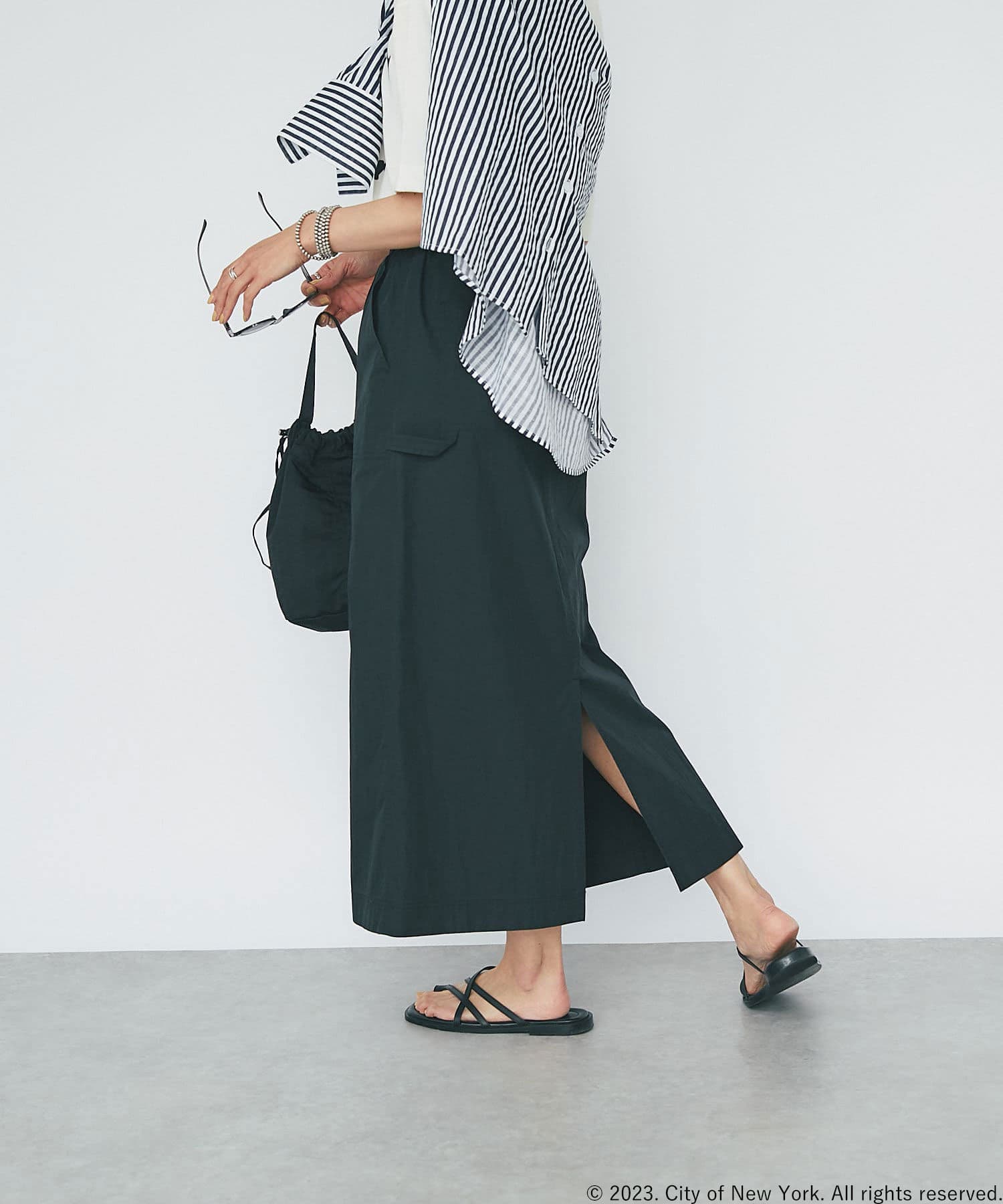 さらっとした生地感が肌にまとわりつかず、汗ばむ季節にもピッタリのスカート。