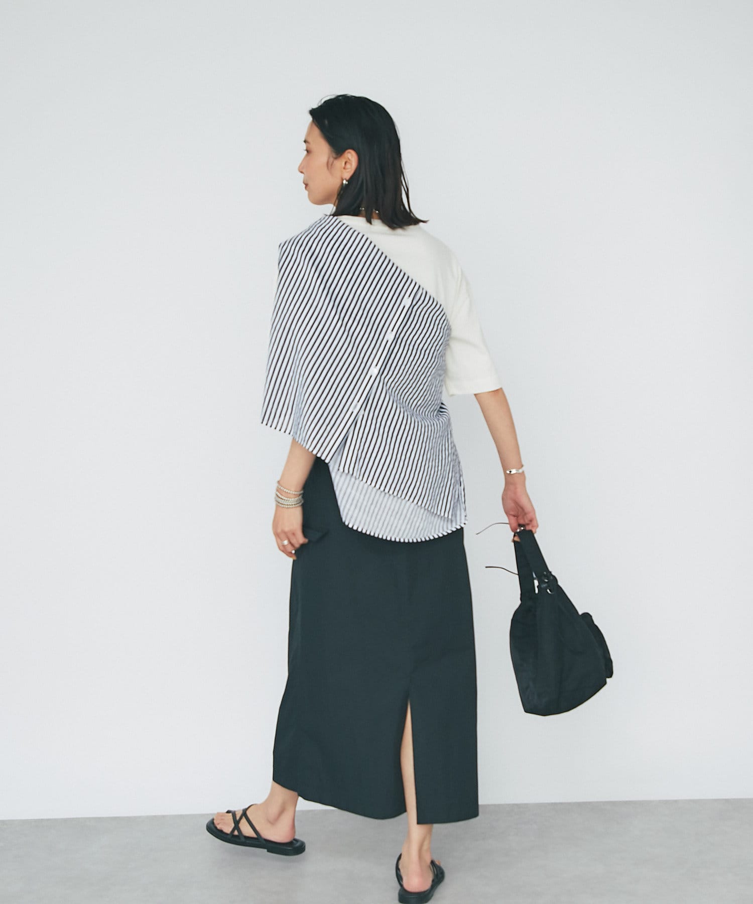 キレイめな要素をプラスしたい日には、シャツとヒールサンダルを合わせたコーディネートで、こなれ感たっぷりの大人カジュアルコーデが叶います。