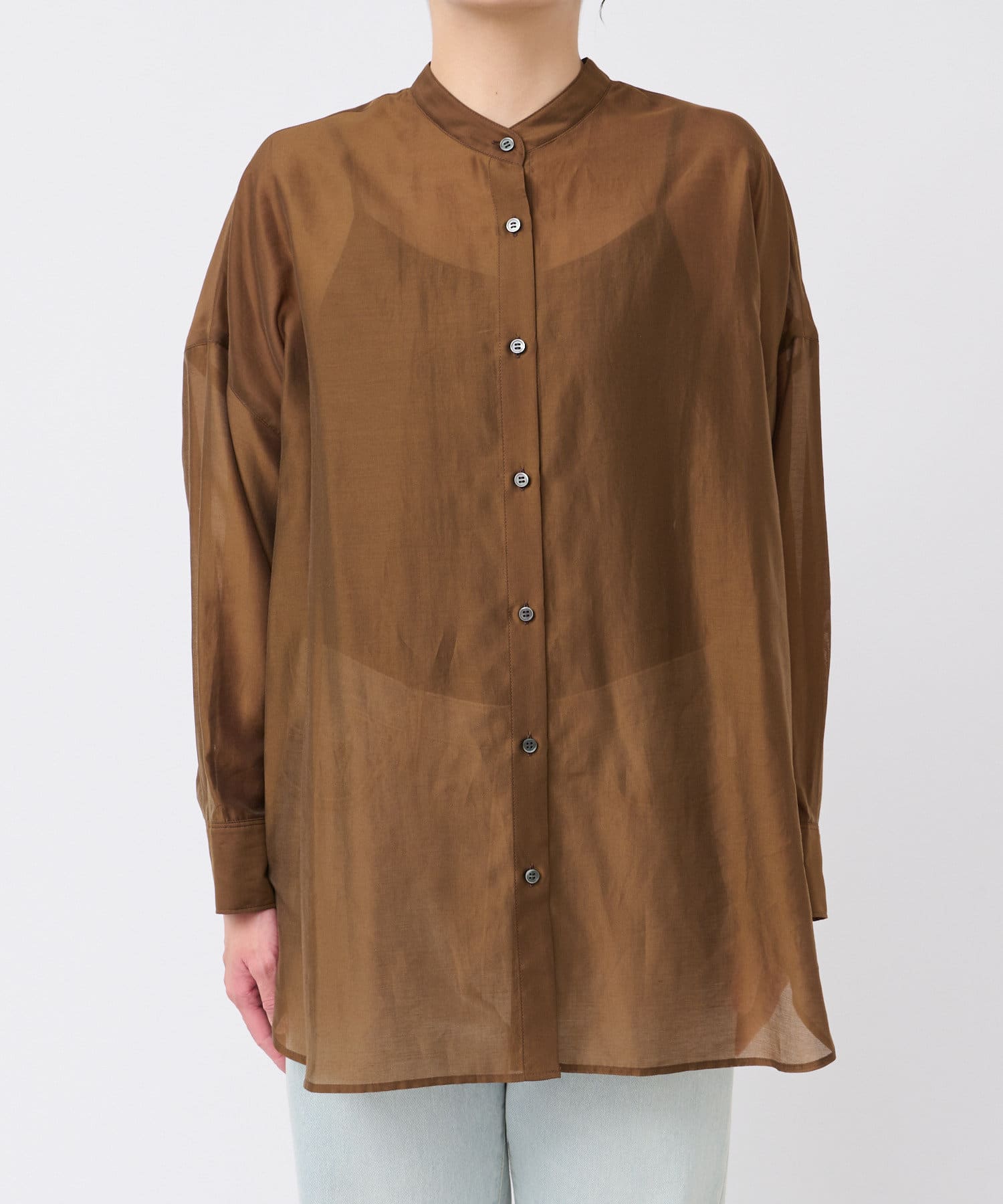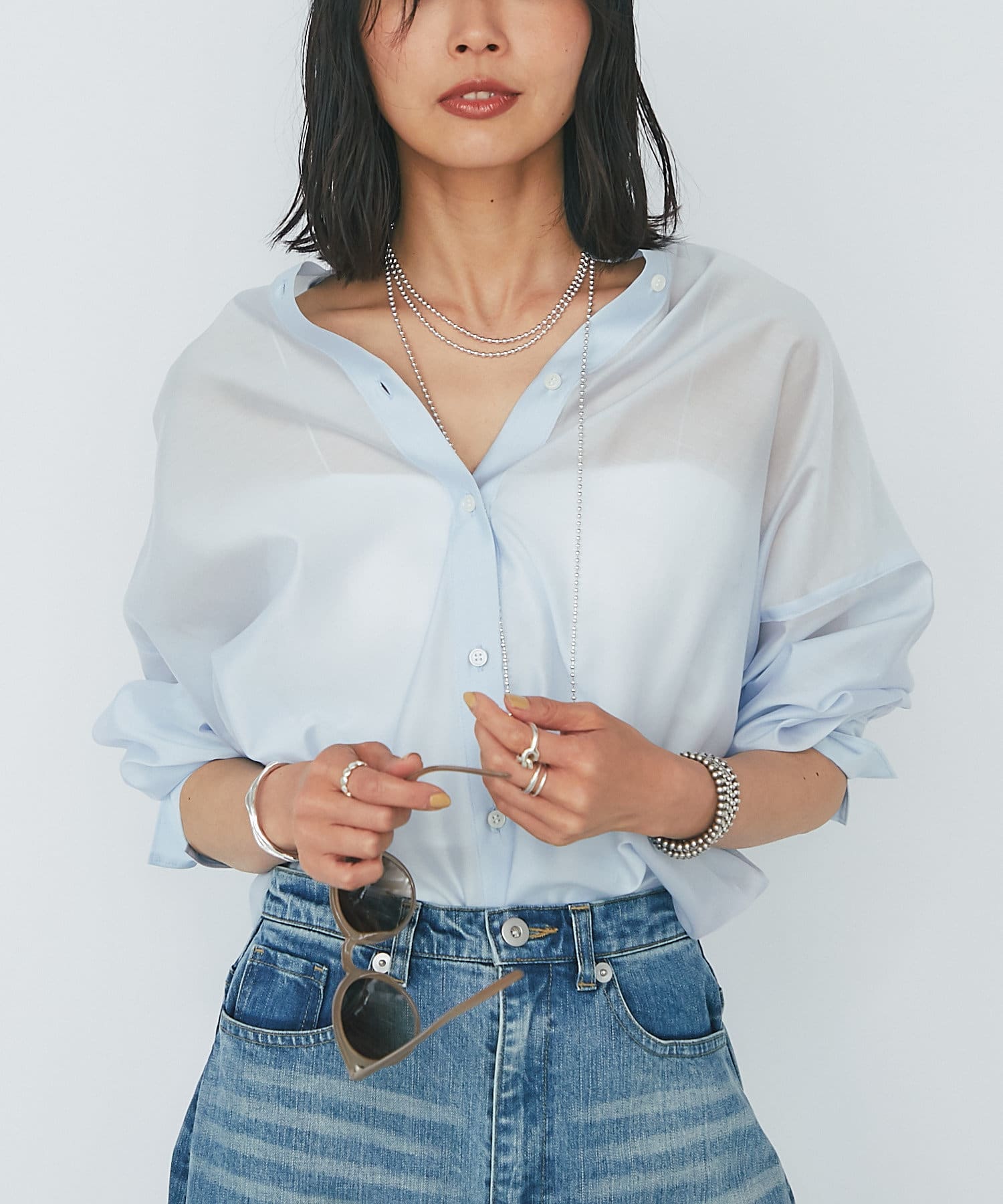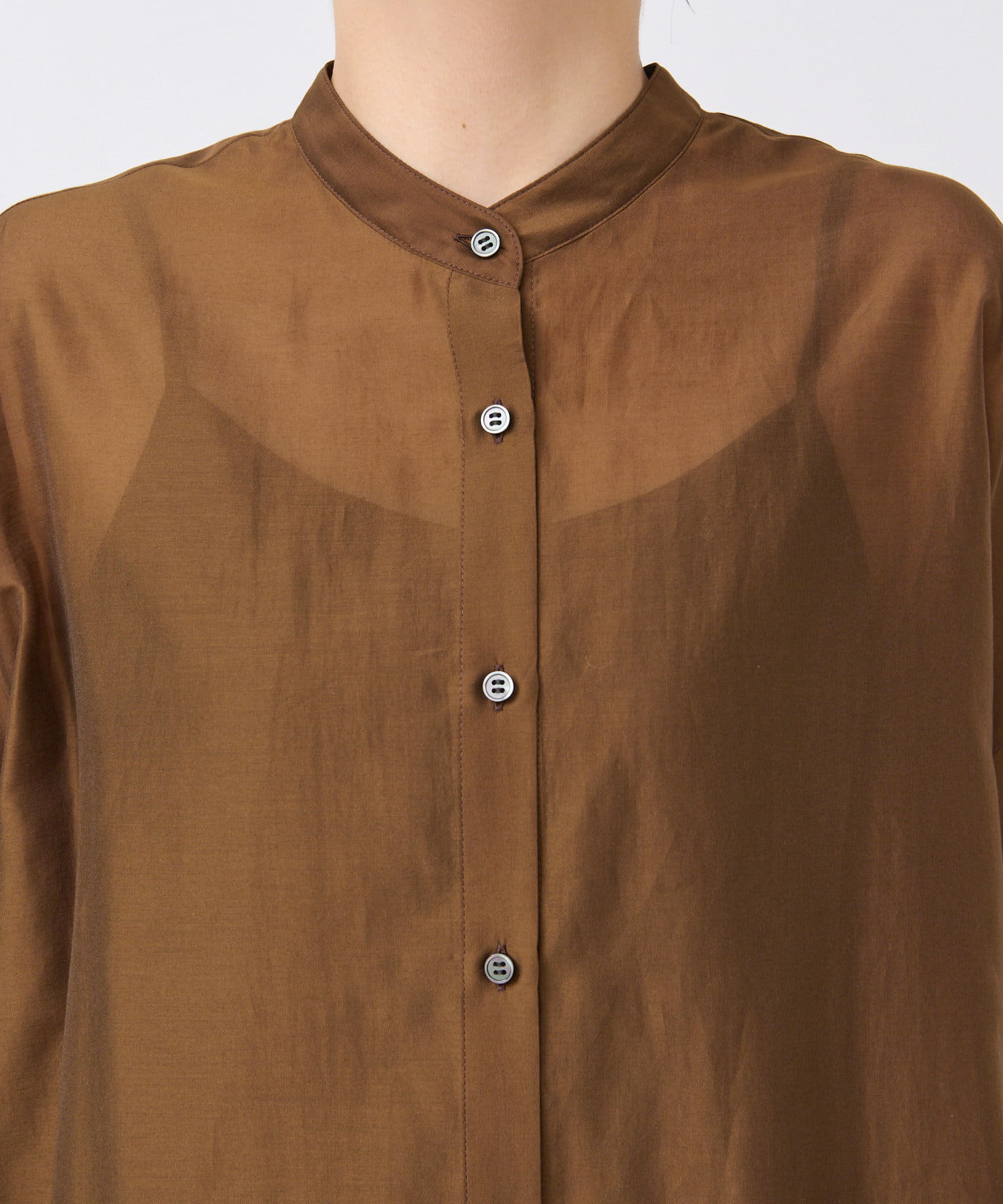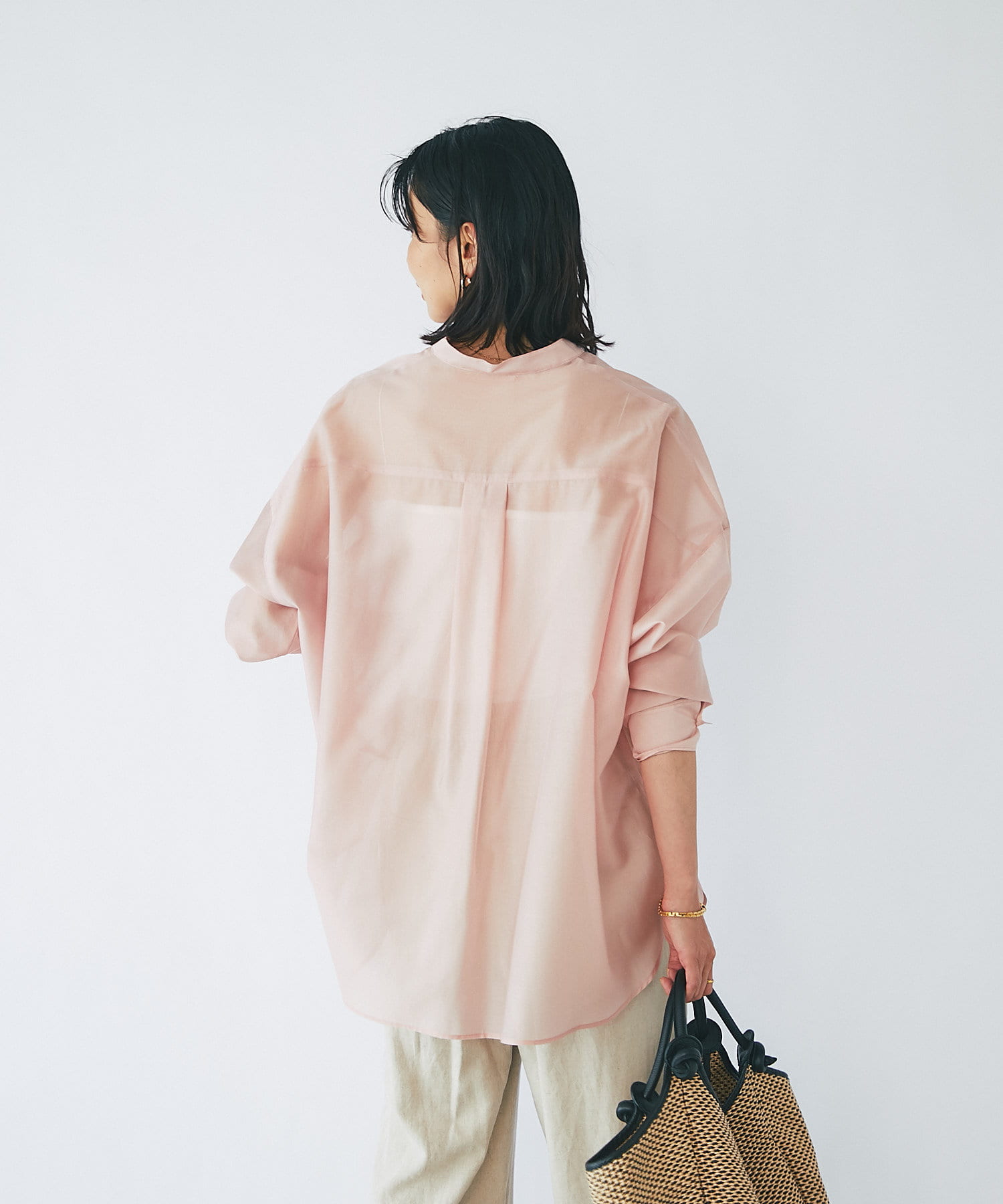 【軽やかな雰囲気のシアー素材】ナチュラルオーガンジーバンドカラーシャツ