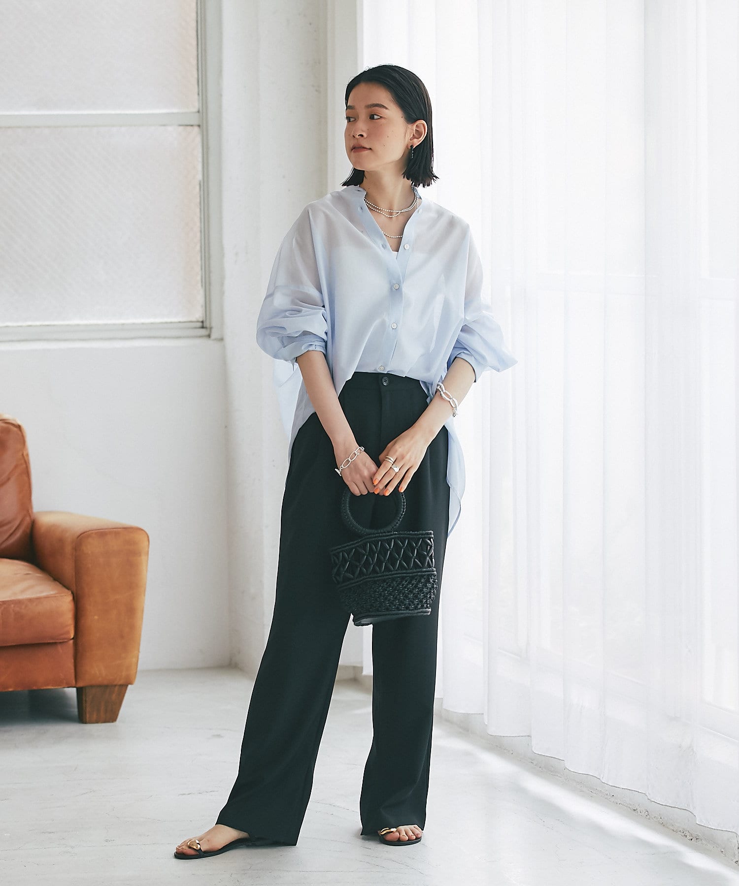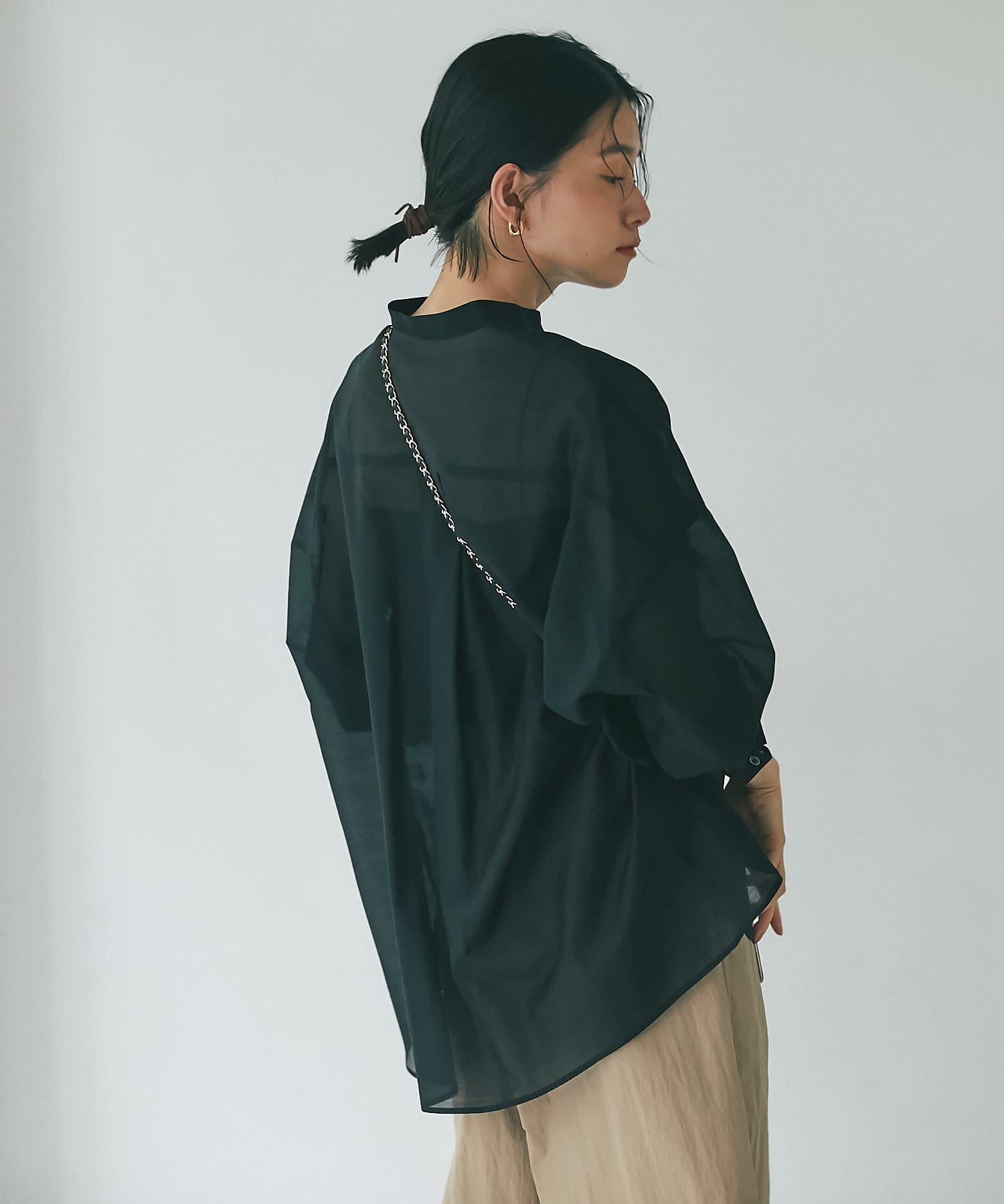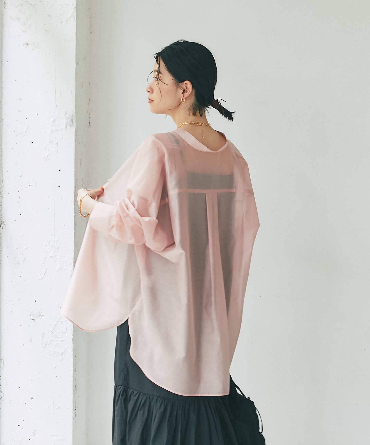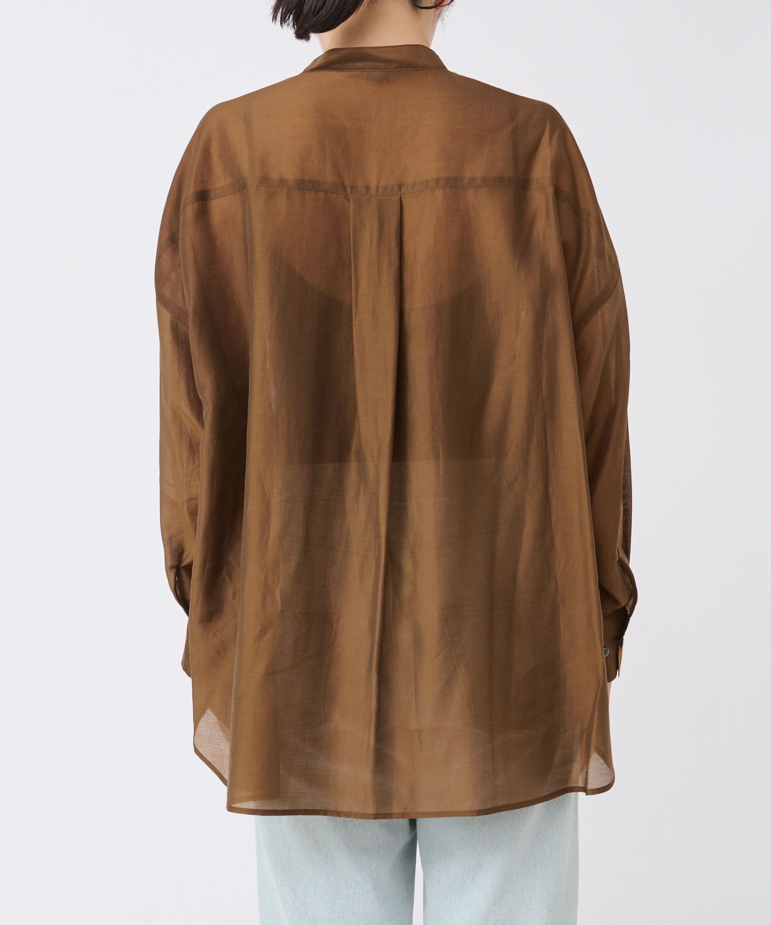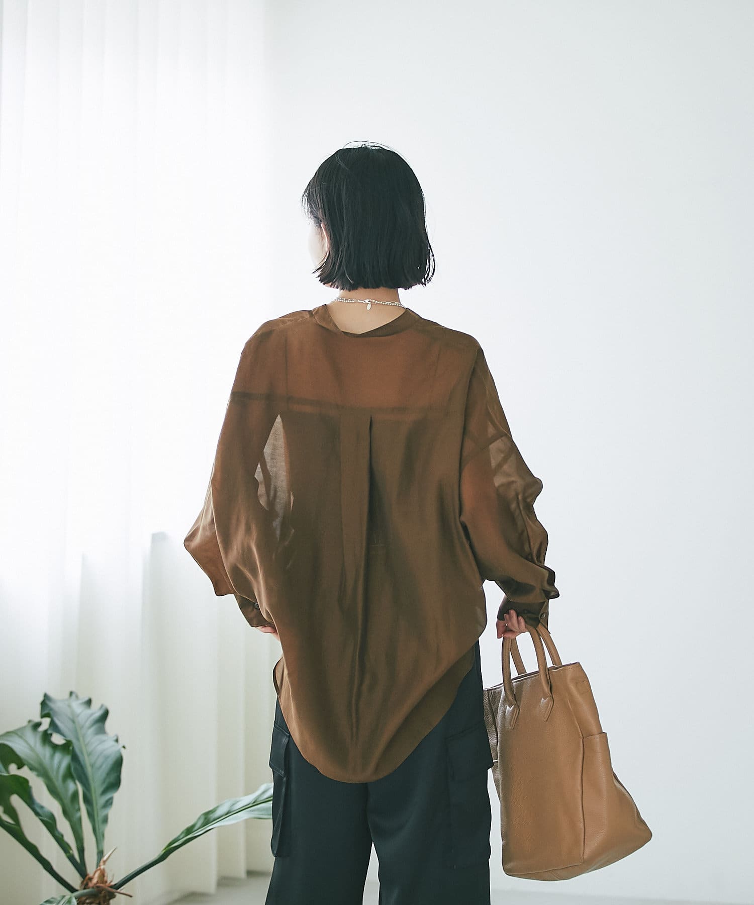 【軽やかな雰囲気のシアー素材】ナチュラルオーガンジーバンドカラーシャツ